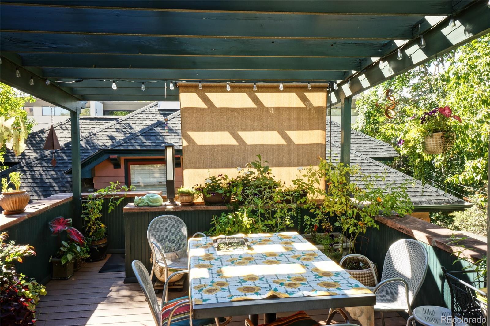 Step into the bright Craftsman foyer, where meticulous attention to detail sets the tone for the entire residence. The original oak staircase, adorned with 12” baseboards and a captivating leaded glass window, invites you up to explore the wonders within. The main floor offers soaring vaulted ceilings with crown molding and skylights that bathe the space in natural light. The expansive living and dining area, anchored by a cozy gas fireplace, elegant built-in bookshelves, and large sunny windows with plantation shutters, seamlessly flows into the dream kitchen. Here, culinary enthusiasts will revel in the top-of-the-line stainless appliances, granite and terrazzo counters, and opens to a treetop deck where entertaining is a delight. A versatile bedroom with two large closets and a Jack-and-Jill bathroom completes the main level, offering a private retreat for guests or a home office. Ascend to the loft-style primary suite, a sanctuary in the sky. The sleeping area, spacious enough for a king-size bed, is complemented by built-in drawers, while two marble or granite-tiled baths, each with skylight, provide spa-like indulgence. Two large walk-in closets and a convenient laundry area ensure that your personal oasis is as functional as it is luxurious. The extensive remodeling began with all-new plumbing and electrical services, ensuring peace of mind for the discerning buyer. Step outside to the gated flagstone back patio, an idyllic setting for al fresco gatherings. The pergola, multiple seating and dining areas, and lush perennial garden beds create an enchanting backdrop for memorable moments under the canopy of huge trees. In the Quality Hill Historic District, this turn-key condo offers high walkability to local favorites like Trader Joe’s, Whole Foods, and Cheesman Park. Experience the perfect blend of historic charm and modern sophistication at 939 Pearl St #C, where every detail has been curated for the ultimate urban retreat.