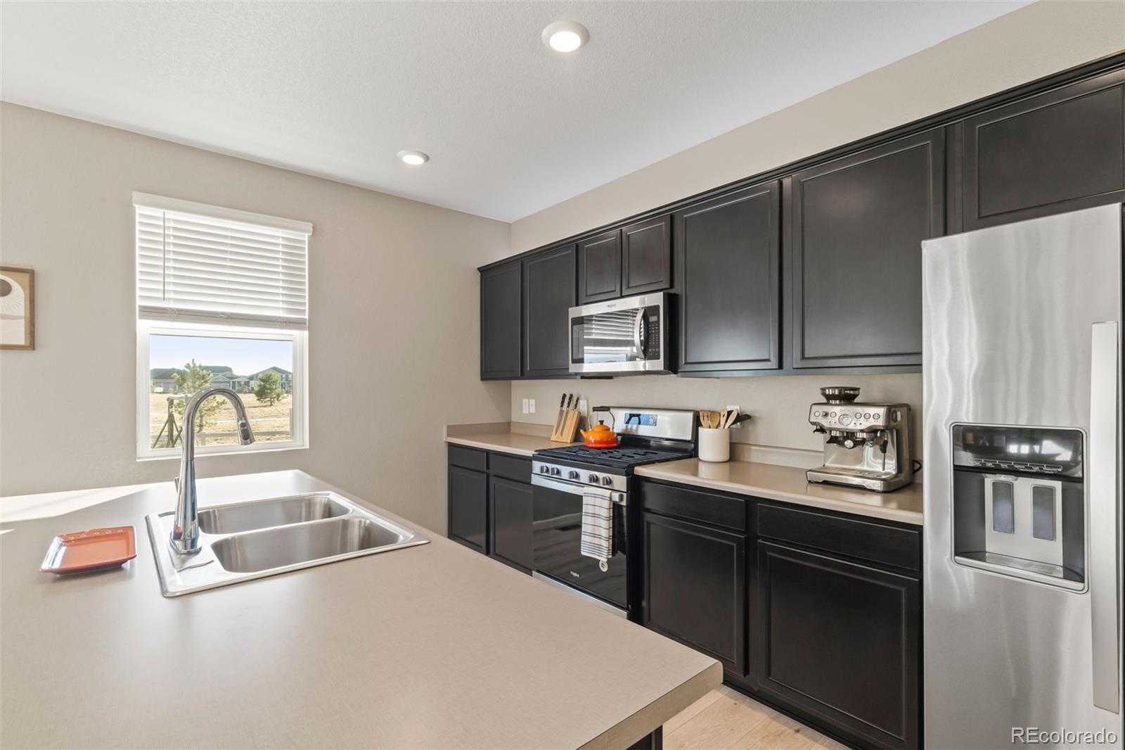Rather than staring into your neighbor’s home from your backyard, this beautifully maintained home in Clark Ranch backs directly to a park with mountain views. The home offers a better-than-new feel, with trees growing, homes already built (2020), and neighbors who are established in the community. Inside, the home is turnkey and ready to go, featuring smart lighting, a dedicated main-level office ideal for remote work or study, and updated flooring that continues from the entryway through the kitchen and into the main living area. You have to see how big the spacious primary suite is to believe it. At this price point, the primary setup feels like its own getaway—something that is truly impossible to find in most Denver Metro homes. A versatile 3-car garage adds the functionality every family dreams of having. Adding even more value, the home includes a photovoltaic solar panel system that promotes energy efficiency and green living. The system will be paid off by the seller at closing, allowing the next owner to enjoy the benefits of lower utility costs without assuming a lease or loan. The backyard has been designed as a gardener’s dream, featuring lush landscaping, mature trees, and upgraded patio spaces that invite dining, relaxing, or hosting. With open space just beyond the yard, the outdoor experience feels expansive and serene. Clark Ranch is known for its welcoming community atmosphere and convenient access to parks, trails, schools, and the Carbon Valley Rec Center. Nearby Old Town Frederick offers local dining, shopping, and seasonal events, while quick connections to Hwy 52 and I-25 make commuting to Longmont, Denver, and other Front Range destinations simple and efficient. With its open space setting, quality updates, energy-conscious features, and prime location in one of Frederick’s best neighborhoods, this home offers a lifestyle defined by comfort, connection, and convenience. Schedule your showing today or swing through one of the open houses!