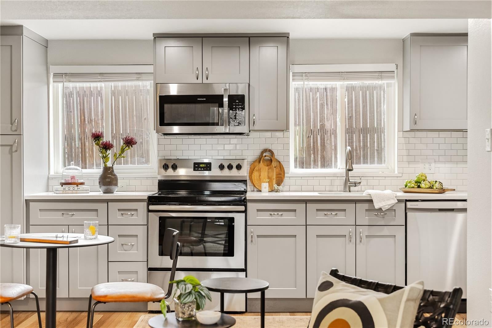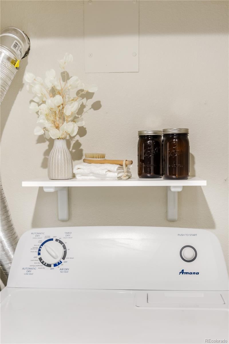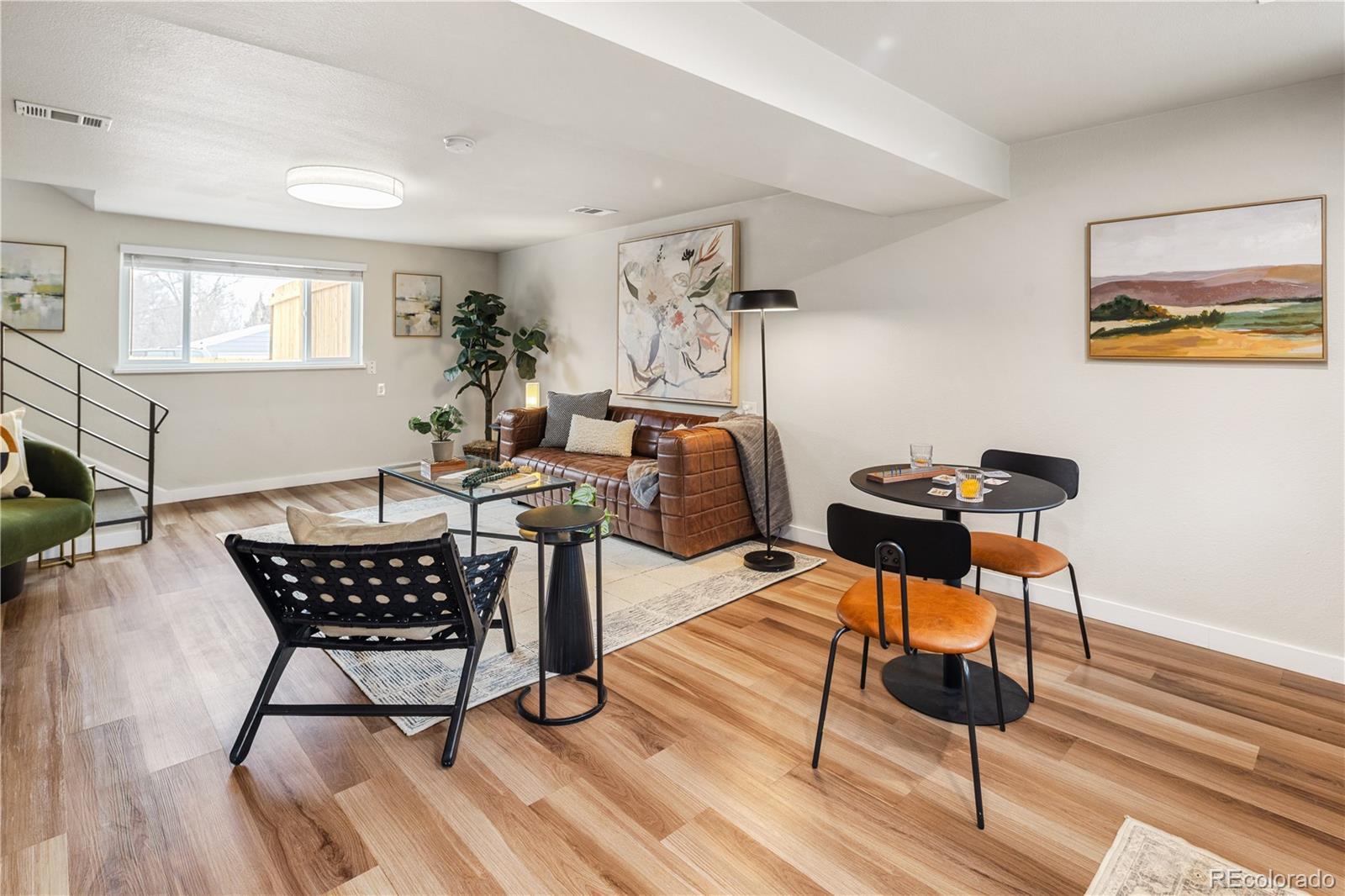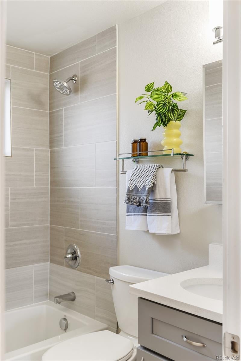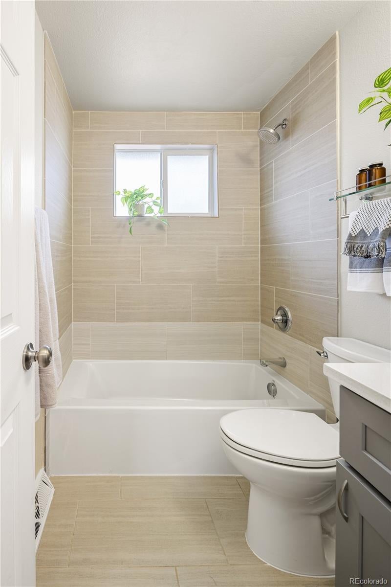 This is what affordable, walkable, urban living near Sloan's Lake looks like. Bright, open, and full of character, this two-story, two-bedroom townhouse hits the sweet spot for move-in ready living with style and soul. From the moment you enter, the open layout just works. Iron railings add a layer of texture and edge, while new paint, light fixtures, LVP flooring, doors, windows and fixtures exude quality.The flow of the main level is made for cooking, hanging out, hosting friends, or just relaxing at home. The kitchen is completely renovated with real wood shaker cabinet with slow closers. Quartz countertops and stainless appliances sparkle, while a Nest thermostat and a newer furnace/AC combo keep everything comfortable year-round. A great laundry nook is an incredible luxury and the washer/dryer are included. Upstairs two very generous bedrooms with end unit windows on two sides, high ceilings and large closets with barn doors. The primary even has a big second closet! The bright full bathroom makes the layout feel thoughtful and livable. While most townhomes offer little to no outdoor space, this one has a private concrete patio perfect for al fresco dining, a grill or firepit. The nearly 800 sqft yard is all yours and has a brand new cedar fence, established grass and HOA maintained sprinkler system. A reserved off street parking spot is included as is a private storage shed. Another bonus is a communal patio out back that gets tons of sunlight. New roof in 2024! Location Location Location! Just 10 blocks to Sloan’s Lake and Edgewater Public Market, King Soopers and Target. Several parks and the Sheridan Light Rail Station, Walmart and Home Depot and yes, the infamous Casa Bonita are all within walking distance. $200/month HOA covers water, gas, heat, sewer, sprinklers, trash and premises liability. This townhome doesn't just look good, it’s genuinely affordable. Finally a place that you can call your own for the same monthly payment as a rental.