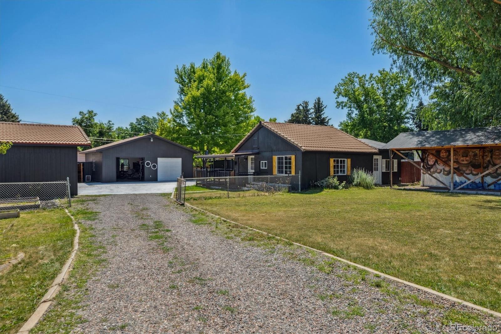 Experience the best of both worlds—peaceful country living with easy access to the mountains and the city—enjoy this rare Bonvue gem. Nestled on a private, tree-lined 15,682 sq ft/.36 acre lot, with NO HOA, this unique property offers space, serenity, and endless potential. The main home is complemented by a detached 2-car garage, two additional carports, and five versatile outbuildings—ideal for hobbies, storage, or future expansion. There is a covered patio with wood & concrete decking to enjoy summer BBQ, with lush grounds that are beautifully landscaped with mature trees, open lawns, and ample space for gardening or raised flower beds. A private gate offers direct access to Lakewood Park, which includes tennis courts and recreation fields—perfect for outdoor enthusiasts and Frisbee golfers. Conveniently located just minutes from Belmar shopping and dining, Main Street Lakewood, and the expansive William Frederick Hayden Park with over 2,400 acres of open space. Zoning Large Lot Residential. Near Colorado Christian University, this property is a rare find with room to grow. Hobbies: Dream. Don’t miss this unique opportunity to create your ideal lifestyle in a special setting! This property comes with yard Hydrant & Ditch water options. $200 Annually.