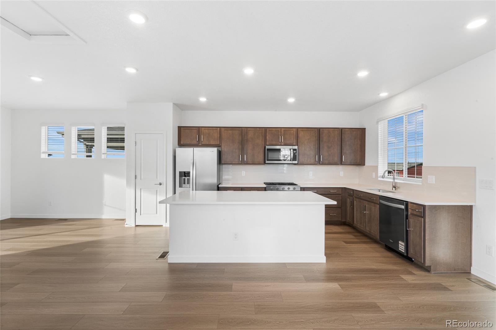 We are proud to present this lovely Pulte Homes 3-story style home in the beautiful Sterling Ranch neighborhood, one of Littleton's premier new communities! This Hartnett floorplan has great curb appeal with a unique look! Eye catching front entrance. Front landscaping is included. Attached comfortable 2 car garage. Everything is NEW, enjoy our Complete builder home warranty that brings you tremendous peace of mind! This is a stunning suburban area with ample green space, amazing mountain views, and resort-style amenities. The Hartnett plan can be yours today! 4- bedrooms and 3.5 bathrooms, this practical layout with practical upper-level loft and main floor bedroom, this home checks all the boxes! The spacious kitchen flows perfectly into the Cafe and Gathering room offering a great entertaining space. This NEW BUILD home offers an open floor plan with exceptional finishes throughout. Upstairs the loft provides additional living space with 2 spare bedrooms and 1 bathroom. The owner's suite is spacious with an ensuite bath and walk-in closet. Upstairs laundry offers great convenience! Full unfinished basement offers a large open storage room and ample space for future finish if desired! Live close to shopping, dining, outstanding schools, trails & easy access to Denver/DIA. Community offers a pool, clubhouse, ponds, playground, trails throughout this thriving part of town. You're a short drive to Chatfield State Park or jump over to Cherry Creek Reservoir & State Park both offering camping, fishing, and boating and amazing recreational opportunities! Colorado State Parks Pass is included in HOA so you can enjoy all Colorado has to offer. Don't miss this amazing home in an amazing community!