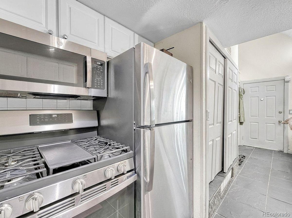 Bright & Modern 1-Bedroom Condo with Vaulted Ceilings and Sunset Views! Welcome home to this light-filled 1-bedroom, 1-bath condo featuring vaulted ceilings and a spacious layout. The living room boasts a large window. Dome skylights installed on the vaulted ceiling and the bathroom and a french style balcony door on bedroom fills the space with natural light, while the adjacent kitchen is outfitted with a gas range, overhead microwave, dishwasher, and refrigerator—all under 2 years old. Enjoy the convenience of in-unit laundry with a washer and dryer included. The bedroom offers direct access to a private west-facing balcony through charming French doors—perfect for taking in beautiful sunset views. You'll also find two mirrored closets, including a walk-in with ample storage. The home is equipped with forced air heating and central A/C, plus an upgraded HVAC system featuring an Air Scrubber with UV light and superior air purifier for enhanced indoor air quality. The electric panel was upgraded about a year ago as well. Located next to a neighborhood park with a playground and enclosed soccer field, and within walking distance of a larger park with a pond, fishing area, sand volleyball courts and trails. Thornton water world is just few blocks away. RTD stops are just steps away, making commuting easy and convenient. Denver downtown about 20 minute drive for nightlife; Boulder and Golden about 30 minutes drive for mountain views and hikes. This stylish, move-in-ready condo offers the perfect blend of comfort, function, and location. Don’t miss your chance to make it yours—schedule a showing today!