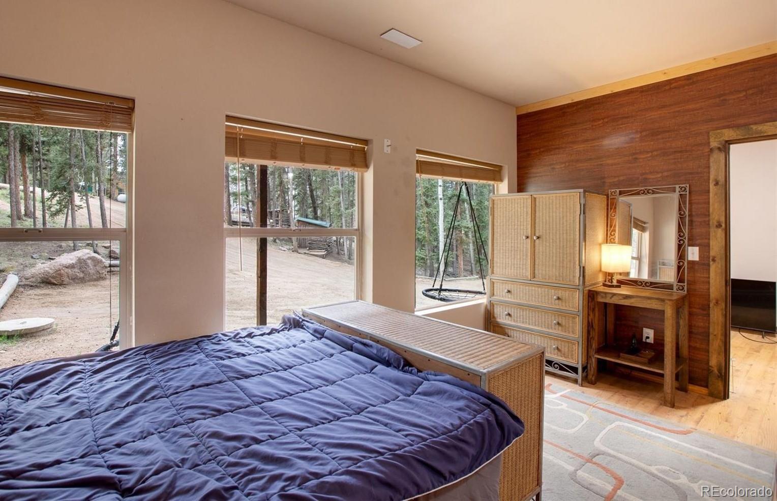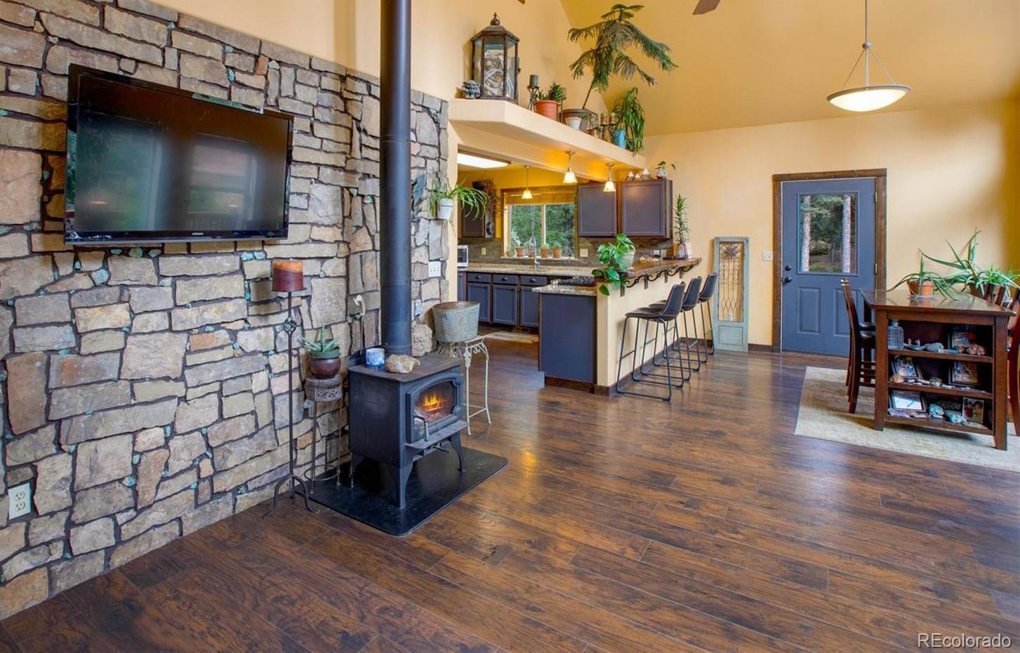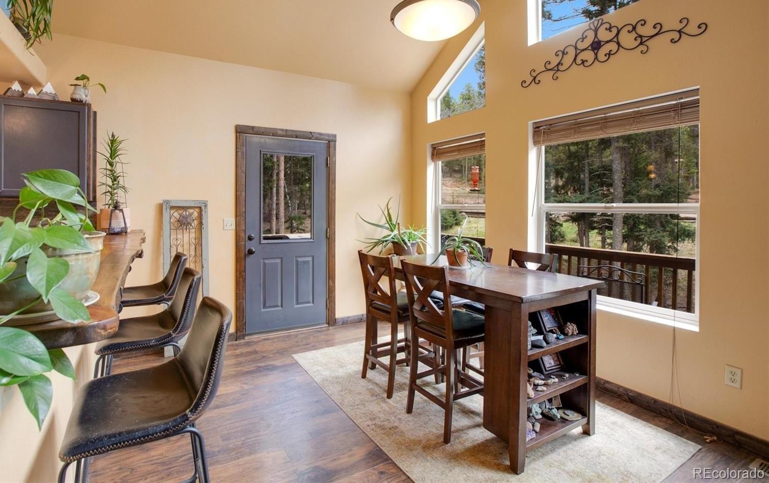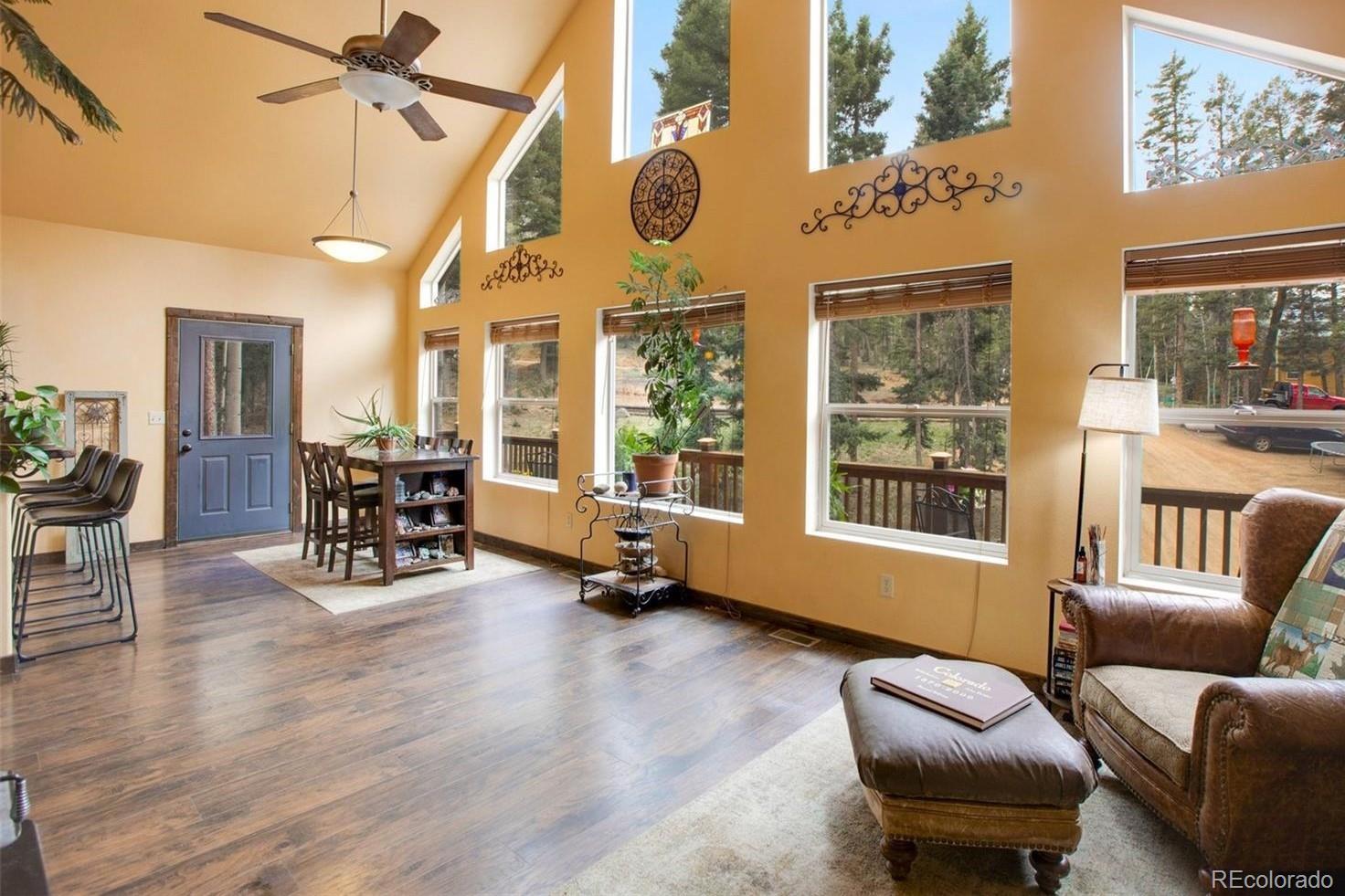 Located in Florissant, this 4 bedroom, 3 bath cedar-sided home is nestled on a half acre and is surrounded by pine trees and rock formations. Large picture windows for scenic views with plenty of room for RV parking and room to build a garage. Spacious kitchen, dining and living areas. The master suite offers a walk-in closet and 5-piece bathroom plus access to the covered deck. Situated in a private, friendly community only minutes from outdoor recreation destinations like Pike National Forest and 11 Mile Reservoir.