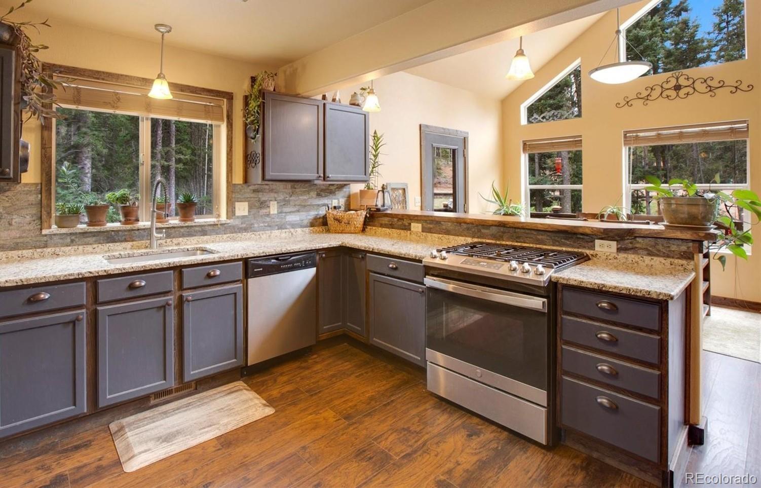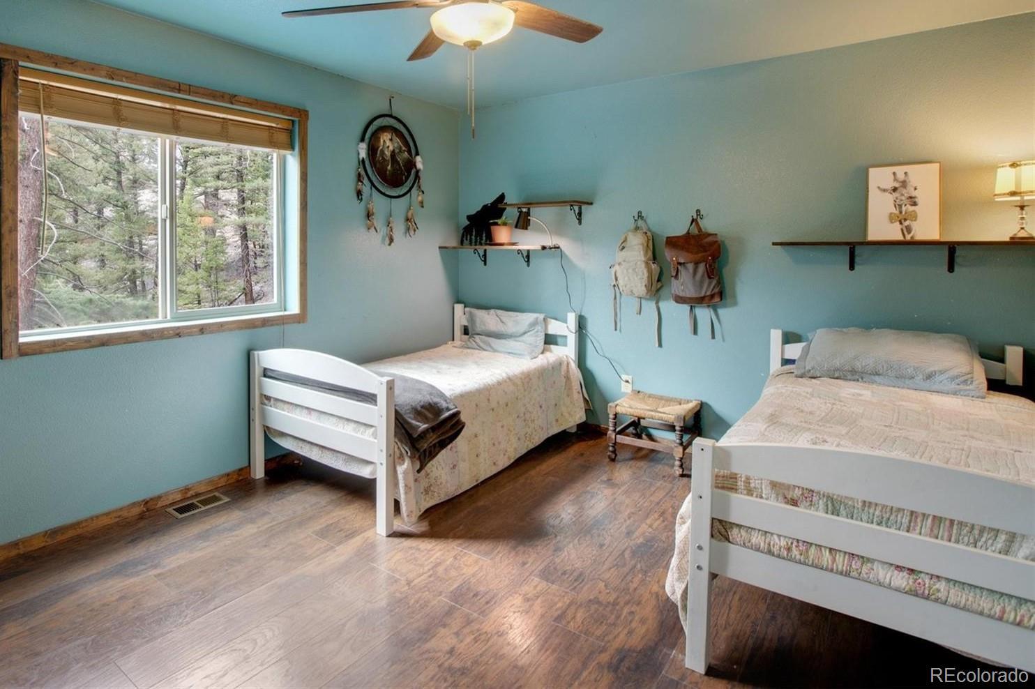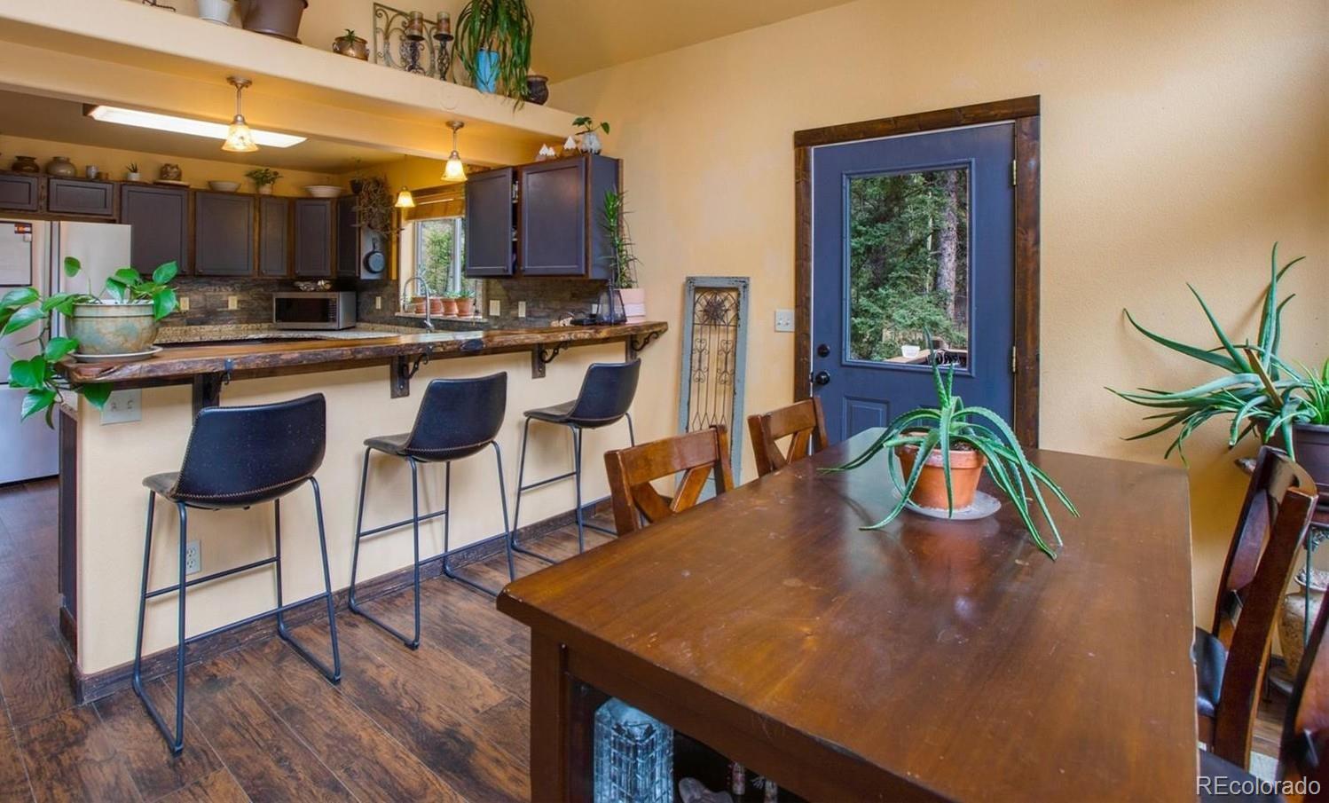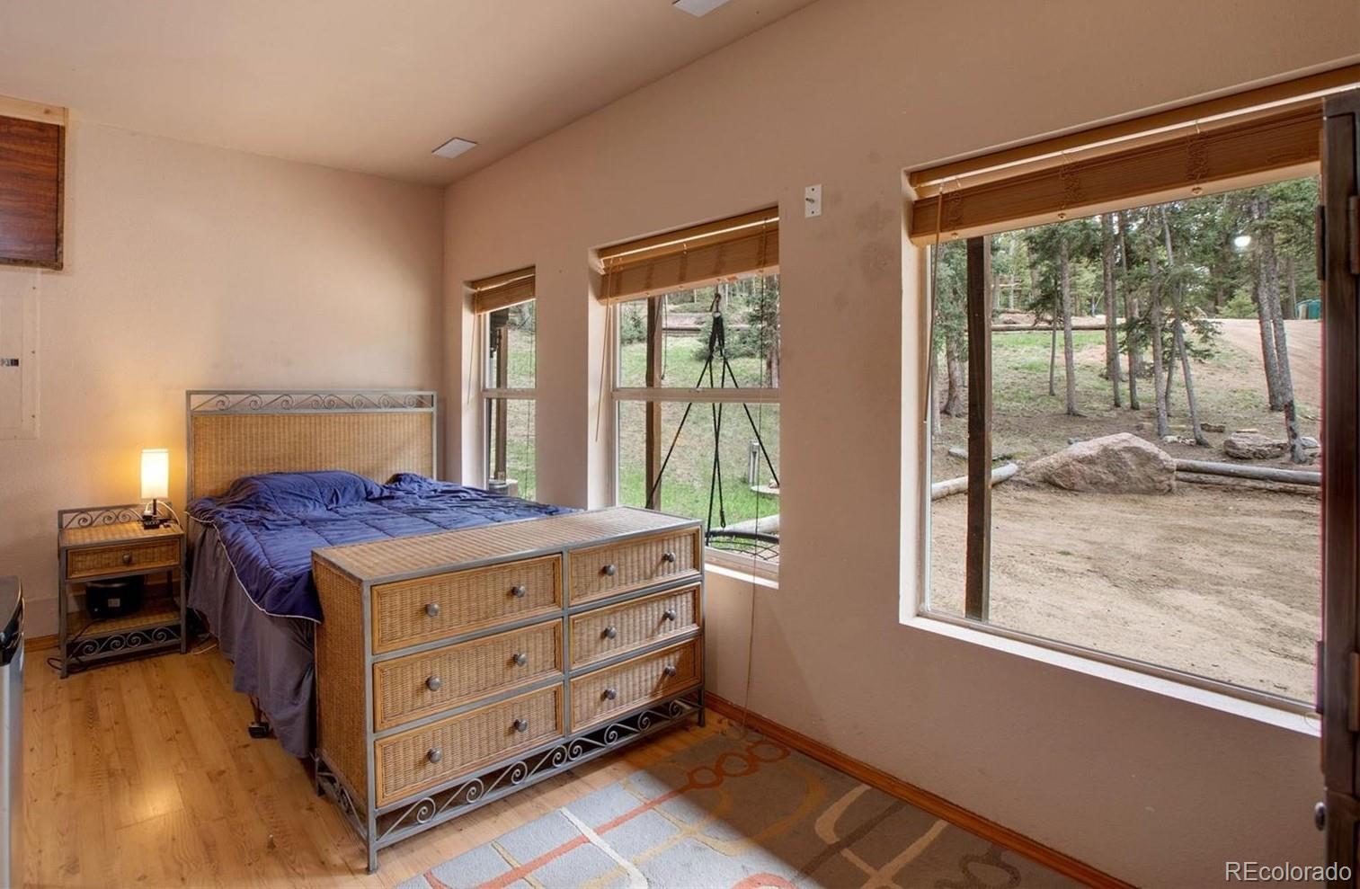 Located in Florissant, this 4 bedroom, 3 bath cedar-sided home is nestled on a half acre and is surrounded by pine trees and rock formations. Large picture windows for scenic views with plenty of room for RV parking and room to build a garage. Spacious kitchen, dining and living areas. The master suite offers a walk-in closet and 5-piece bathroom plus access to the covered deck. Situated in a private, friendly community only minutes from outdoor recreation destinations like Pike National Forest and 11 Mile Reservoir.