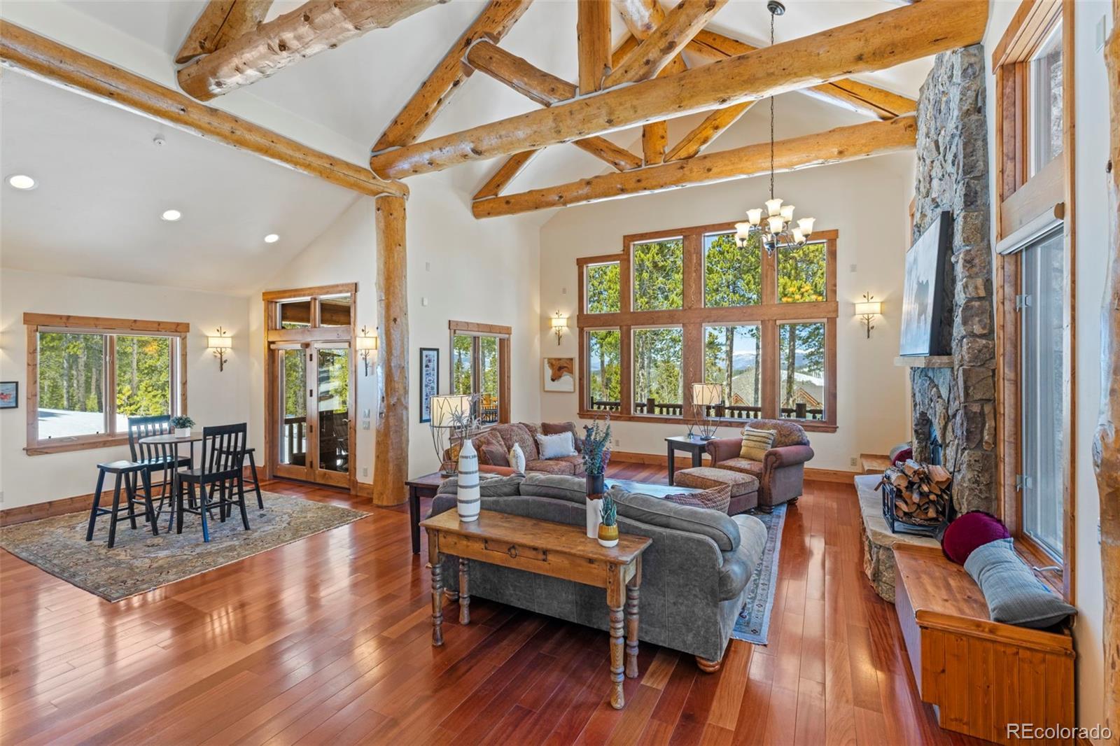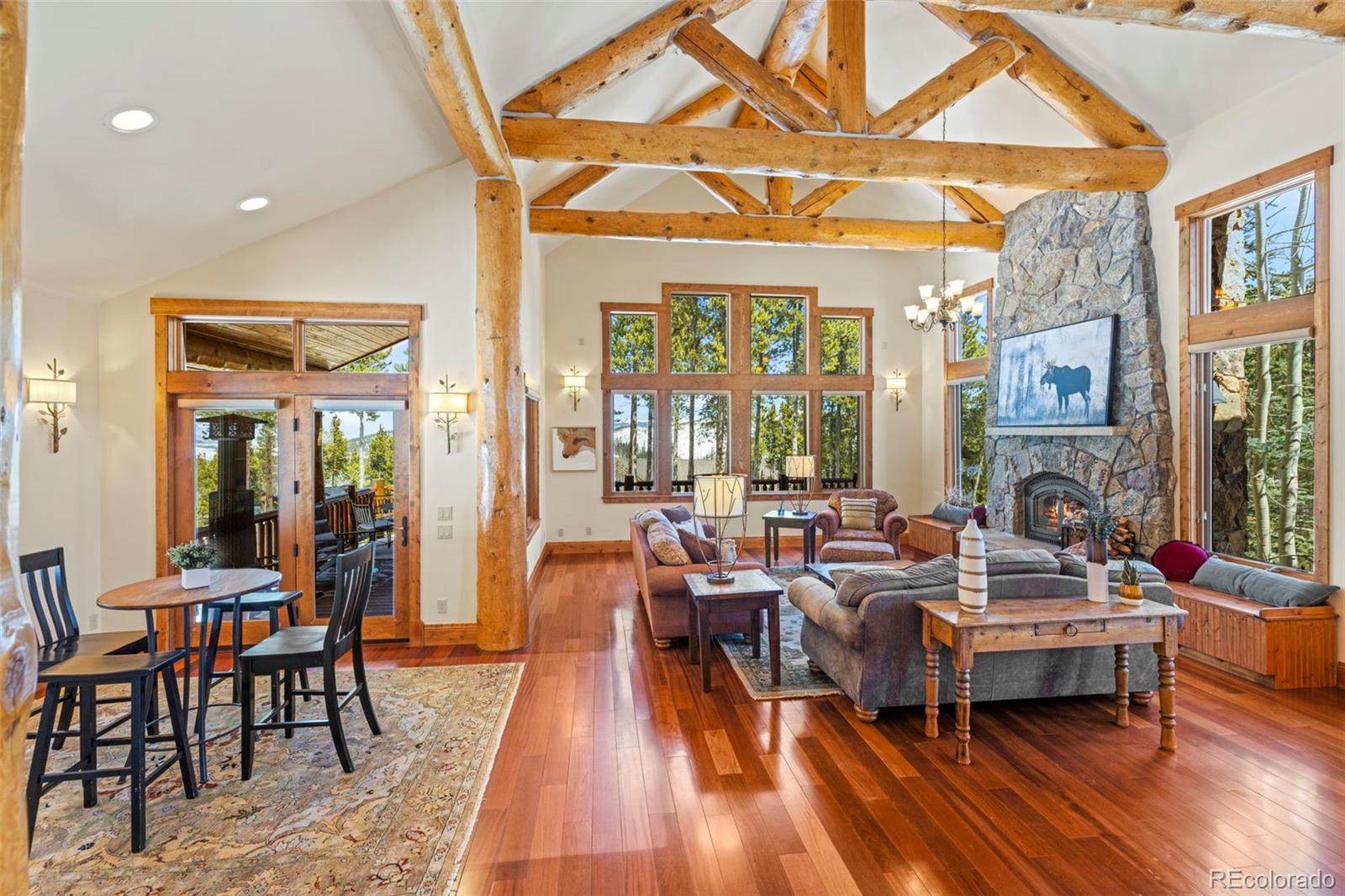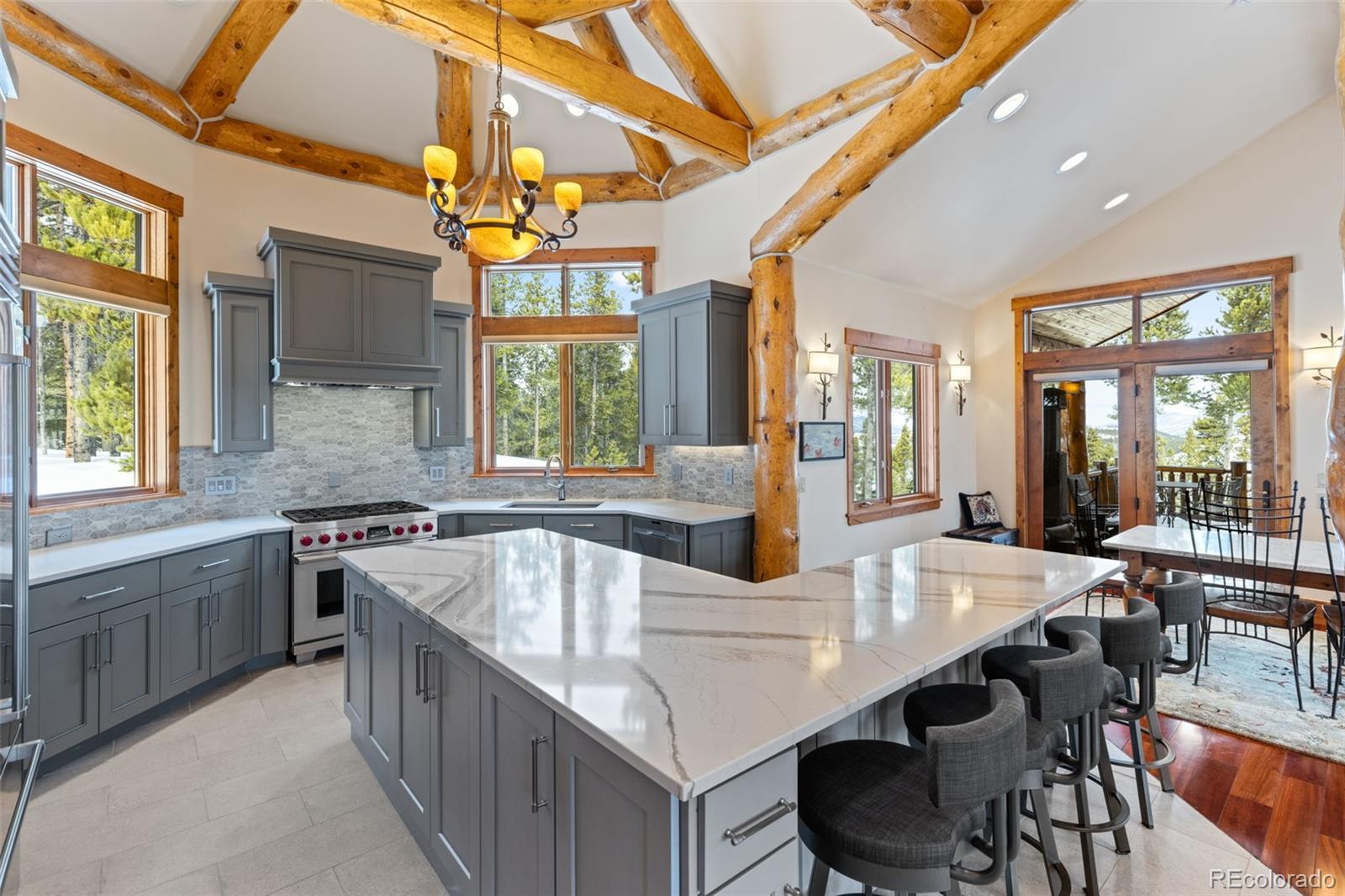 Rare Juniata home!! Experience the best of mountain living with nearly 2 acres of private land, top-rated hiking, biking, and cross-country trails right outside your door, a home built by one of Breckenridge’s top builders, and less than a 10-minute drive to the Breckenridge Ski Resort. This custom-built home features a spacious open floor plan with a brand-new kitchen equipped with Wolf appliances and two dining areas. Step outside the kitchen to a large deck with stunning views down the valley toward Frisco. Gather friends and family in the walk-out entertainment room or escape to the primary bedroom wing, where you can enjoy coffee on your private porch with views of Bald Mountain. The home boasts top-quality finishes, beautiful log accents, three fireplaces, multiple outdoor spaces, and a three-car garage with a work area. This home is the epitome of private mountain living, all while being just minutes from downtown Breckenridge.