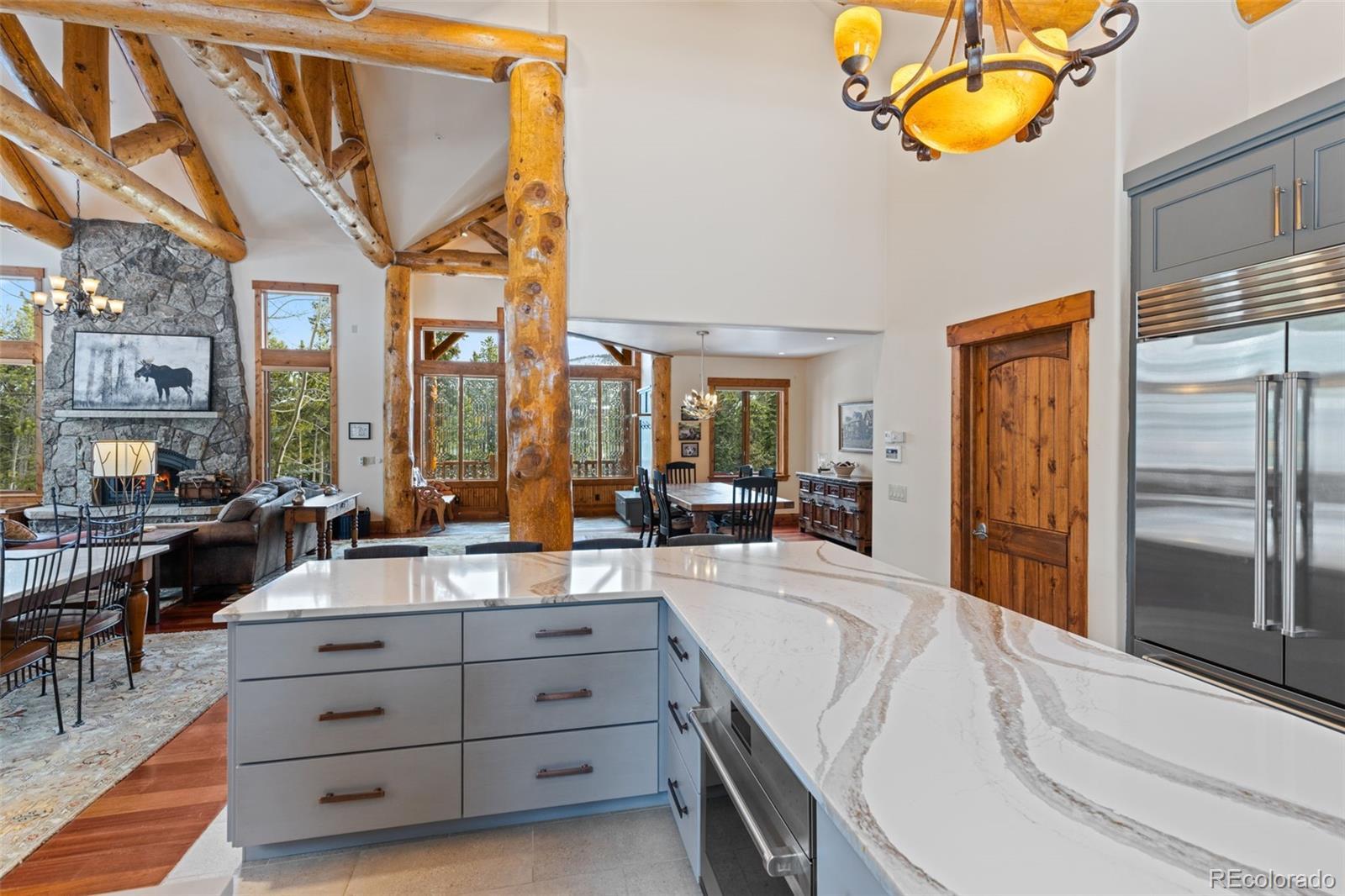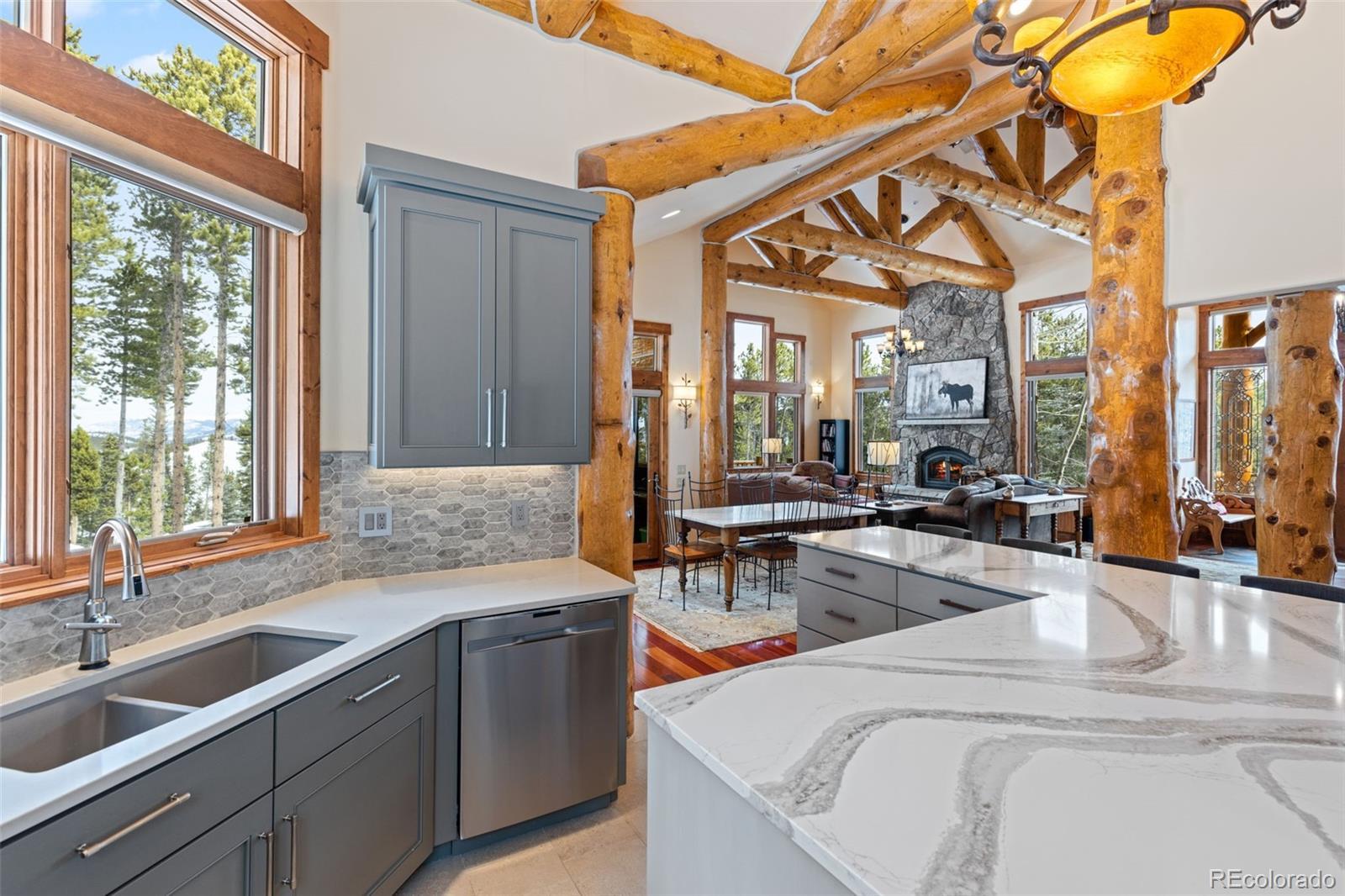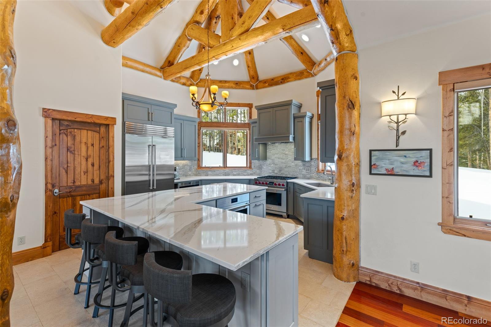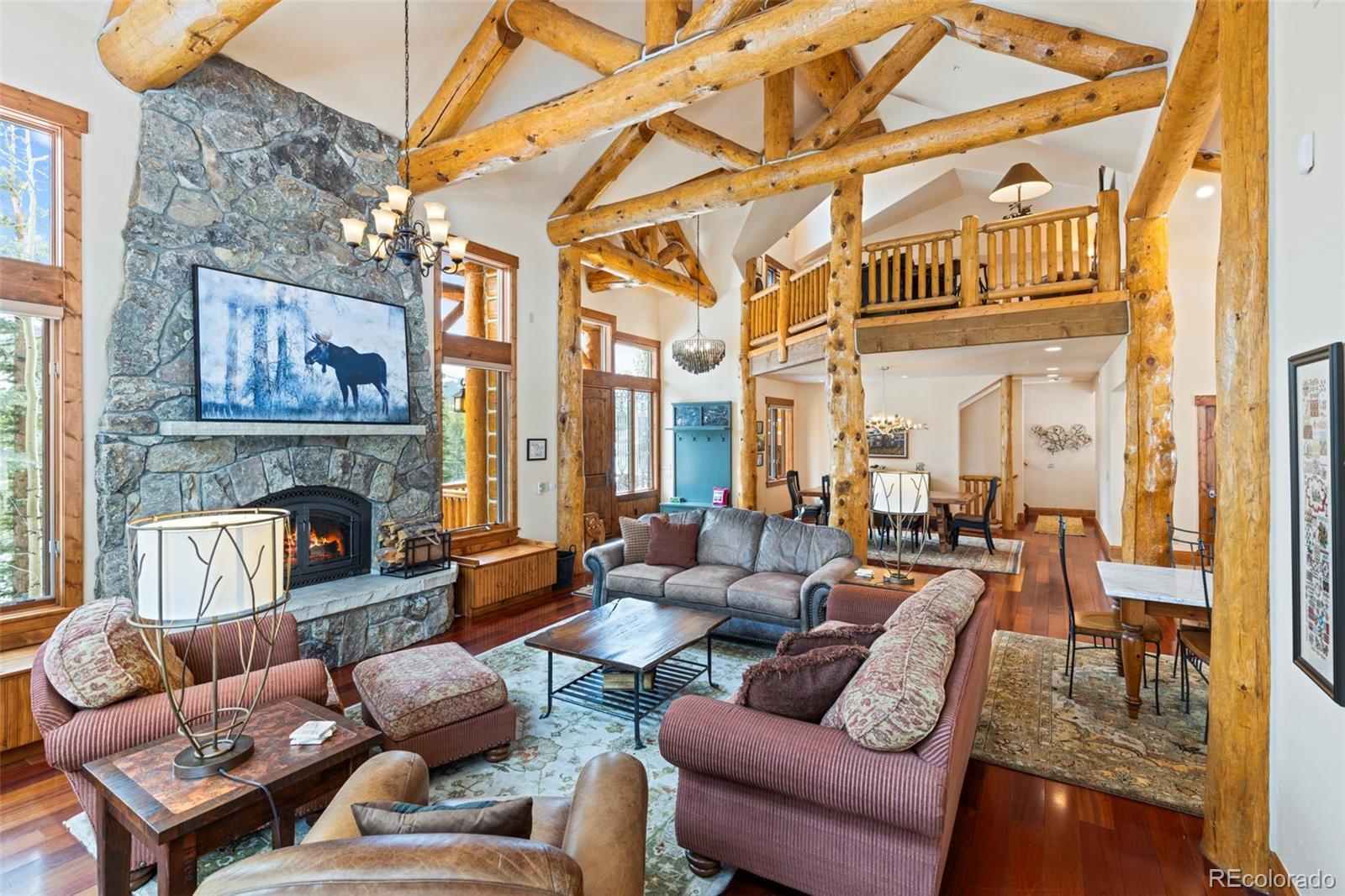 Rare Juniata home!! Experience the best of mountain living with nearly 2 acres of private land, top-rated hiking, biking, and cross-country trails right outside your door, a home built by one of Breckenridge’s top builders, and less than a 10-minute drive to the Breckenridge Ski Resort. This custom-built home features a spacious open floor plan with a brand-new kitchen equipped with Wolf appliances and two dining areas. Step outside the kitchen to a large deck with stunning views down the valley toward Frisco. Gather friends and family in the walk-out entertainment room or escape to the primary bedroom wing, where you can enjoy coffee on your private porch with views of Bald Mountain. The home boasts top-quality finishes, beautiful log accents, three fireplaces, multiple outdoor spaces, and a three-car garage with a work area. This home is the epitome of private mountain living, all while being just minutes from downtown Breckenridge.