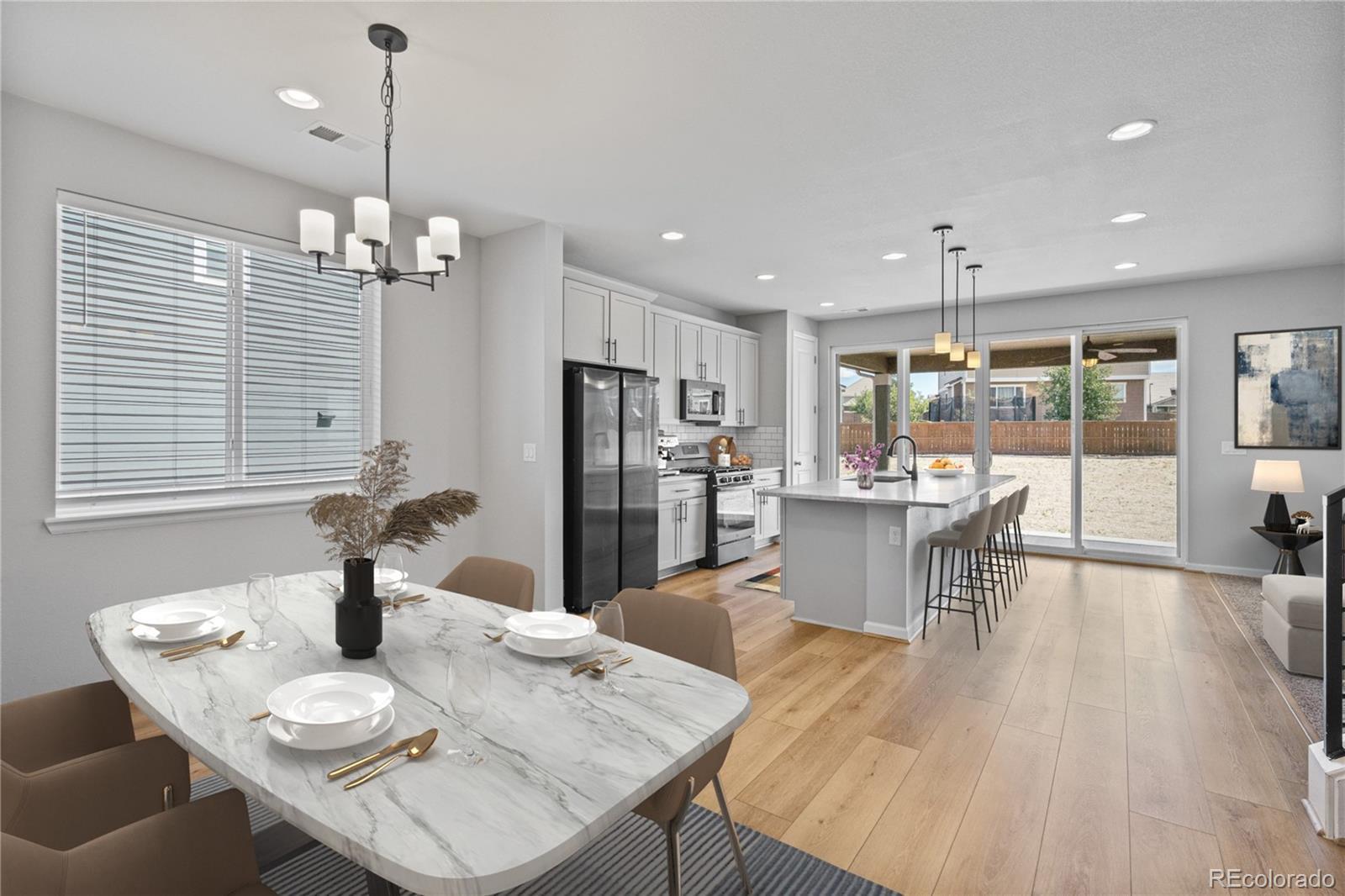 Welcome to 148 Vista Canyon Dr, a beautifully refreshed home located in the desirable Bella Mesa community of Castle Rock. This spacious 4-bedroom, 2.5-bathroom residence offers an open and inviting layout designed for modern living. The kitchen features a center island, newer-style cabinets, countertops, and appliances, with an adjacent dining area that flows seamlessly into the family room. Downstairs, you’ll also find a convenient bonus/office room, half bathroom, and indoor laundry. Upstairs, all four bedrooms are thoughtfully situated, including a generous primary suite with an attached bathroom for privacy and comfort. The backyard is perfect for entertaining with a covered patio and plenty of room to relax outdoors. An attached two-car garage with a driveway provides ample parking and storage. Move-in ready and ideally located, this home combines style, comfort, and functionality in one of Castle Rock’s most sought-after neighborhoods.