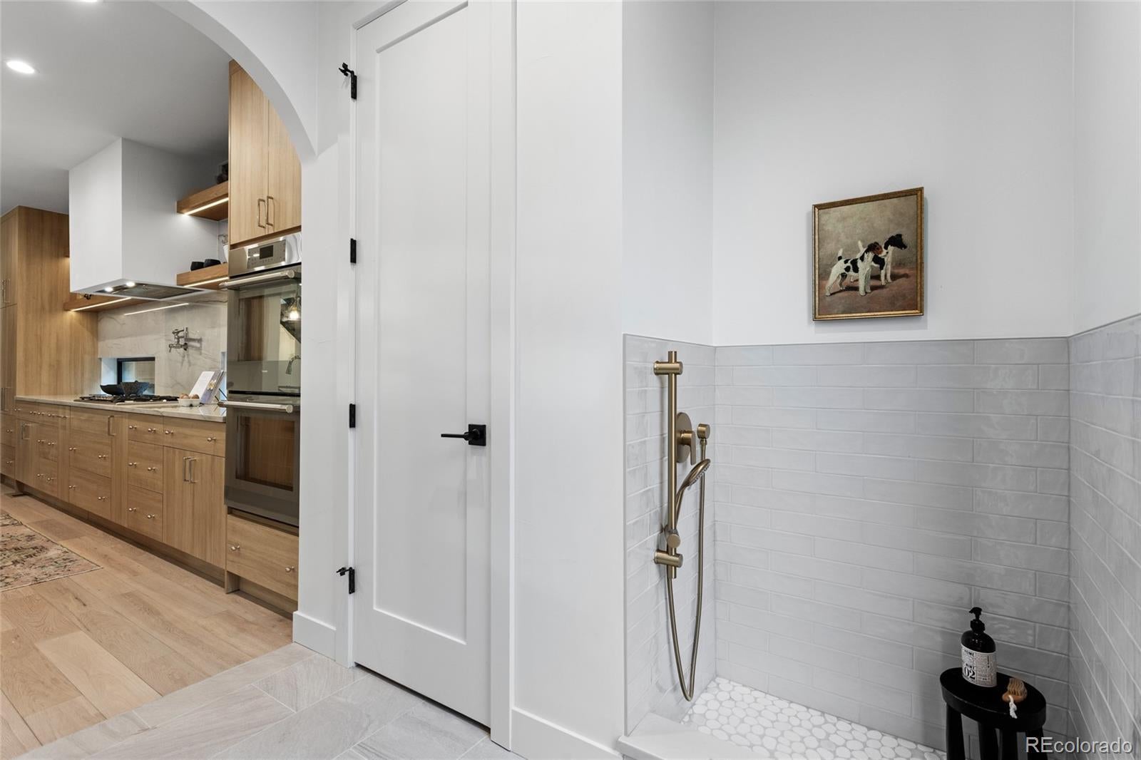 A Wash Park collaboration between European design and PBG craftsmanship this 6-bed, 5-bath is sure to astound. This Modern Tudor-inspired build sits proudly above the street on a corner lot 3 minutes from the Gaylord shop, 5-minute walk to Wash Park, 9-minute walk to Bonnie Brae, 4 minutes to Cherry Creek. The exterior blends natural cement siding with Gray Tudor brick and hand-formed copper gutters, creating a façade that feels both timeless and bold.Throughout, imported European aluminum triple-pane windows provide superior insulation, noise reduction, privacy (mirrored from exterior), and energy savings, while their multi-point design allows effortless ventilation control with security—exclusive to PBG-built homes in Colorado. Coupled with white oak flooring, the open concept brings in abundant natural light. Aluminum doors offer safety & quality. The kitchen features a 10-foot waterfall island lined with Bianco Superiore Quartzite, floor-to-ceiling American-made cabinetry, and Thermador cooking appliances including a panel hidden fridge/freezer. The living room centers around a sculptural stone gas fireplace and opens up to the private backyard by an aluminum bifold door seamlessly blending outdoor & indoor spaces. Up the custom dual stringer floating staircase, the large primary suite impresses with a tile-wrapped gas fireplace, private balcony accessible by slim-frame multi slide door, and tranquil sanctuary 5-piece bathroom. Two additional bedrooms, full bathroom, and a laundry room complete the second level. The rooftop level offers a flexible bedroom/office with wet bar & bathroom. Step out on the rooftop deck for mountain views, space for gatherings, & support for a hot tub. The finished basement features 10’ ceilings, an extensive wet bar, spacious recreation area, storage, and two bedrooms that could double as a gym, plus a full bath. Garage with 220V outlet. PBG provides industry leading 2-year builder’s warranty and 8-year structural warranty.