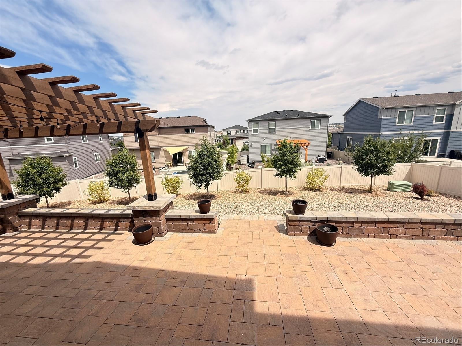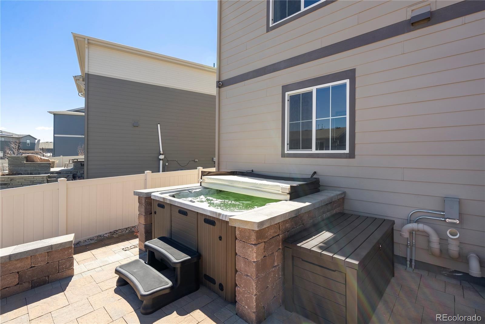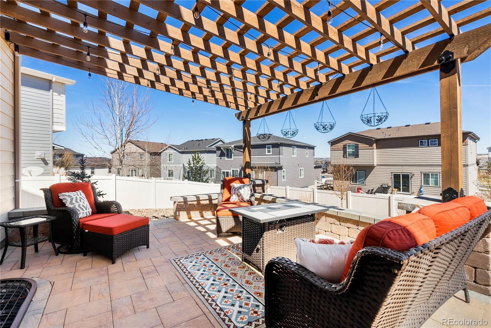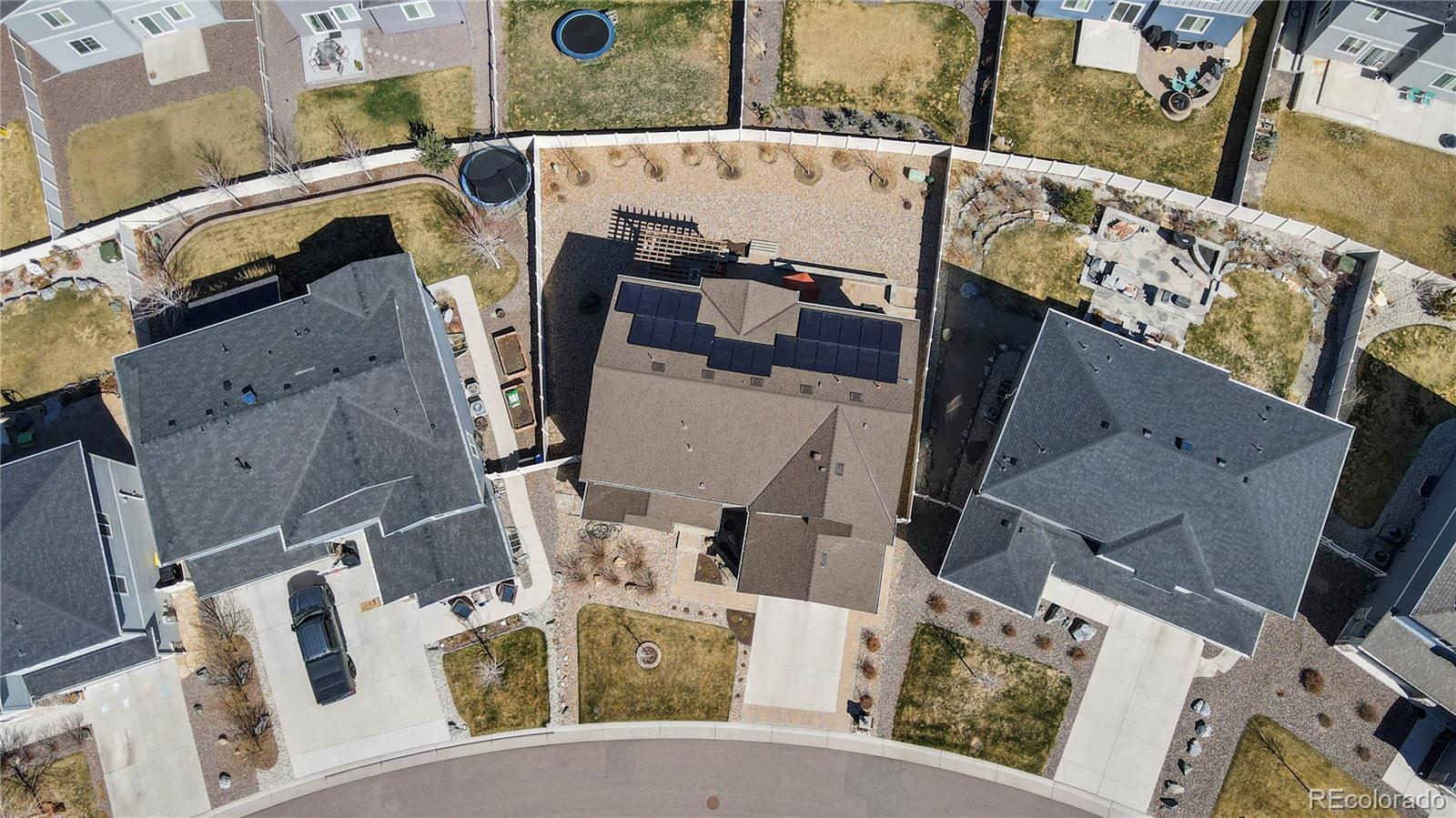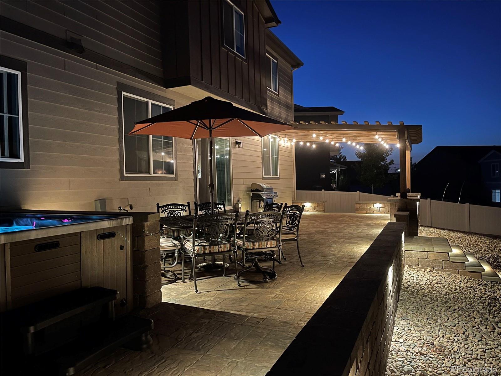 Video Tour: https://shorturl.at/PBvwt This beautifully upgraded 4-bedroom plus main-level office home is ready for its next chapter, ideally set across from a charming pocket park and just minutes from top-rated Legacy Elementary. From the moment you arrive, you’ll appreciate the inviting curb appeal—lush landscaping, mature trees, permanent Jellyfish lighting, and fully paid-off solar panels that combine beauty with smart savings. Step inside to a sun-filled, open layout designed for both everyday living and entertaining. The heart of the home is a designer kitchen with quartz countertops, crisp white cabinetry, stainless steel appliances, a spacious walk-in pantry, and a generous eat-in island. The main-level office with French doors is perfect for work, creativity, or study. Upstairs, you’ll find four roomy bedrooms, each with walk-in closets and brand-new carpet. The primary suite is your personal retreat, complete with dual closets—including a massive dressing room—and a spa-inspired bath featuring a soaking tub, frameless glass shower, and dual vanities. Laundry is conveniently located on the upper level. The rare 3-car tandem garage offers tons of storage, an attic space, and dual EV charging stations. The fully insulated, unfinished basement is a blank slate for your vision—home gym, media room, or future guest suite. Outside, unwind in your private, xeriscaped backyard designed for low maintenance and easy Colorado outdoor living. Entertain under the built-in pergola with dimmable lighting, or soak in the low-maintenance 8-person hot tub—all on a custom stone patio complete with lighting and a transferable 20-year warranty. This is more than just a house—it’s the lifestyle you’ve been searching for, blending luxury, smart features, and true community in the heart of Anthology West.