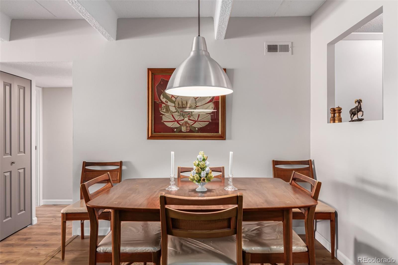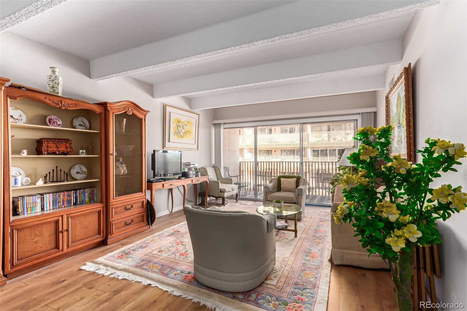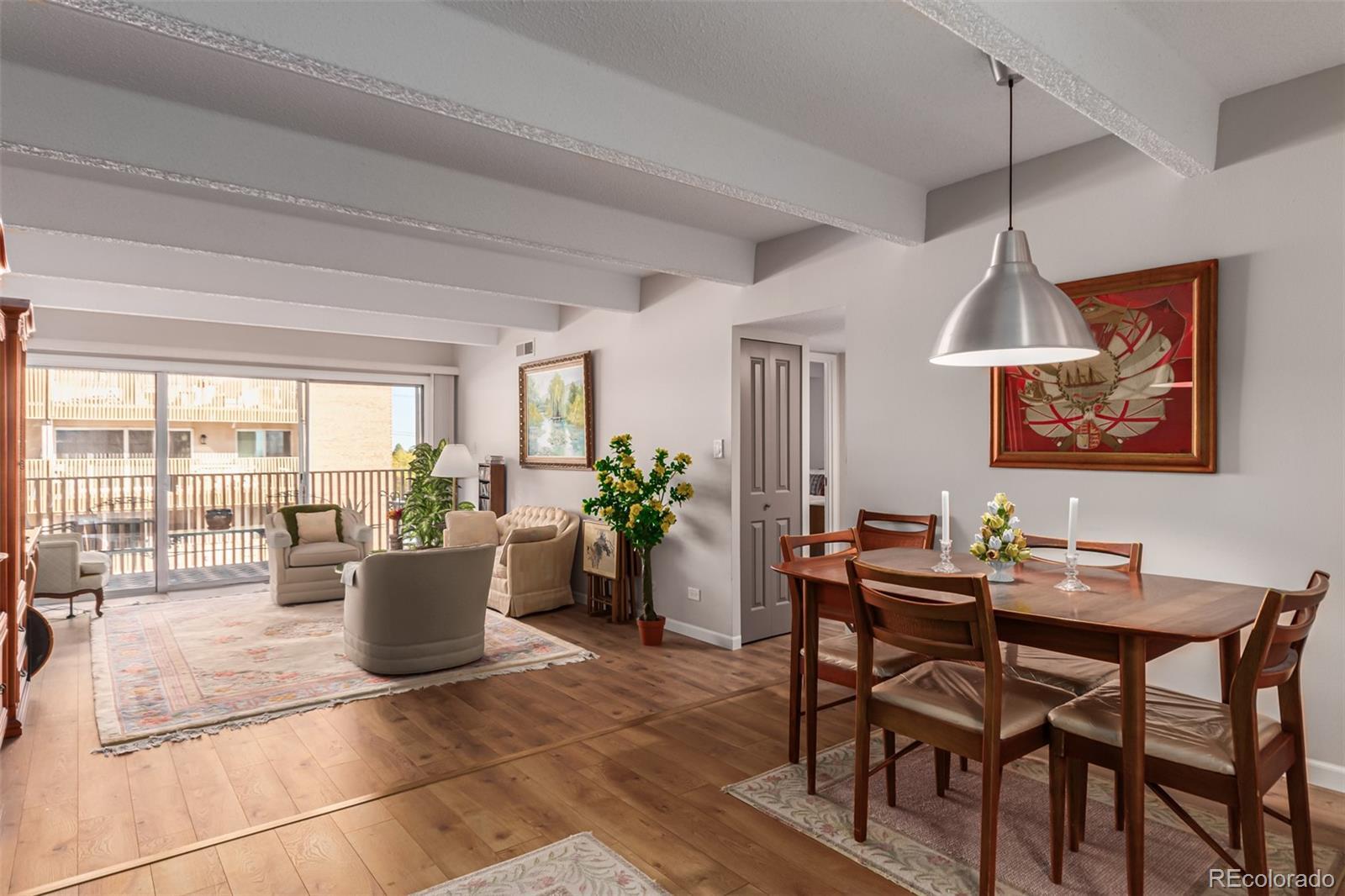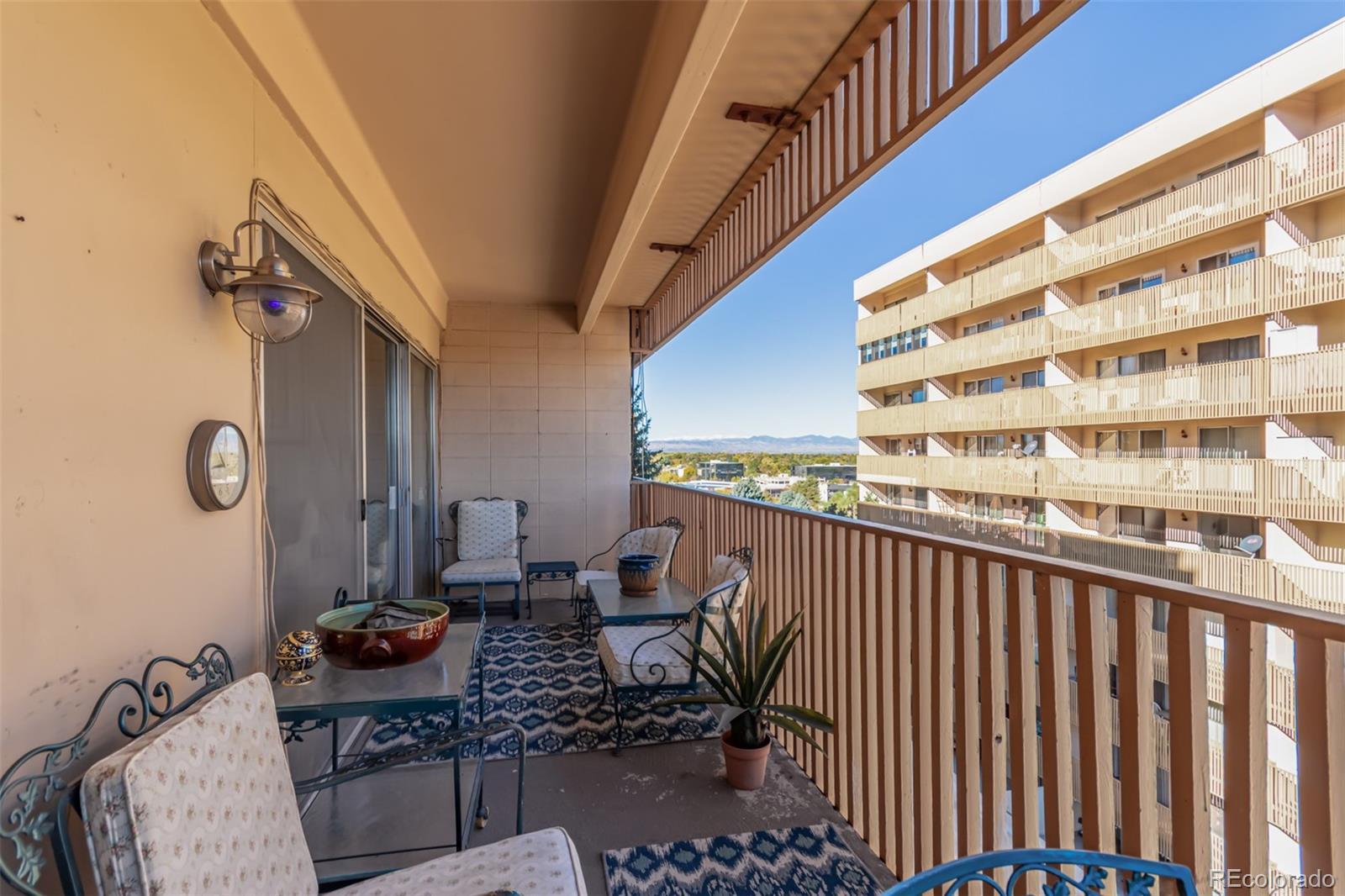 Welcome Home. Experience elevated living in this fantastic end-unit in the desirable Hampden East Condominium. Featuring 2 beds & 2 baths, this beauty seamlessly blends modern style and comfort. The interior exudes refined style with a neutral palette, tons of natural light, and wood-like flooring throughout. You'll LOVE the perfectly flowing living & dining room paired with multi-sliding doors that open to the balcony! The impressive kitchen boasts stainless steel appliances, butcher block counters, designer tile backsplash, and white shaker cabinetry. The primary bedroom has a triple-wide closet, balcony access, and a private bathroom for added ease. If you want to relax, the charming balcony awaits you! It is where you can soak in fresh air while enjoying unobstructed mountain views or the sparkling city lights. Situated in a gated Community that offers an impressive array of amenities! Take advantage of the indoor pool and hot tub, common laundry area, fitness center, and pool tables. This gem is also all about location, location, location! Conveniently near shopping, restaurants, schools, parks, and much more. You'll also have quick access to the Tech Center, I-25, I-225, light rail, and a network of bike trails, including the scenic Highline Canal. Don't miss this excellent opportunity! Garage parking spaces maybe rented on a monthly basis.