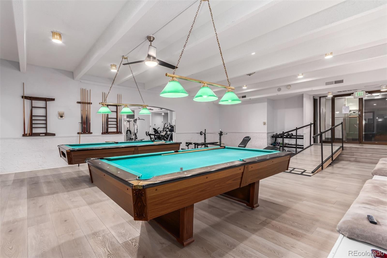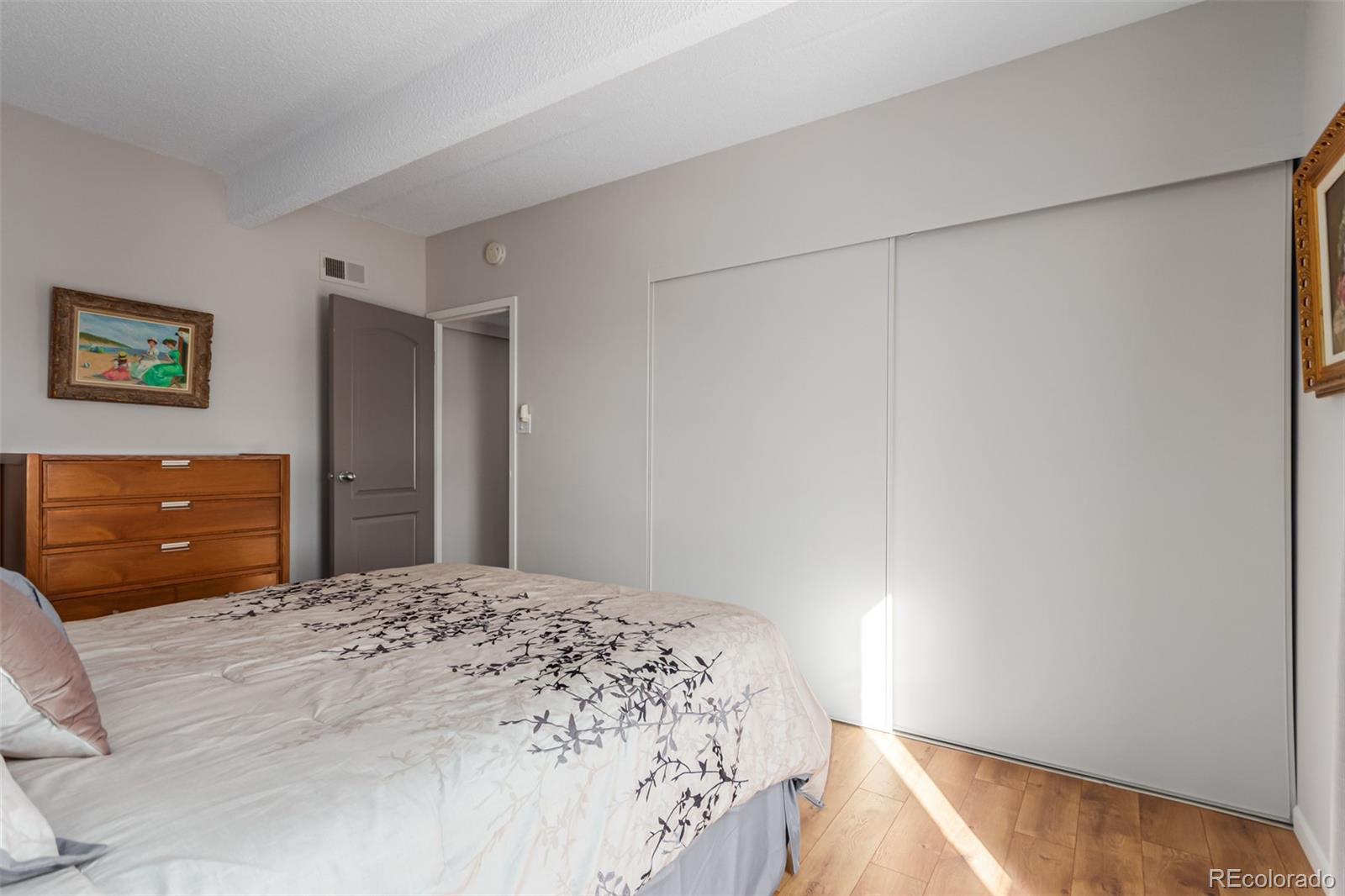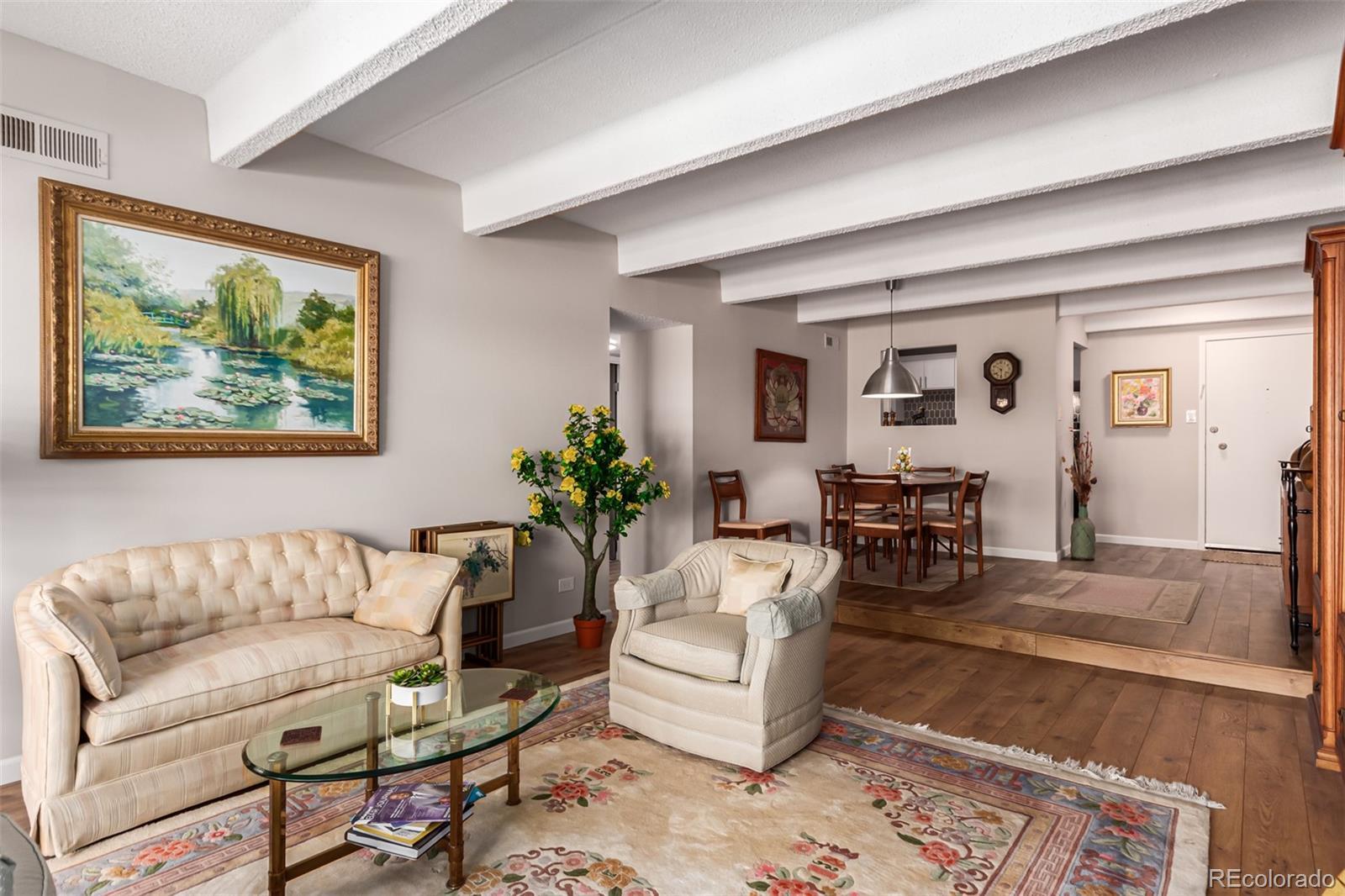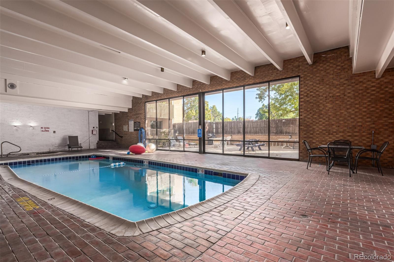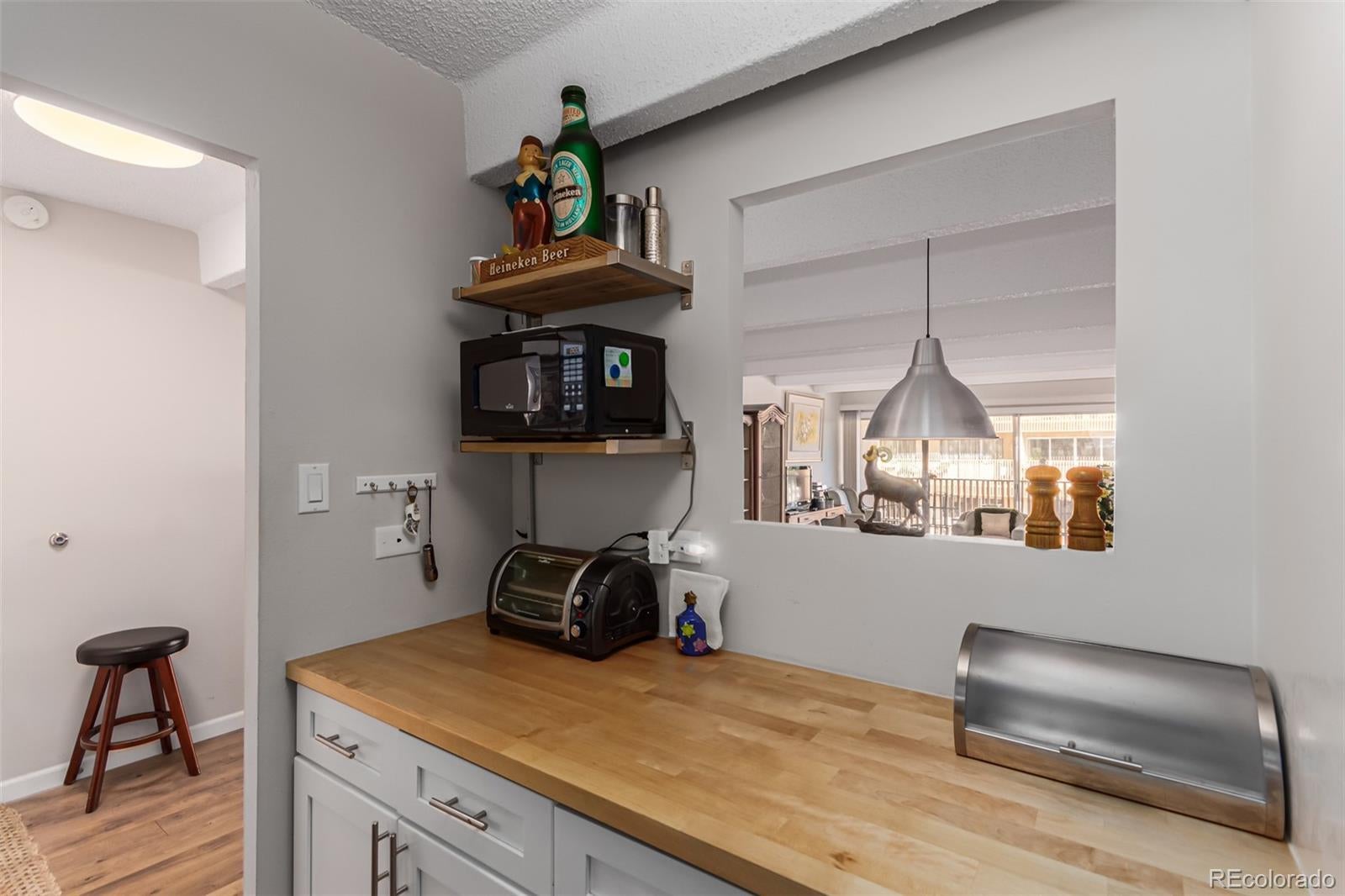 Welcome Home. Experience elevated living in this fantastic end-unit in the desirable Hampden East Condominium. Featuring 2 beds & 2 baths, this beauty seamlessly blends modern style and comfort. The interior exudes refined style with a neutral palette, tons of natural light, and wood-like flooring throughout. You'll LOVE the perfectly flowing living & dining room paired with multi-sliding doors that open to the balcony! The impressive kitchen boasts stainless steel appliances, butcher block counters, designer tile backsplash, and white shaker cabinetry. The primary bedroom has a triple-wide closet, balcony access, and a private bathroom for added ease. If you want to relax, the charming balcony awaits you! It is where you can soak in fresh air while enjoying unobstructed mountain views or the sparkling city lights. Situated in a gated Community that offers an impressive array of amenities! Take advantage of the indoor pool and hot tub, common laundry area, fitness center, and pool tables. This gem is also all about location, location, location! Conveniently near shopping, restaurants, schools, parks, and much more. You'll also have quick access to the Tech Center, I-25, I-225, light rail, and a network of bike trails, including the scenic Highline Canal. Don't miss this excellent opportunity! Garage parking spaces maybe rented on a monthly basis.