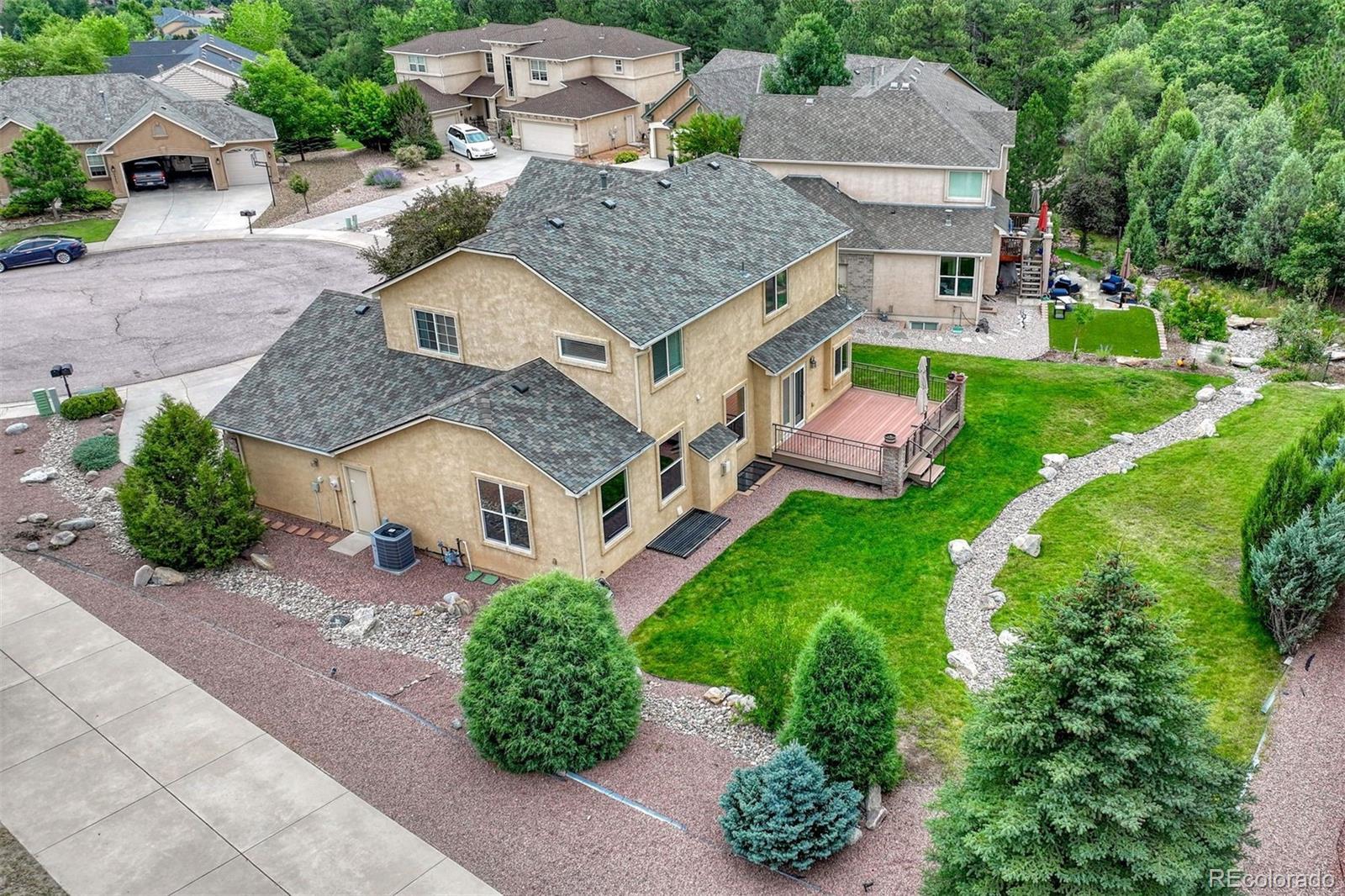 Fabulous 5-Bedroom Home in Sought-After University Bluffs! This beautifully remodeled, move-in ready stucco 2-story offers 5 bedrooms, 4 bathrooms, a separate office, and a spacious 3-car garage with overhead storage—all tucked away on a quiet cul-de-sac in University Bluffs. Step inside to a bright and open living/dining room combo featuring stylish LVP flooring. The updated kitchen is a chef’s dream with white cabinetry, quartz countertops, stainless steel appliances, and designer finishes. The inviting great room showcases a cozy gas log fireplace and opens to a dedicated office with custom built-ins and French doors. From the kitchen, step out onto the low-maintenance composite deck—ideal for morning coffee or evening wine—overlooking serene woods and open space. A beautiful river rock bed highlights the backyard, and the property extends beyond the rocks to the tree line for added privacy. Upstairs, you’ll find a remodeled full hall bath with dual sinks, newer tile, and modern fixtures. The fully finished basement offers a large recreation room, a wet bar with a full-size refrigerator, a 3/4 bath, and an oversized fifth bedroom—perfect for guests or multi-generational living. Additional updates include a newer furnace and water heater. Enjoy easy access to shopping, dining, UCCS, and I-25. The neighborhood features two parks and scenic walking trails surrounding Pulpit Rock. Don’t miss this exceptional home in one of Colorado Springs’ most convenient and desirable neighborhoods!