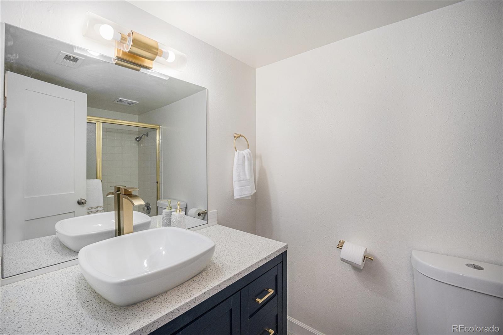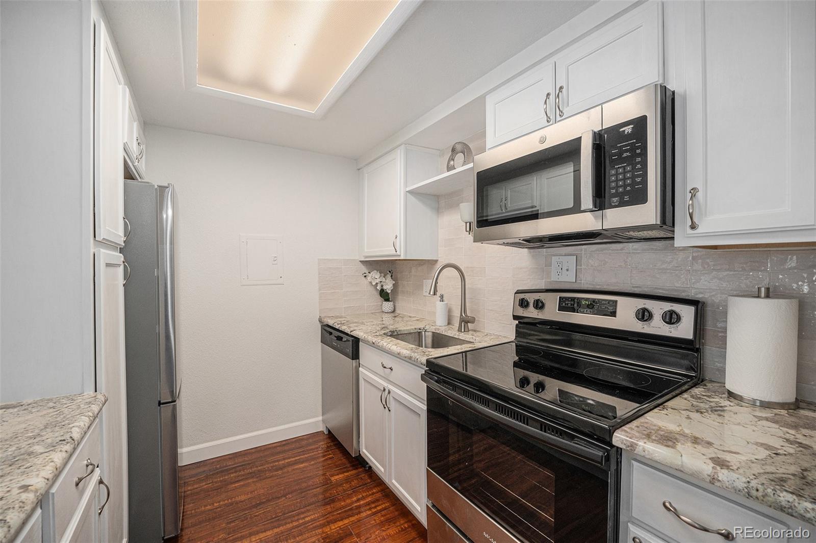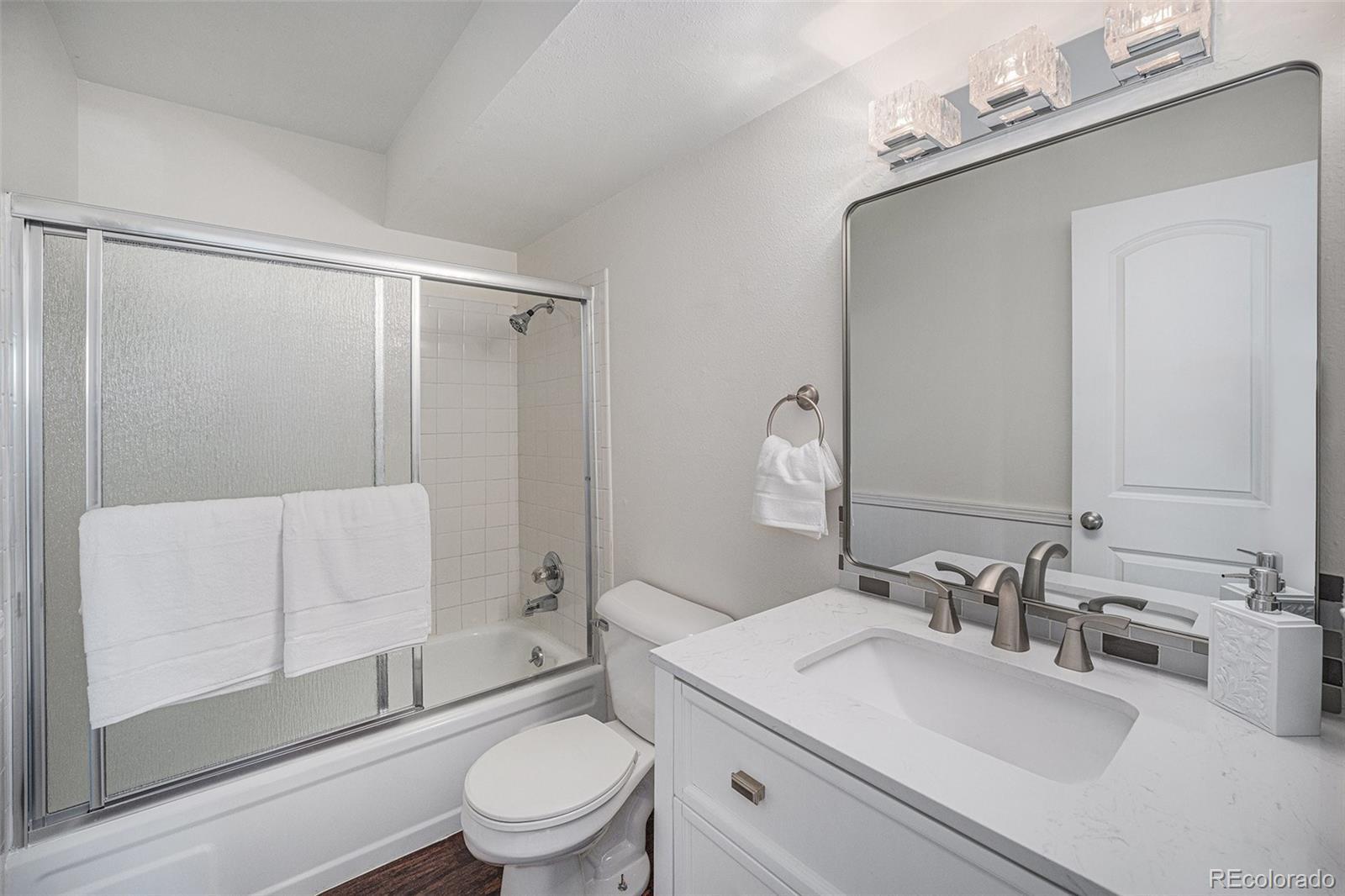 Welcome home to this STUNNING completely remodeled 3-bedroom 2-full bathroom condo in the Cottonwood Villas of Westminster! The building has a keypad entry to ensure security for the residents. Upon entering the 2nd story unit, you will be amazed by the flowing natural light from the large balcony and the wide-open floor plan making this home feel large and welcoming. Enjoy barstool seating as well as a large dining room off of the completely renovated kitchen. Gorgeous granite counter tops compliment the brand-new stainless-steel appliances. Down the hallway you will find the first full bathroom which features gold detailing throughout. Two spacious and well-lit bedrooms are adjacent to the huge primary bedroom with an in suite full bathroom that features silver detailing. Enjoy the views off your private balcony in which you can see both of your exclusive use car spaces and mailbox. Take a short walk to the community center where you will find the new pool, kids' playground, pool hall, and gym. Right next to the community center you can escape into the quiet sanctuary of the Front Range Village Greenspace and enjoy taking a stroll around the pond. Don't wait to schedule your private tour today, you'll want to call this condo home!