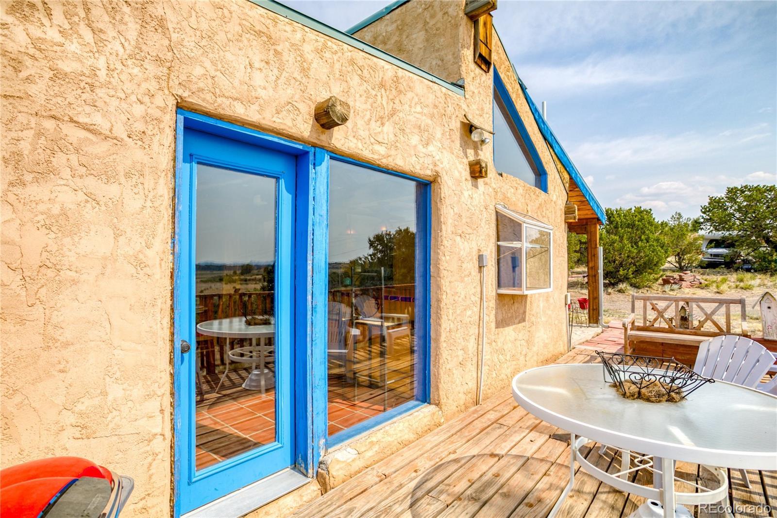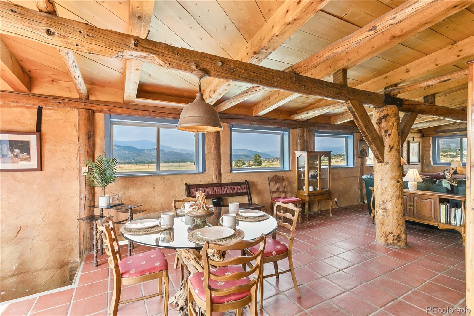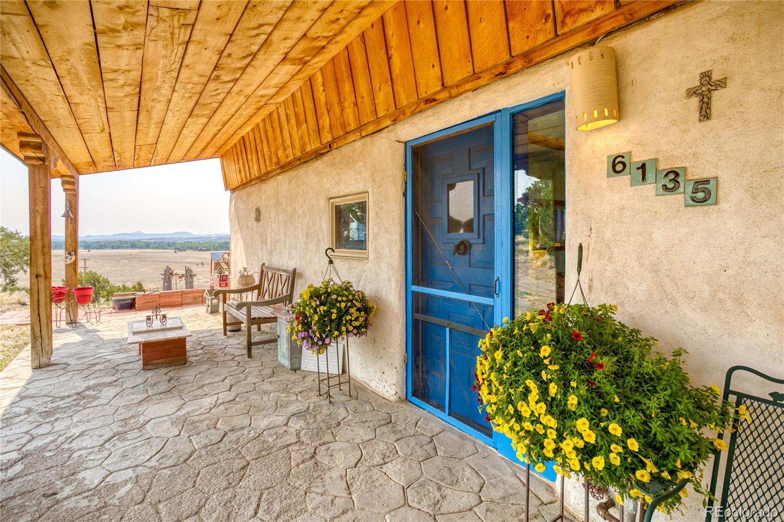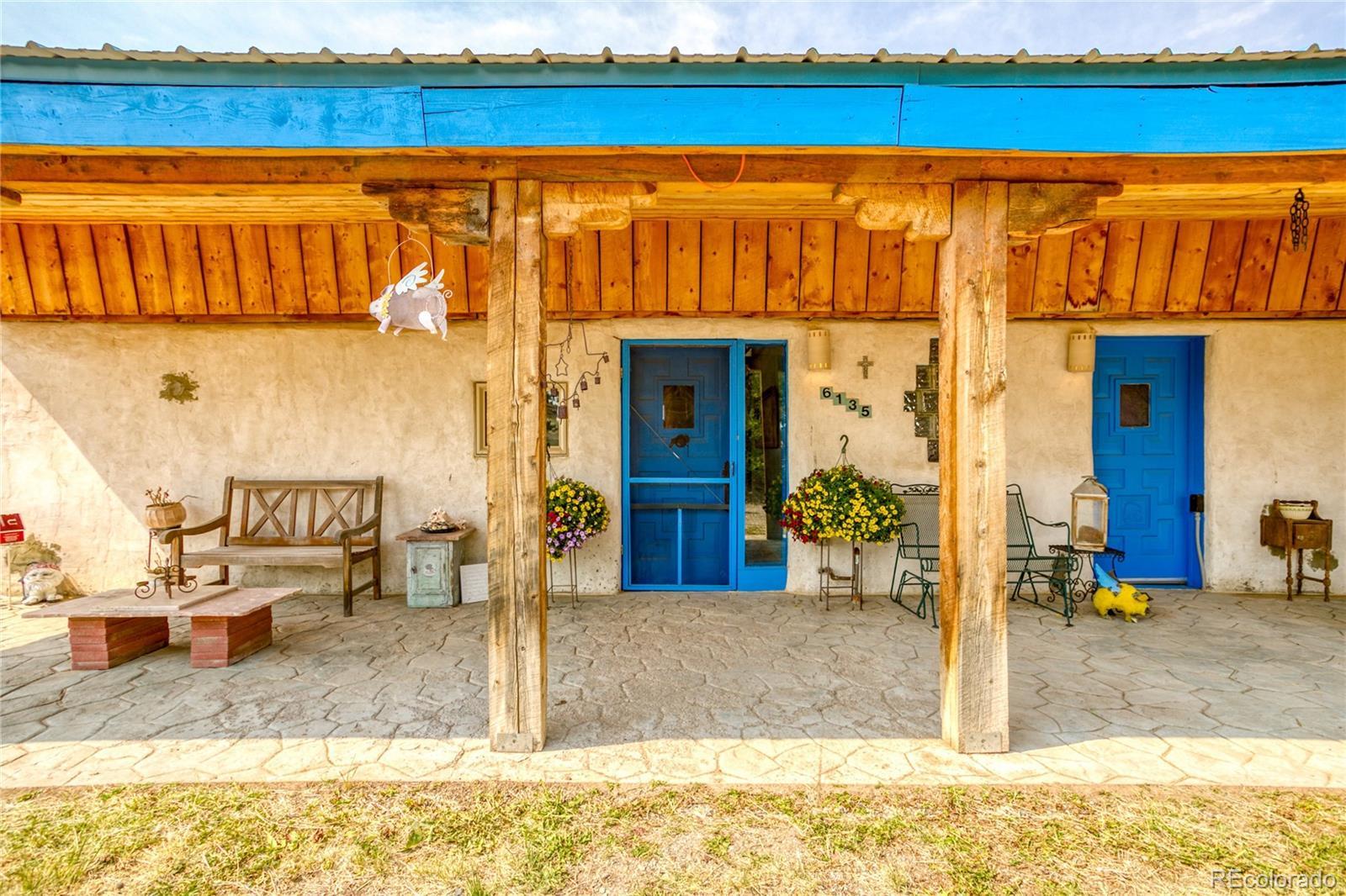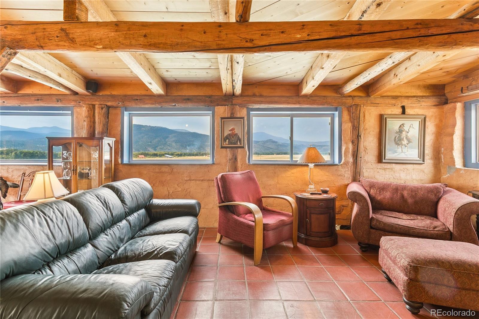 This Southwest-Style Hacienda sits on 5+ Scenic Acres with Horse Facilities and Mountain Views Discover your own slice of Southern Colorado paradise in this charming Southwest-style hacienda, perfectly situated on 5.11 acres with awe-inspiring views of the San Juan Mountains, the expansive San Luis Valley, and even a distant glimpse of the Rio Grande River. Located between South Fork and Del Norte - a short 10 minute drive to either town. This property offers both the serenity of country living and the convenience of nearby amenities. Step inside to find a thoughtfully designed home that celebrates the spirit of the region. From the custom tile floors—complete with stamped buffalo prints—to the rich wood beams reclaimed from an historic mine in Creede, every corner of this home tells a story. The open-concept living and dining areas are bathed in southern light, providing both passive solar warmth and an ever-changing mountain view that serves as the perfect backdrop for daily life. Whether you’re an outdoor enthusiast or simply love to relax in nature, you’ll appreciate the variety of outdoor living spaces—an east-facing deck for morning coffee, a covered back porch to unwind, or a sunny southern or western patio to watch the evening light fade across the valley. Bring your horses! The property features a corral and barn, ideal for equestrian use. Or dream a little differently and consider converting the barn into a guest house or short-term rental. Inside, you’ll find practical touches like a mudroom just off the foyer. Te office even has its own ¾ bathroom and could easily serve as a third bedroom or guest suite. A custom spiral staircase leads to the walk-out basement, where you’ll find a spacious fireside sunroom/living room, two private bedroom suites—each with large walk-in closets—and a laundry room. Whether you're looking for a quiet retreat, a horse property, or a base for your mountain adventures.