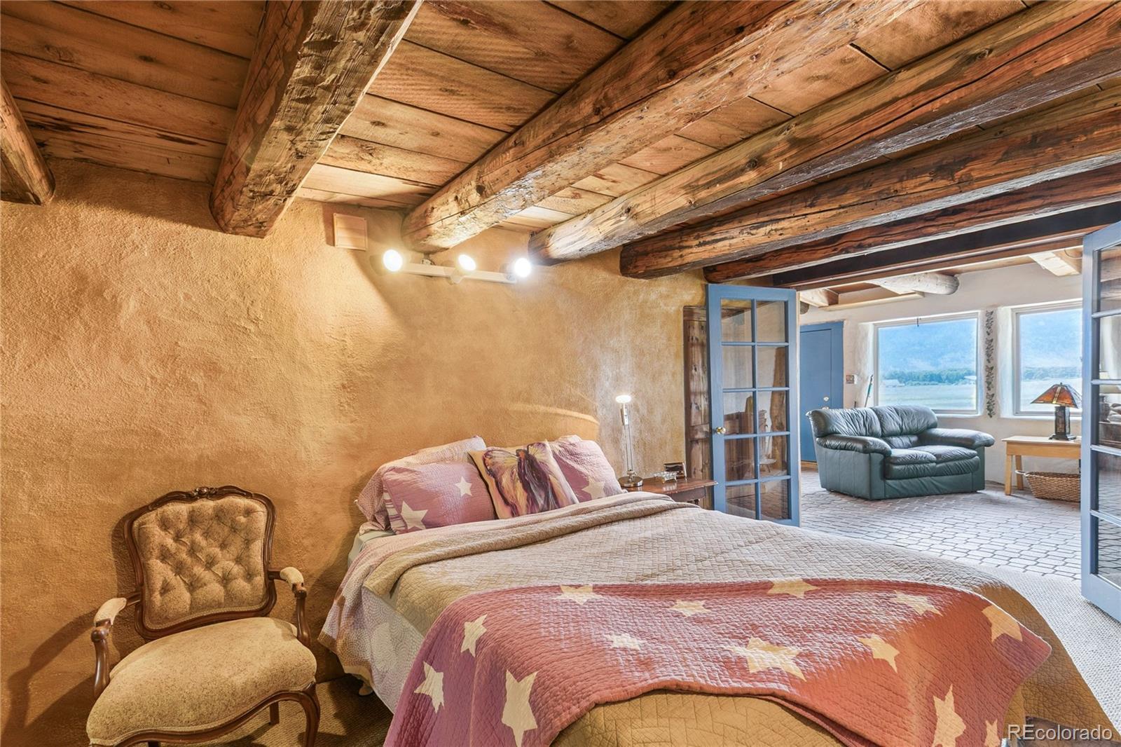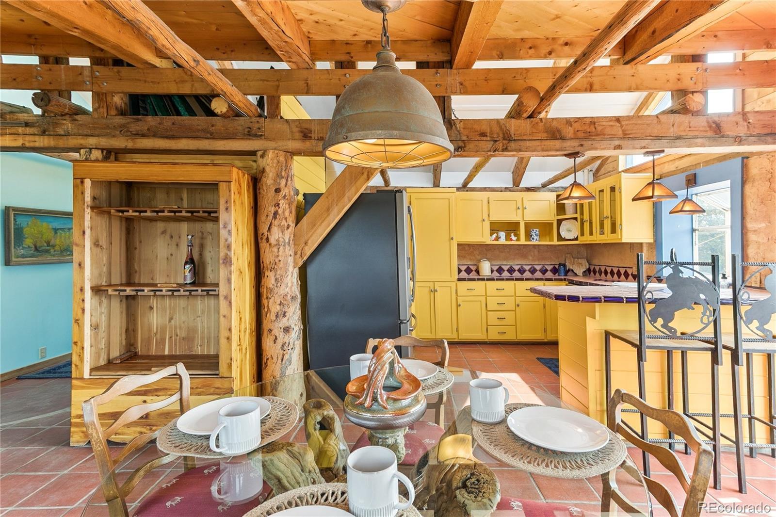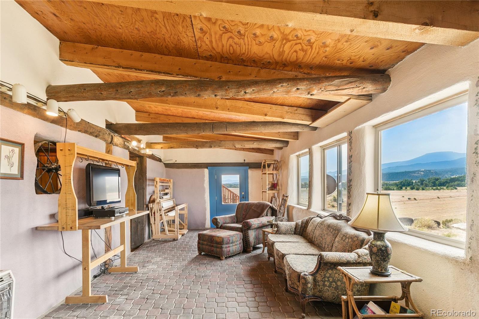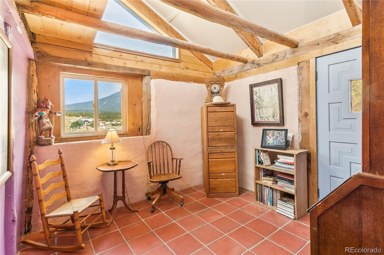 This Southwest-Style Hacienda sits on 5+ Scenic Acres with Horse Facilities and Mountain Views Discover your own slice of Southern Colorado paradise in this charming Southwest-style hacienda, perfectly situated on 5.11 acres with awe-inspiring views of the San Juan Mountains, the expansive San Luis Valley, and even a distant glimpse of the Rio Grande River. Located between South Fork and Del Norte - a short 10 minute drive to either town. This property offers both the serenity of country living and the convenience of nearby amenities. Step inside to find a thoughtfully designed home that celebrates the spirit of the region. From the custom tile floors—complete with stamped buffalo prints—to the rich wood beams reclaimed from an historic mine in Creede, every corner of this home tells a story. The open-concept living and dining areas are bathed in southern light, providing both passive solar warmth and an ever-changing mountain view that serves as the perfect backdrop for daily life. Whether you’re an outdoor enthusiast or simply love to relax in nature, you’ll appreciate the variety of outdoor living spaces—an east-facing deck for morning coffee, a covered back porch to unwind, or a sunny southern or western patio to watch the evening light fade across the valley. Bring your horses! The property features a corral and barn, ideal for equestrian use. Or dream a little differently and consider converting the barn into a guest house or short-term rental. Inside, you’ll find practical touches like a mudroom just off the foyer. Te office even has its own ¾ bathroom and could easily serve as a third bedroom or guest suite. A custom spiral staircase leads to the walk-out basement, where you’ll find a spacious fireside sunroom/living room, two private bedroom suites—each with large walk-in closets—and a laundry room. Whether you're looking for a quiet retreat, a horse property, or a base for your mountain adventures.