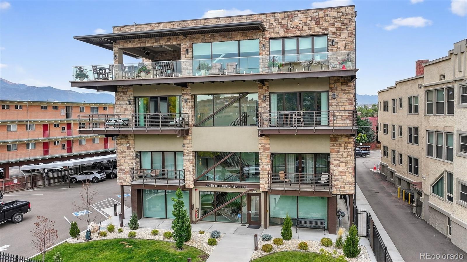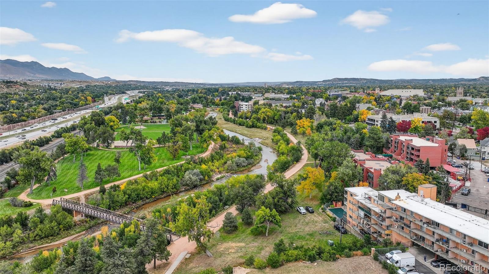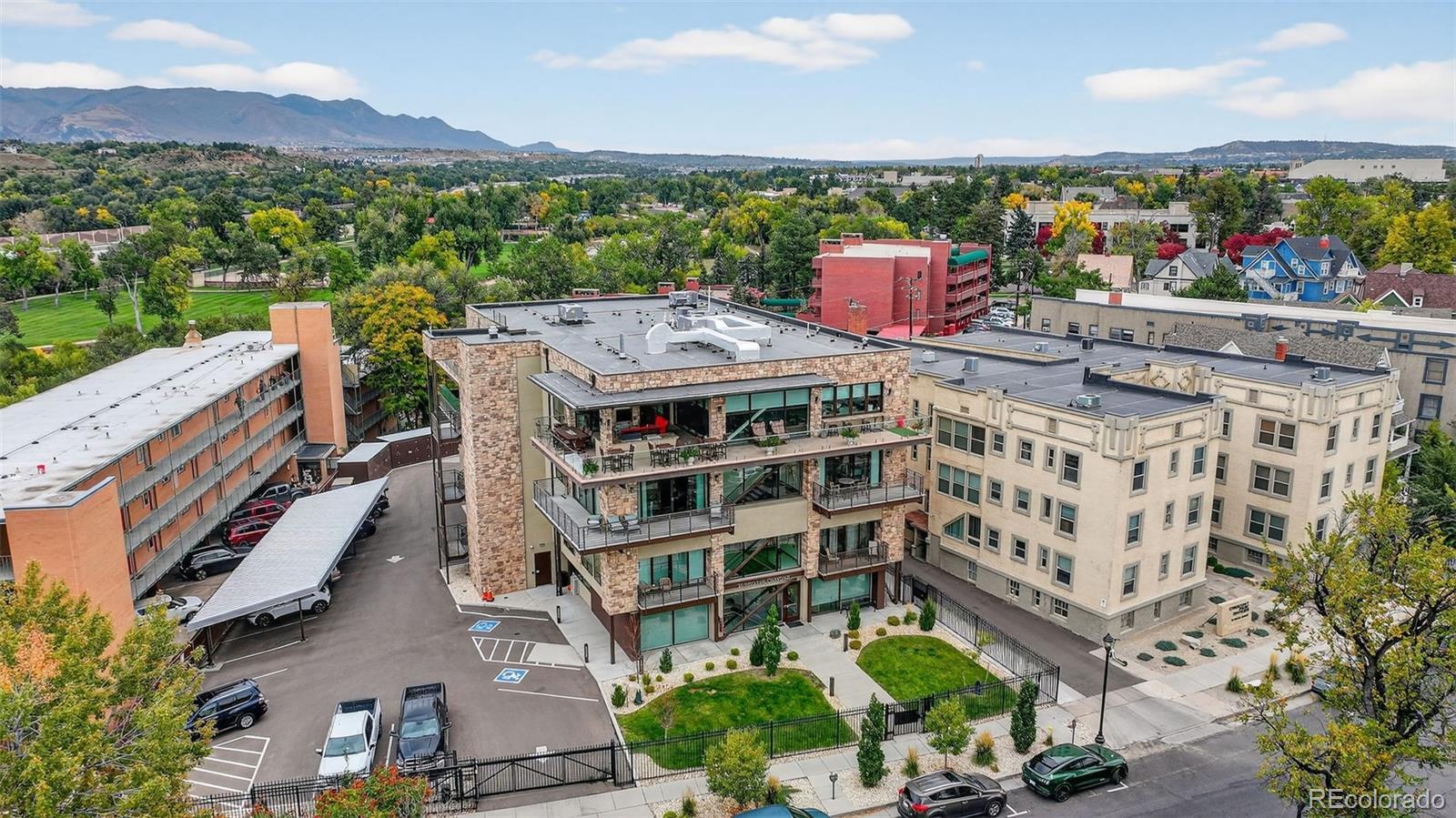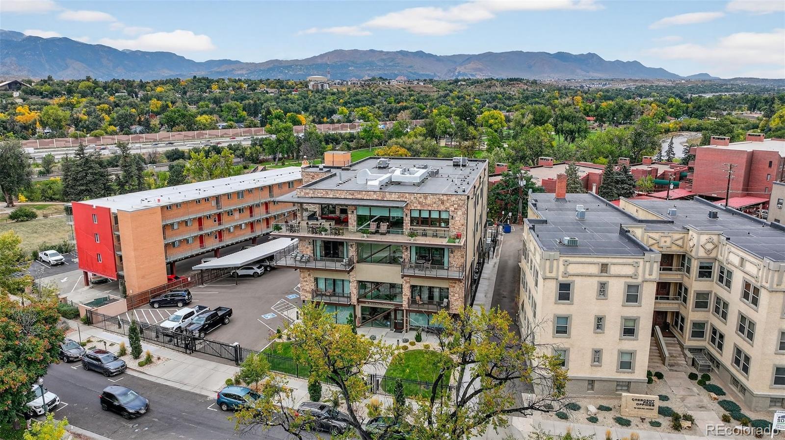 Discover urban living at its finest in this stunning studio loft/condo located in the heart of downtown Colorado Springs. Situated on the second floor within a gated community, this thoughtfully designed residence offers stylish comfort with rich hardwood floors throughout and an efficient layout ideal for modern living. The high-ceilinged living room is filled with natural light and offers direct walk-out access to an expansive covered deck, ideal space for entertaining guests or enjoying a fine summer evening. The kitchen is equipped with a center island breakfast bar, a gas range, and a pantry for additional storage, making meal prep and hosting both easy and enjoyable. The spacious private bedroom area includes an 8.8 x 4.10 walk-in closet and a well-appointed 3/4 en-suite bathroom featuring a luxurious spa shower for ultimate relaxation. Other features include a laundry room and dedicated covered parking. This vibrant community places you just steps away from Monument Valley Park, which offers a swimming pool, playground, pickleball courts, and the scenic Pikes Peak Greenway Trail. Enjoy the unbeatable walkability to downtown’s best dining, shopping, and entertainment options, all right outside your door. With quick access to I-25, commuting and travel are a breeze, making this an ideal home for professionals, students, or anyone seeking a low-maintenance lifestyle in a prime location. Whether you're looking for your first home, a low-maintenance downtown retreat, or an investment property, this move-in-ready studio offers the perfect blend of location, function, and style. Don't miss this rare opportunity to live in the heart of it all!