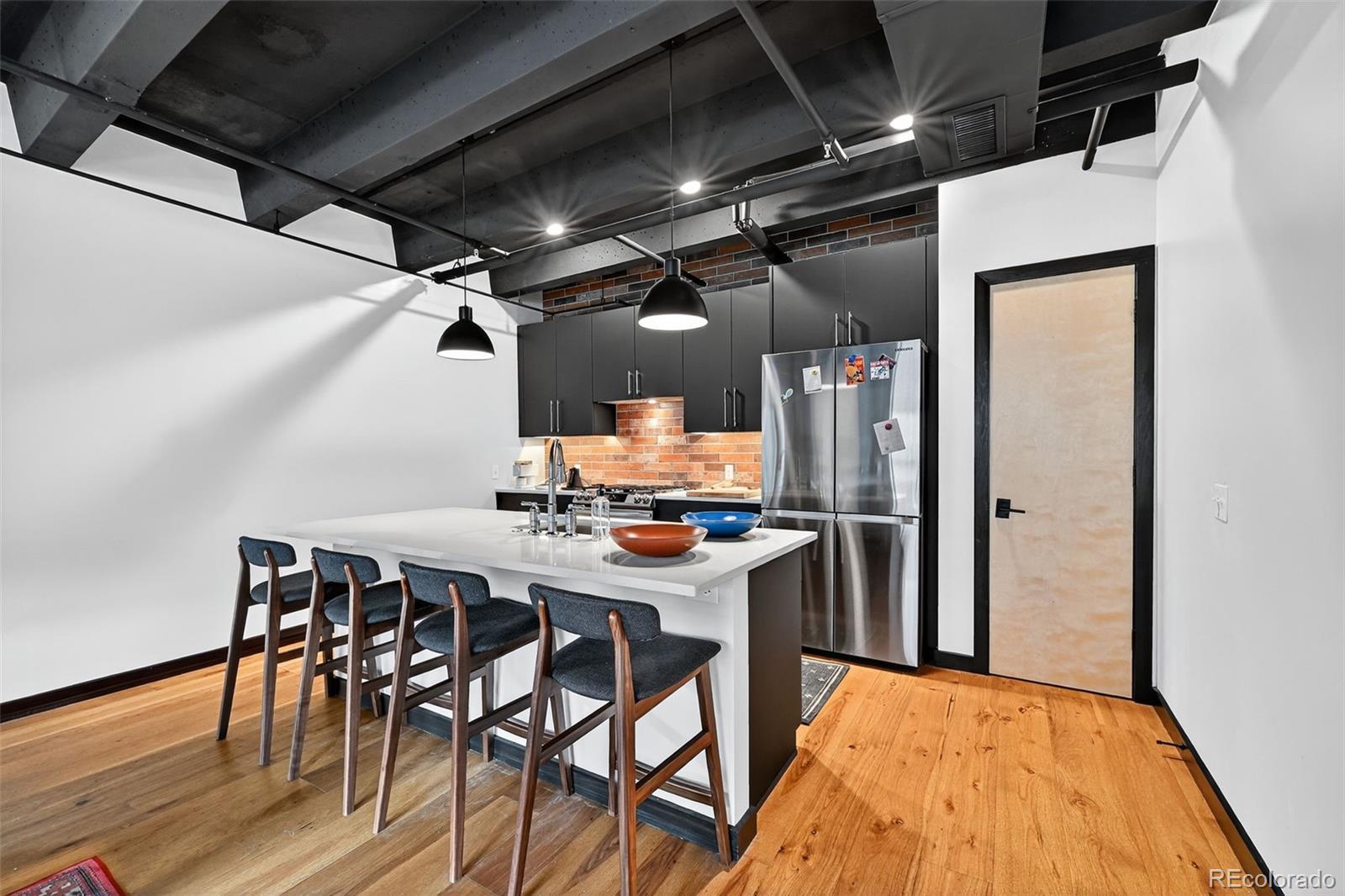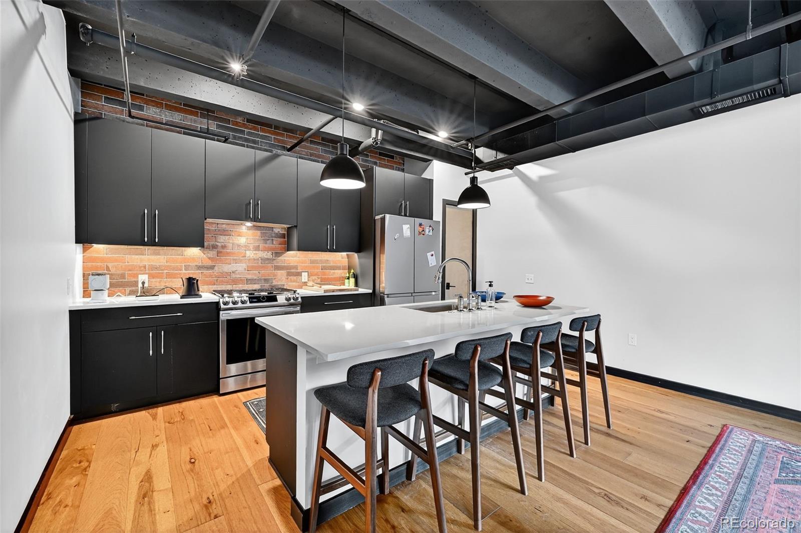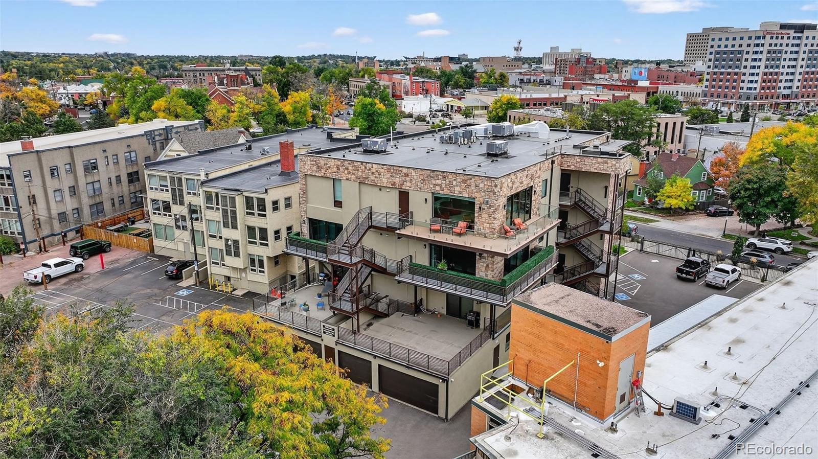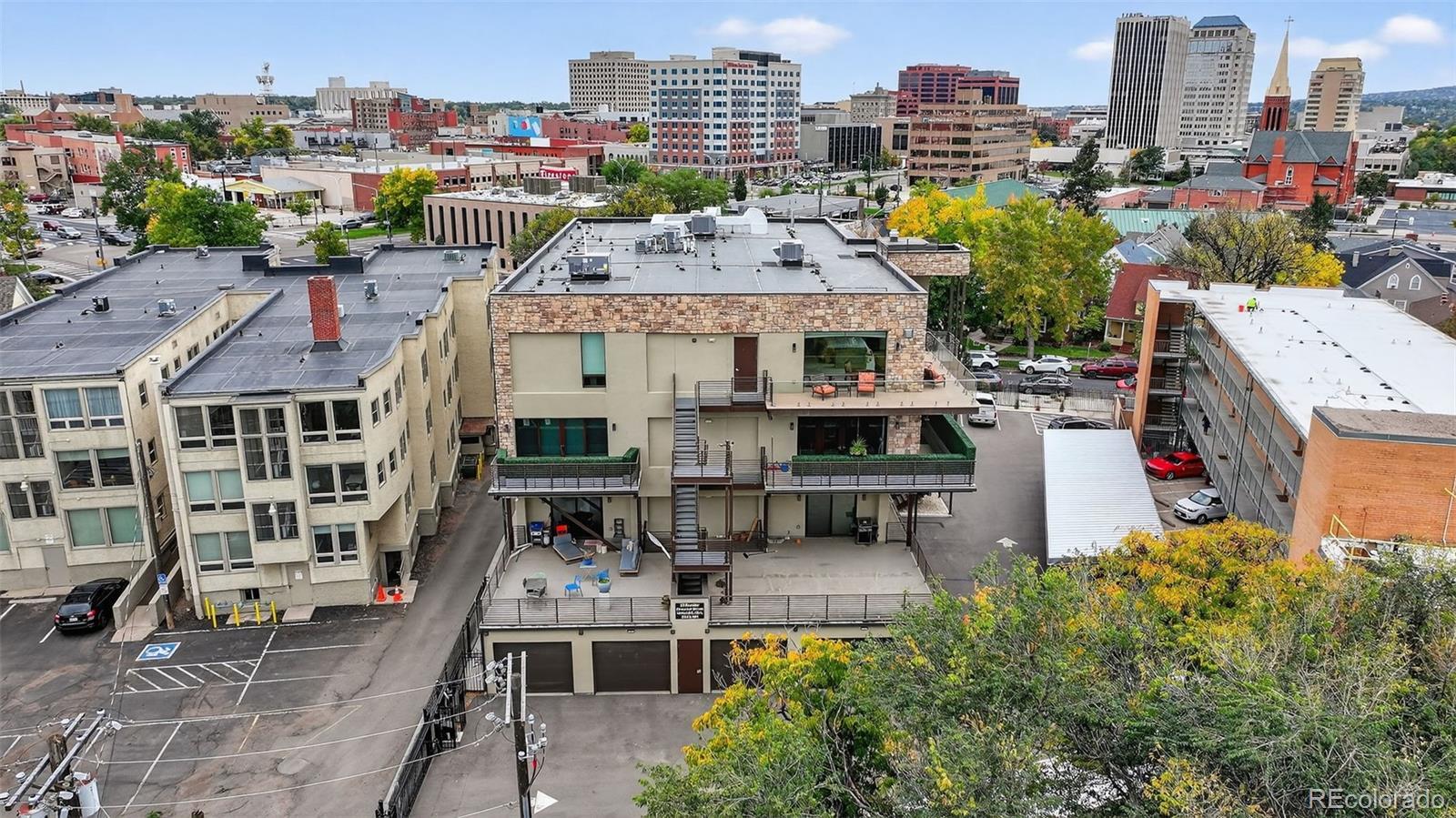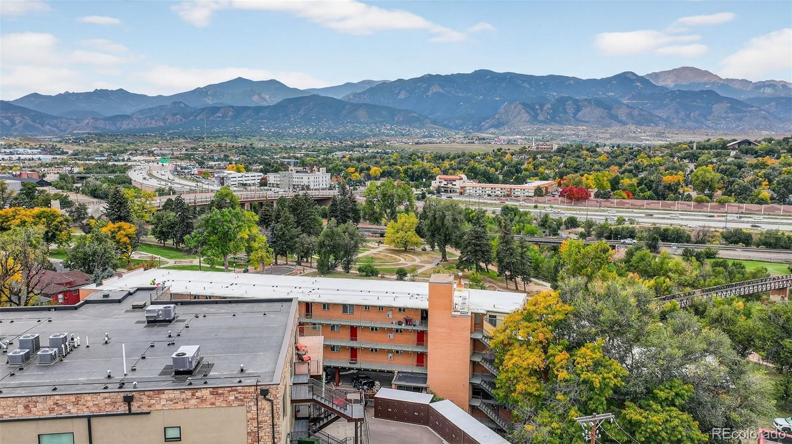 Discover urban living at its finest in this stunning studio loft/condo located in the heart of downtown Colorado Springs. Situated on the second floor within a gated community, this thoughtfully designed residence offers stylish comfort with rich hardwood floors throughout and an efficient layout ideal for modern living. The high-ceilinged living room is filled with natural light and offers direct walk-out access to an expansive covered deck, ideal space for entertaining guests or enjoying a fine summer evening. The kitchen is equipped with a center island breakfast bar, a gas range, and a pantry for additional storage, making meal prep and hosting both easy and enjoyable. The spacious private bedroom area includes an 8.8 x 4.10 walk-in closet and a well-appointed 3/4 en-suite bathroom featuring a luxurious spa shower for ultimate relaxation. Other features include a laundry room and dedicated covered parking. This vibrant community places you just steps away from Monument Valley Park, which offers a swimming pool, playground, pickleball courts, and the scenic Pikes Peak Greenway Trail. Enjoy the unbeatable walkability to downtown’s best dining, shopping, and entertainment options, all right outside your door. With quick access to I-25, commuting and travel are a breeze, making this an ideal home for professionals, students, or anyone seeking a low-maintenance lifestyle in a prime location. Whether you're looking for your first home, a low-maintenance downtown retreat, or an investment property, this move-in-ready studio offers the perfect blend of location, function, and style. Don't miss this rare opportunity to live in the heart of it all!