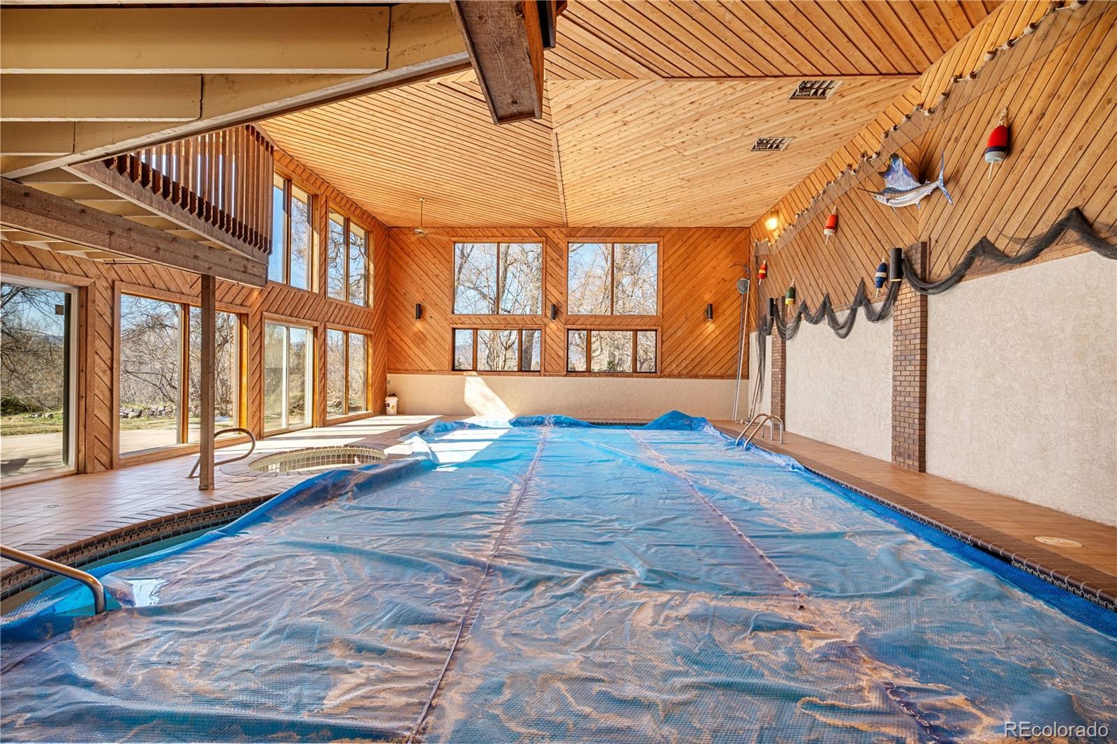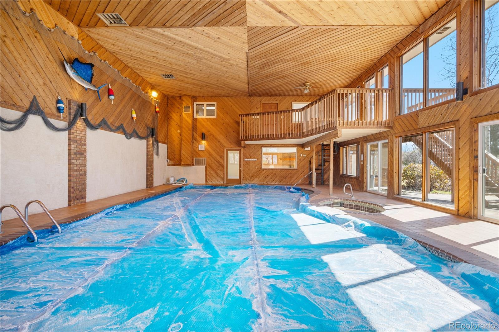 Sprawling all brick Ranch with walkout basement on 2.6 acres in central Arvada!! Custom home built with indoor swimming pool and hot tub. Includes oversized 4 car garage with individual doors and openers. Land includes 3inches of scheduled Farmers Highline Canal irrigation water. Sellers were huge gardeners and property includes mature landscaping, fruit trees, and privacy all around. Recently repainted inside and outside and interior has been recarpeted throughout the entire home. Muat see to appreciate this beautiful home on a quiet and secluded setting so hard to find in all of metro Denver. Property is on well and public sewer. Well, was recently redone with new pump etc. Plan on taking plenty time to view this gorgeous home on wonderful acreage.