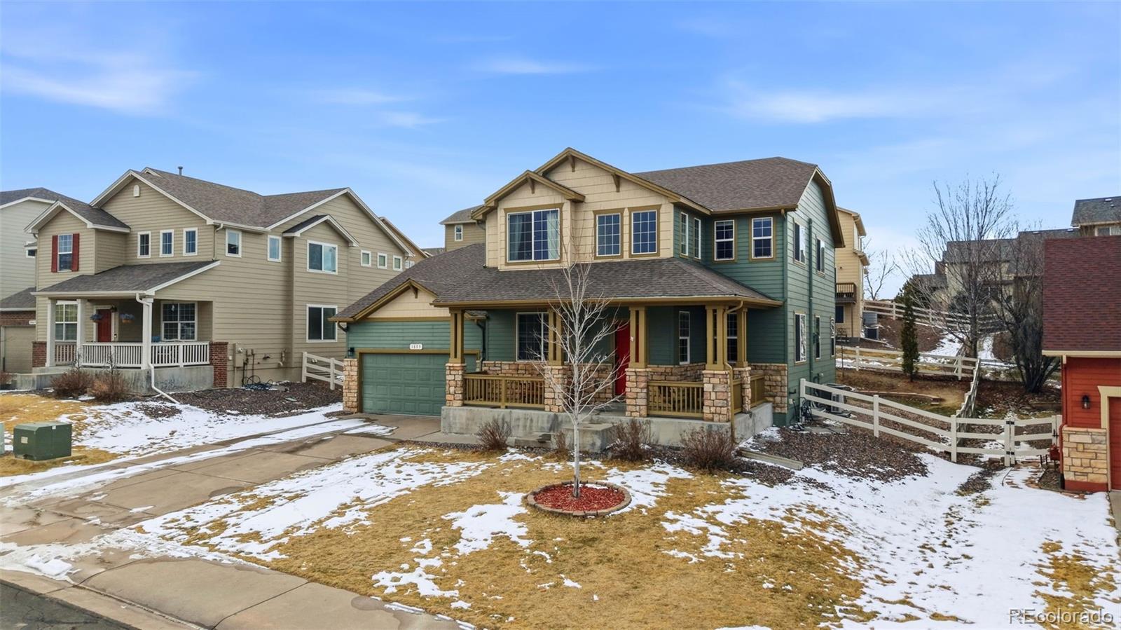 Spacious single-family home in Crystal Valley Ranch offering approximately 3,700+ finished square feet with 4 bedrooms and 3.5 baths. Open floor plan with large kitchen featuring granite countertops, center island, double oven, and ample cabinet storage. Main-floor study with French doors provides flexible use. Family room opens to the backyard and deck. Upstairs includes a generous loft area and primary suite. Finished lower level offers additional living space and storage. Home is functional but needs TLC and cosmetic updates, presenting an excellent opportunity to add value and personalize. Three-car tandem garage and fully fenced yard. Community amenities include pool, fitness center, parks, and walking trails. Convenient access to shopping, dining, Festival Park, Philip S. Miller Park, and I-25.
