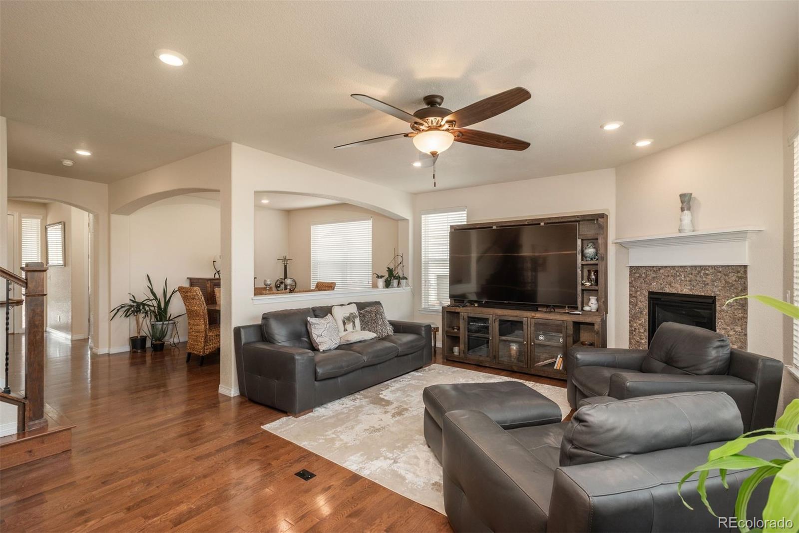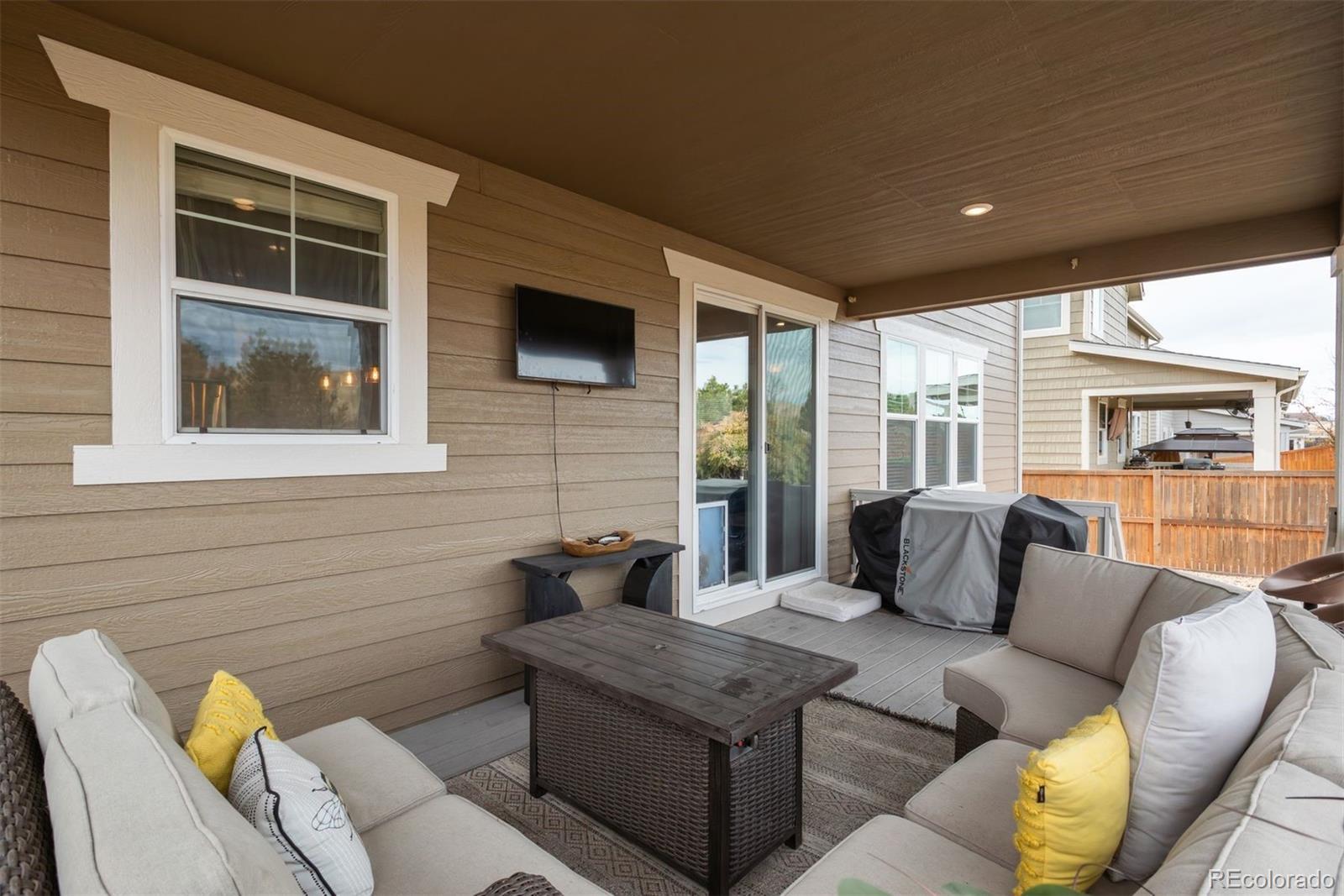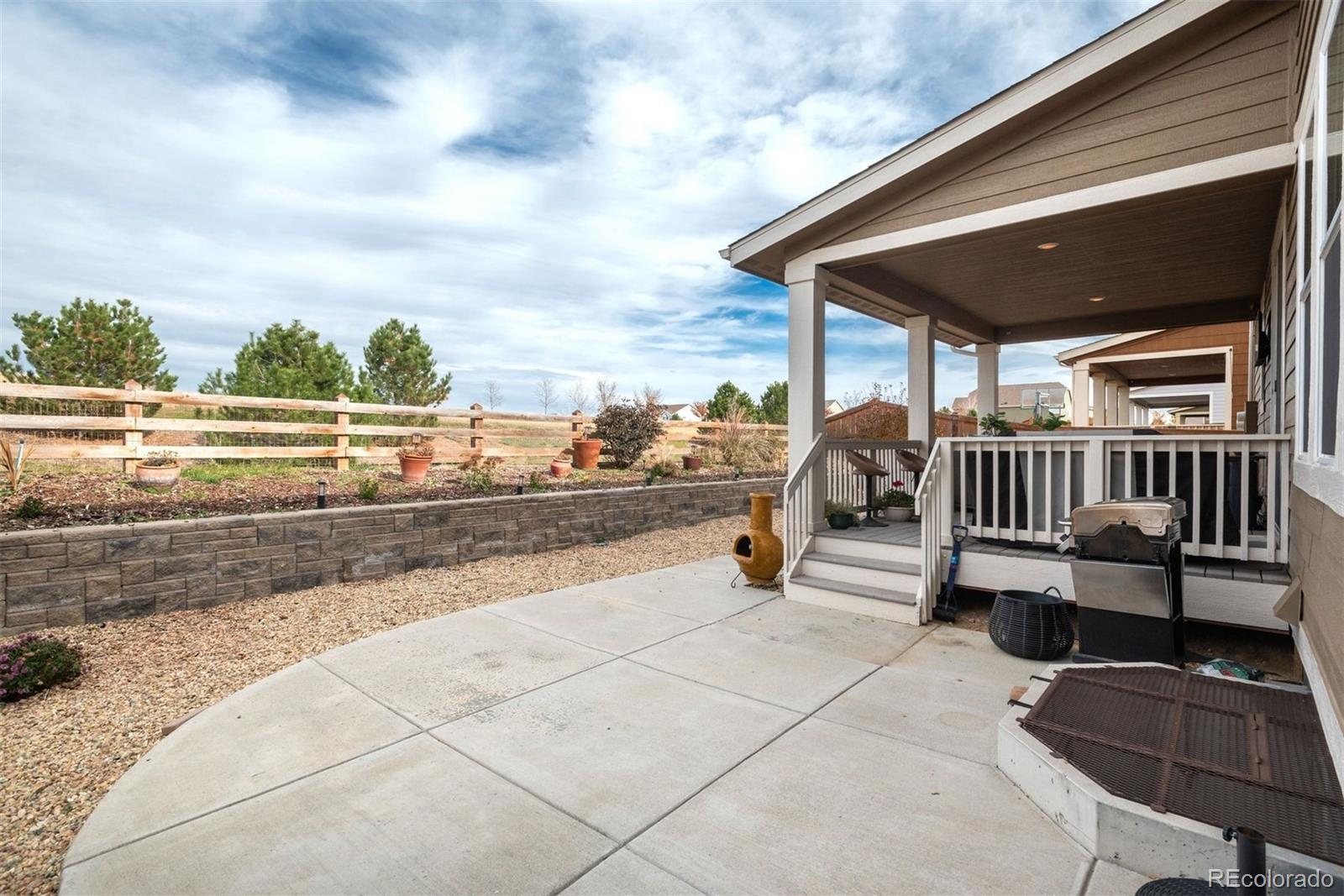 Welcome to this stunning 5-bedroom, 4-bath home in highly desirable Lewis Pointe! As you enter this pristine home, take notice of the main floor hardwood flooring with views out the back to open space/Lewis Pointe Park- No neighbors behind you! The main floor features a gourmet kitchen with granite countertops, upgraded cabinetry, gas cook top, double ovens, a contemporary backsplash, and a generous sized pantry! The seamless flow from the kitchen to the open family room with gas fireplace will be sure to please! Enjoy direct access from the eat-in kitchen space to the private backyard with incredible covered deck backing to open space! A formal dining area, a main floor bedroom, and a newly remodeled 3/4 bath complete the main floor! Head on upstairs to 4-bedrooms, a loft, and the laundry room! The current owner recently updated the stairs, loft, and hallway with hardwood floors! The primary bedroom features an incredible view of the open space, a luxurious 5-piece ensuite bathroom, and a walk-in closet! Of the remaining 3-bedrooms upstairs, one of the bedrooms features an en-suite full sized bathroom, while the other 2-bedrooms access a full-sized jack-n-jill bathroom! The open and bright loft area provides additional space for a home office or extra family room! The 3-car garage features a work place with bench, cabinets, and professionally finished floor coating! The home's recent exterior paint along with the quaint front porch provides amazing curb appeal! The solar panels require no purchase or lease cost! This home feeds into the highly rated Adams 12 Five Star School District and is conveniently located to shopping and dining at nearby Orchard Town Center and the Denver Premium Outlets, as well as a quick commute to I-25 and E-470! Call Listing Broker with any questions and to schedule your private showing today!