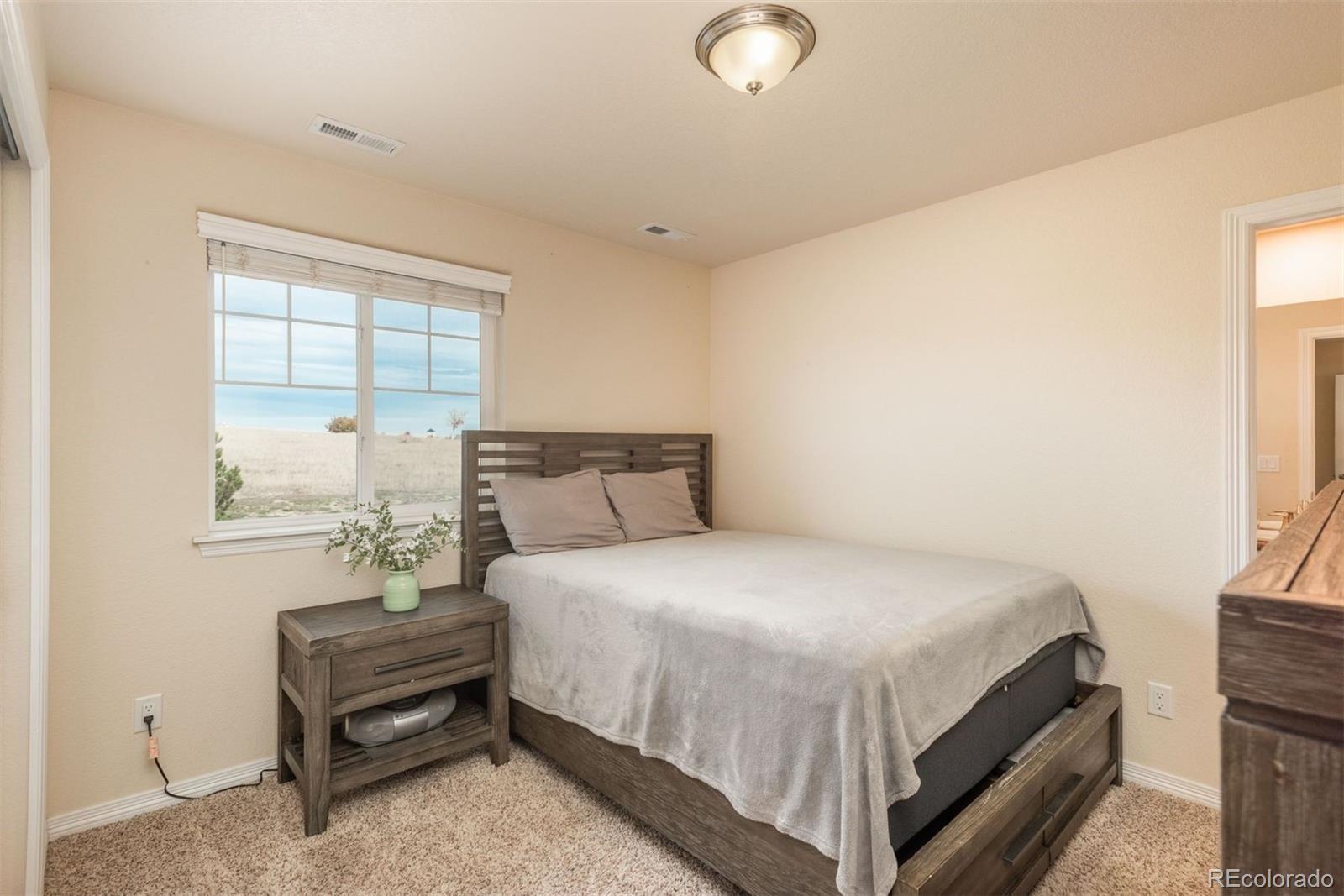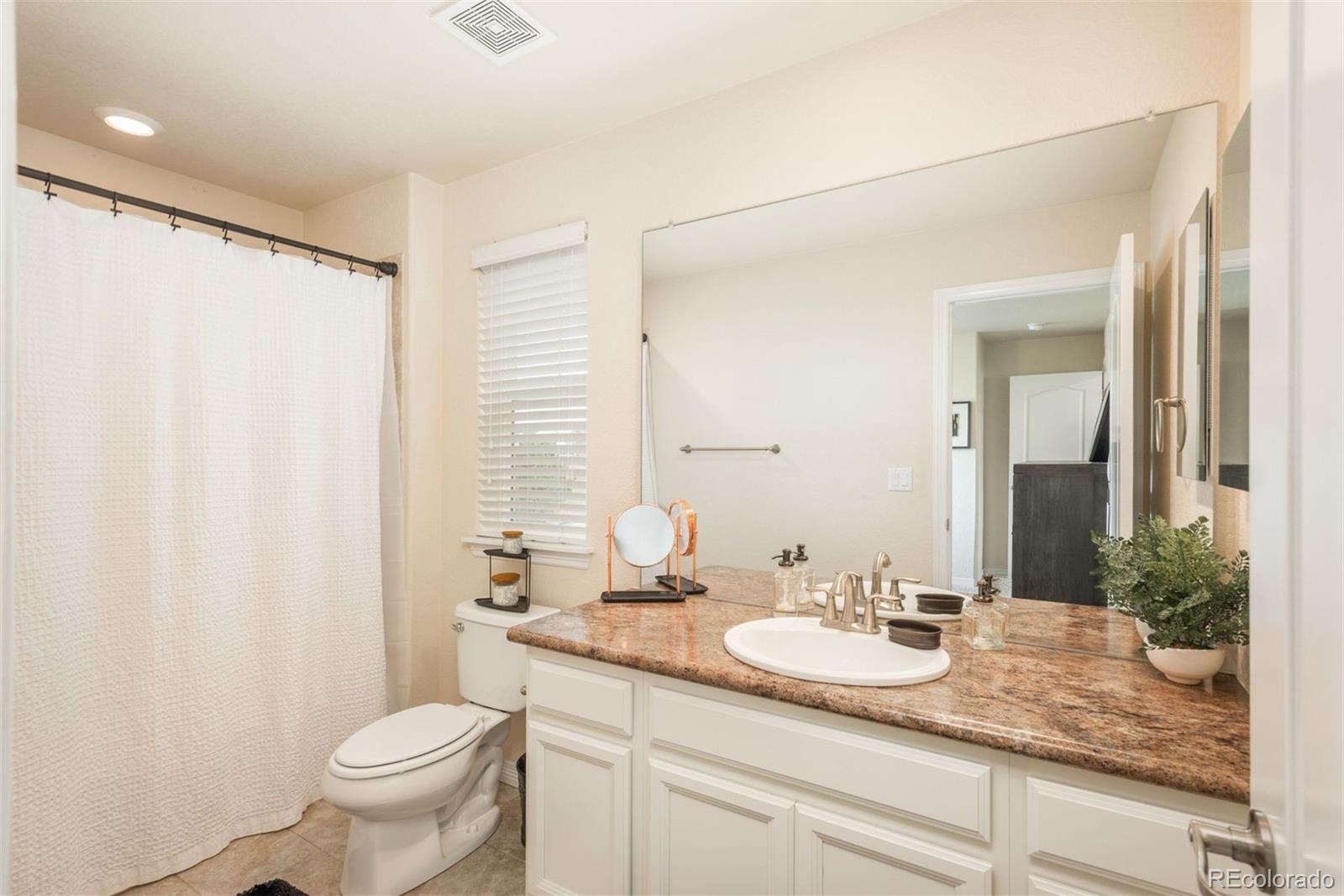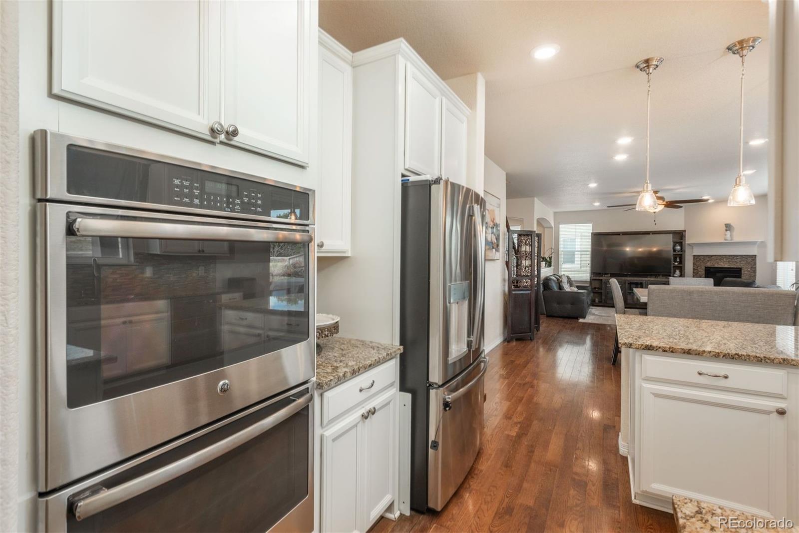 Welcome to this stunning 5-bedroom, 4-bath home in highly desirable Lewis Pointe! As you enter this pristine home, take notice of the main floor hardwood flooring with views out the back to open space/Lewis Pointe Park- No neighbors behind you! The main floor features a gourmet kitchen with granite countertops, upgraded cabinetry, gas cook top, double ovens, a contemporary backsplash, and a generous sized pantry! The seamless flow from the kitchen to the open family room with gas fireplace will be sure to please! Enjoy direct access from the eat-in kitchen space to the private backyard with incredible covered deck backing to open space! A formal dining area, a main floor bedroom, and a newly remodeled 3/4 bath complete the main floor! Head on upstairs to 4-bedrooms, a loft, and the laundry room! The current owner recently updated the stairs, loft, and hallway with hardwood floors! The primary bedroom features an incredible view of the open space, a luxurious 5-piece ensuite bathroom, and a walk-in closet! Of the remaining 3-bedrooms upstairs, one of the bedrooms features an en-suite full sized bathroom, while the other 2-bedrooms access a full-sized jack-n-jill bathroom! The open and bright loft area provides additional space for a home office or extra family room! The 3-car garage features a work place with bench, cabinets, and professionally finished floor coating! The home's recent exterior paint along with the quaint front porch provides amazing curb appeal! The solar panels require no purchase or lease cost! This home feeds into the highly rated Adams 12 Five Star School District and is conveniently located to shopping and dining at nearby Orchard Town Center and the Denver Premium Outlets, as well as a quick commute to I-25 and E-470! Call Listing Broker with any questions and to schedule your private showing today!