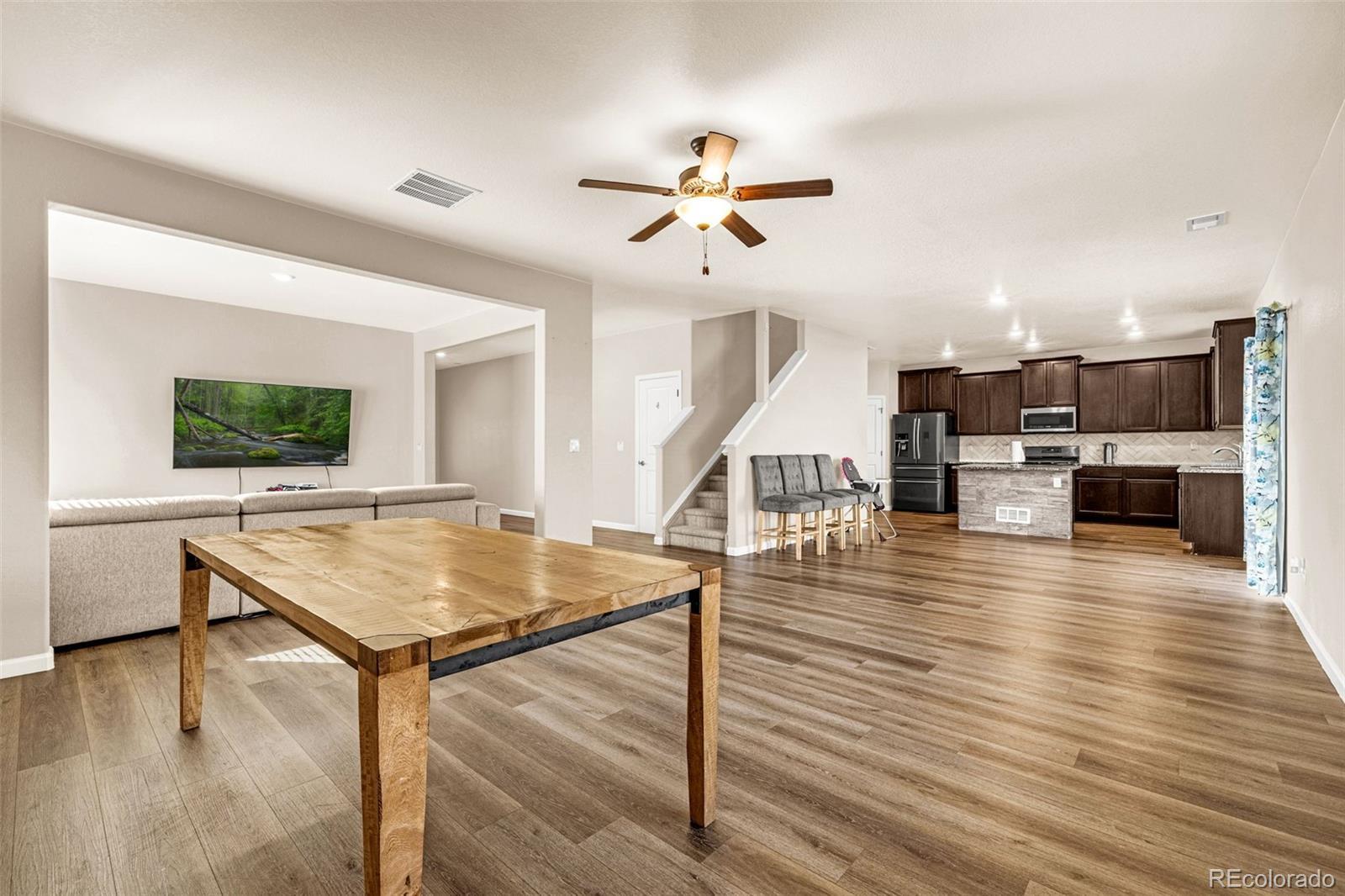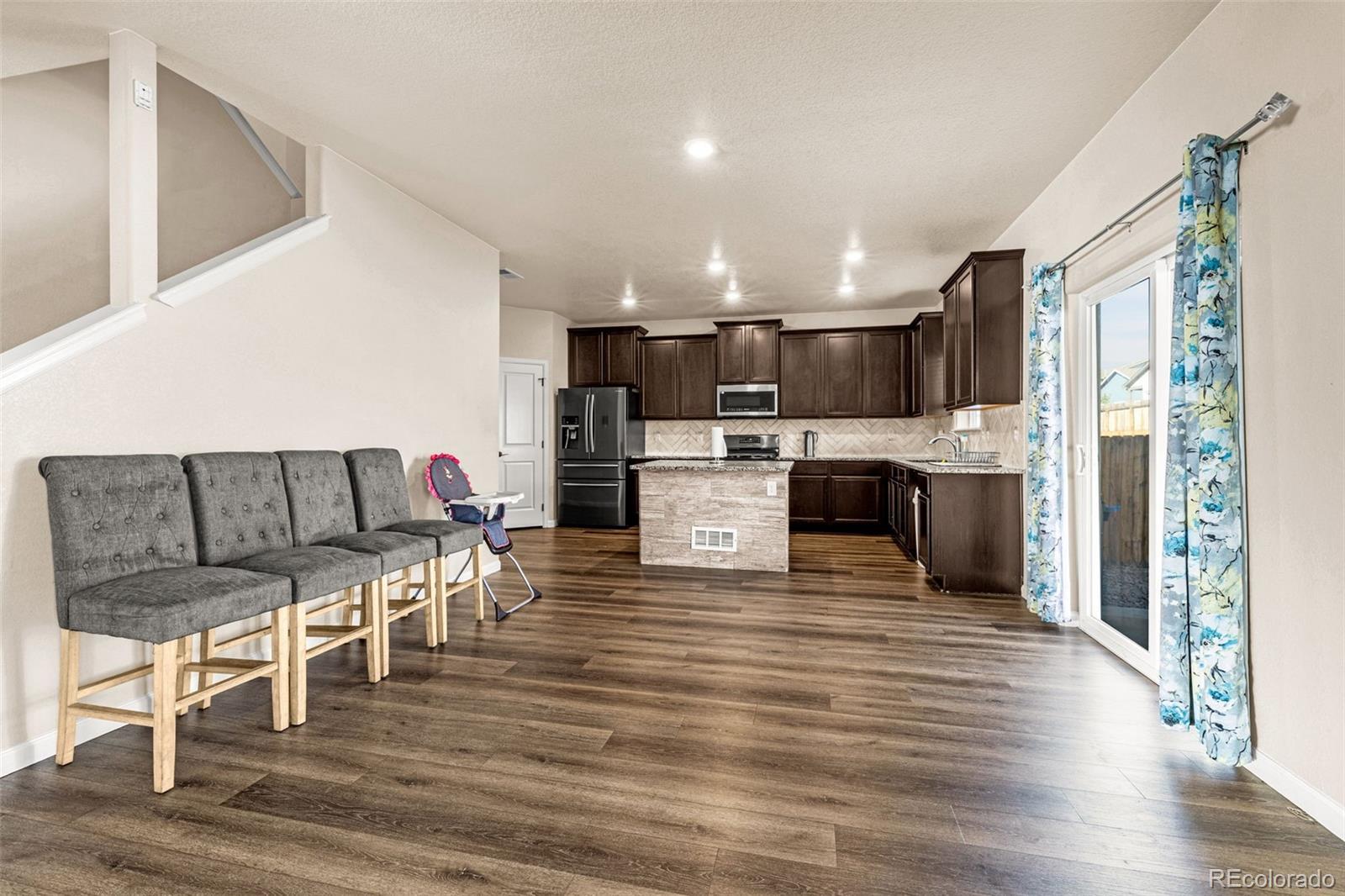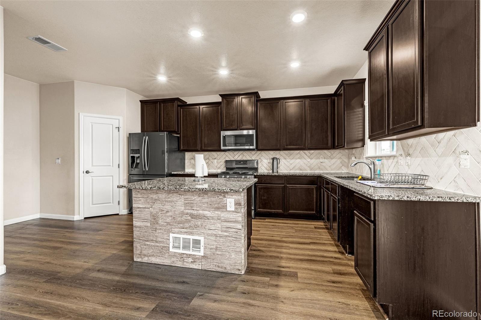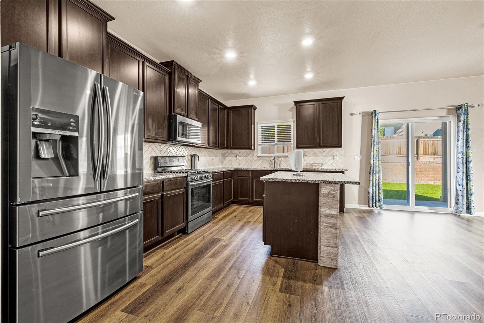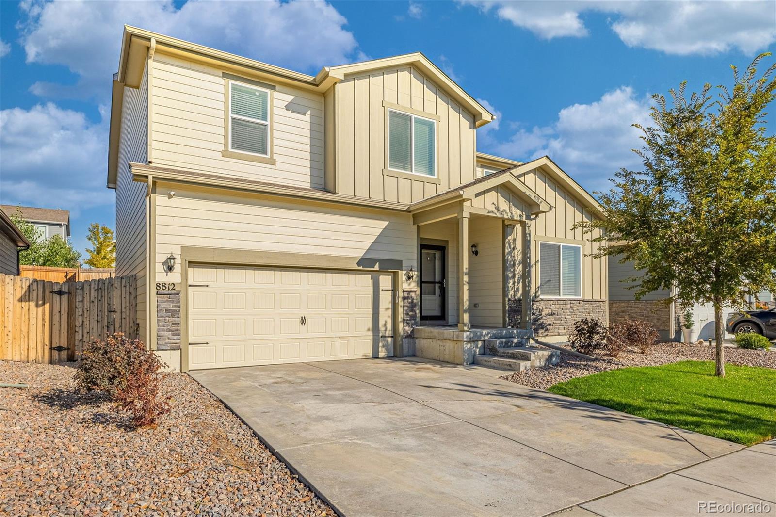 Discover this spacious and stunning 5-bedroom home located in a high-growth area of Commerce City, CO, offering unparalleled convenience and modern features. Perfectly situated near Denver International Airport (DIA), this is an ideal location for commuters or anyone looking to capitalize on a rapidly expanding community filled with new restaurants, stores, and shops. Home Features You'll Love: Modern Kitchen: The heart of the home boasts sleek granite countertops, a stylish ceramic backsplash, a functional kitchen island, and a gas stove. All major kitchen appliances are only two years old. Generous Space: Enjoy a spacious layout with 8-foot ceilings throughout the main level. The home features five bedrooms, with four bedrooms and a versatile loft located upstairs, offering plenty of room for family, guests, or a home office. Premium Touches: High-quality, comfortable carpet covers the stairs and all bedrooms. Outdoor Living: Relax or entertain in your private backyard, featuring a covered porch and lush, green grass landscaping in both the front and back yards. Security & Peace of Mind: The property is equipped with an ADT alarm system including exterior cameras for enhanced security. Don't miss the chance to own a beautiful home in a location poised for continued expansion and appreciation. Experience the perfect blend of suburban comfort and quick access to everything Denver has to offer! Schedule your showing today!
