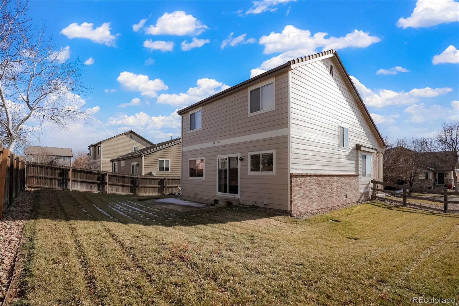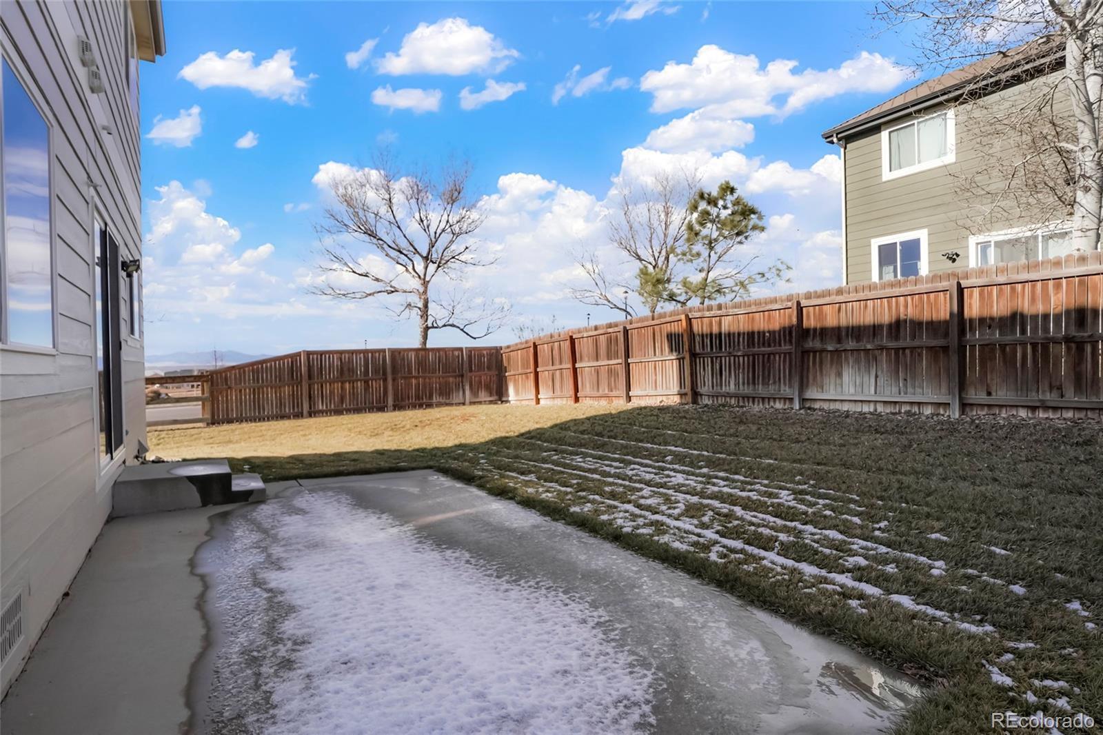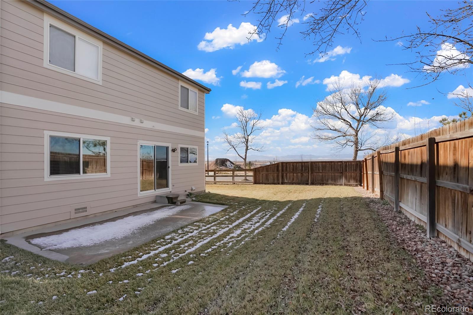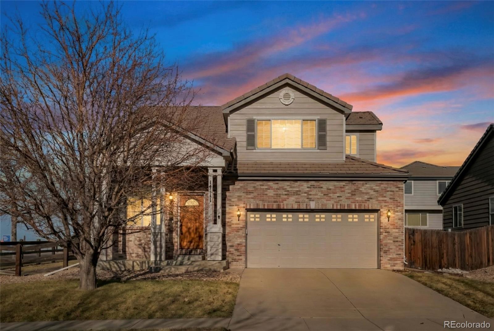 Nicely maintained home on a desirable corner lot in Foxton Village, offering beautiful mountain and city views. The inviting living room features a two-story ceiling and luxury vinyl flooring, flowing into an open kitchen with 42" cabinets topped with crown molding, a new stainless steel refrigerator, and an eating space with access to the backyard patio—perfect for outdoor dining. The spacious family room includes an inset entertainment niche and brand-new carpet. Upstairs, a large open loft with built-ins provides an ideal office, play area, or potential 3rd bedroom conversion. The primary suite offers an ensuite bath and walk-in closet, while a secondary bedroom, full bath, and convenient laundry with washer and dryer included complete the upper level. Additional highlights include a new water heater, tile roof, and freshly painted exterior. Fantastic location close to shopping, dining, Barr Lake State Park, Rocky Mountain Arsenal Wildlife Refuge, and Second Creek Open Space. ________________________________________