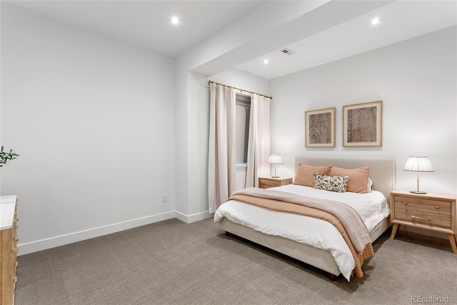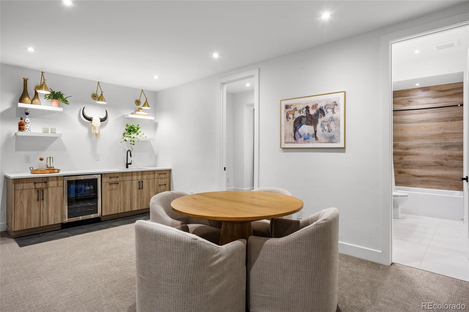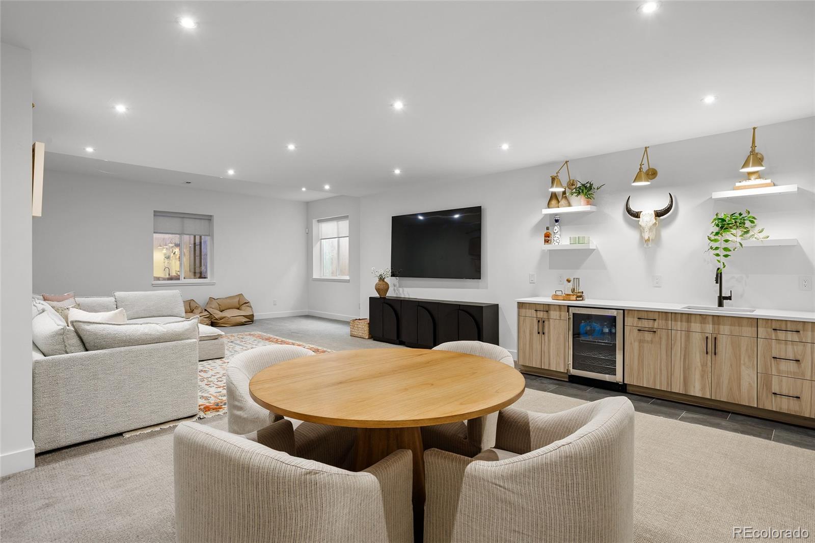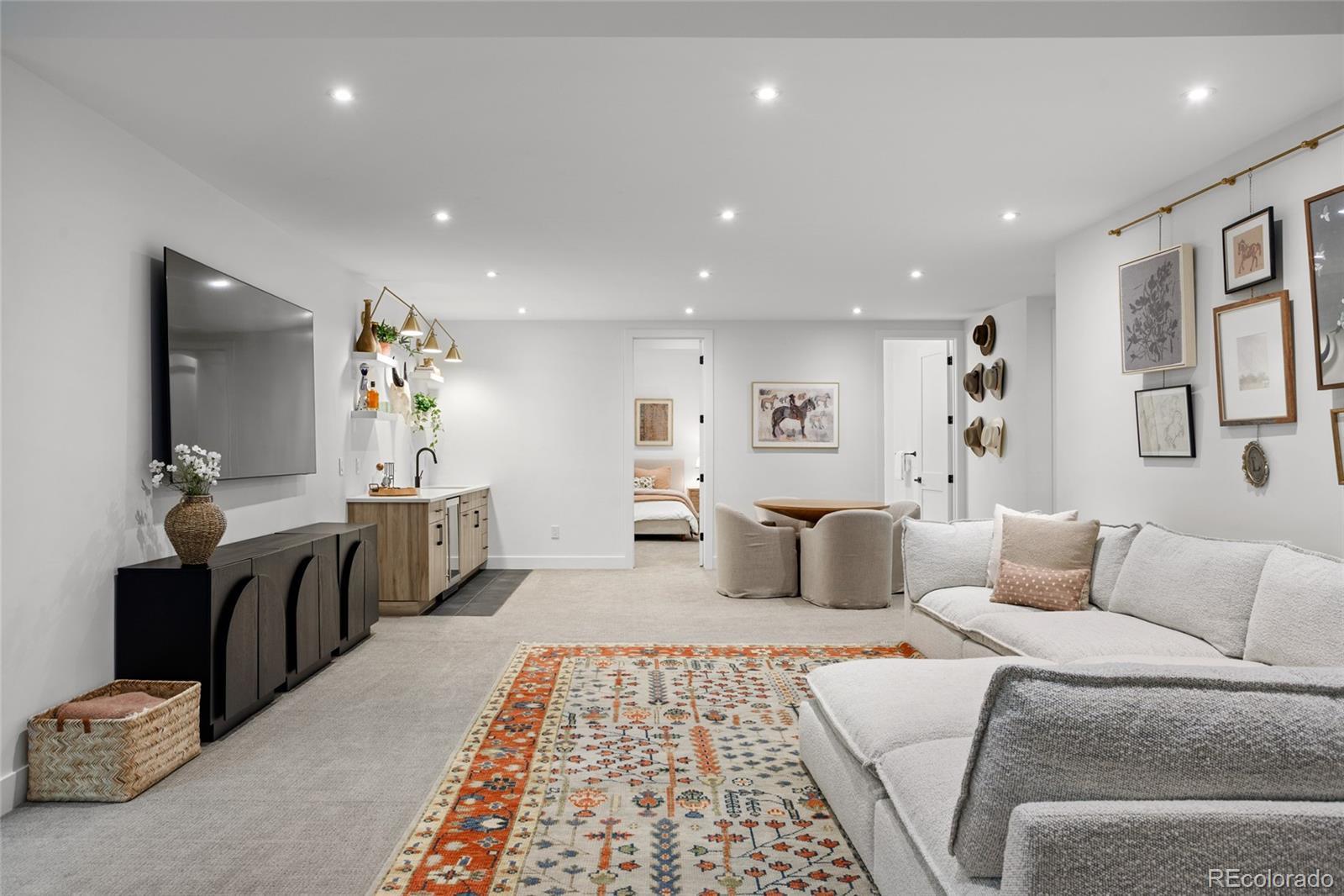 Stunning 2023-built home ideally positioned in the highly sought-after Wellshire neighborhood, offering close proximity to shopping, dining, parks, and more. This thoughtfully designed residence showcases meticulous attention to detail with a clean, modern design. The main level features a private office that can also function as a main-floor bedroom. The chef’s kitchen is a true centerpiece, complete with high-end appliances, a walk-in pantry, a large center island and a breakfast nook. Perfect for everyday living and entertaining. The spacious family room easily accommodates large gatherings. Folding glass doors lead you to the large, cantilevered covered patio, overlooking the immaculate, low maintenance turf back yard. Additional highlights include a generous mudroom with a built-in dog wash for both convenience and functionality. Upstairs, you’ll find three ensuite bedrooms, including the impressive Primary Suite with an elegant five-piece bath with heated floors and a large walk-in closet. At the center of the second floor there is a versatile flex space which offers the opportunity to add an additional bedroom or keep it as a study or play area. The finished lower level boasts an expansive recreation room with a wet bar, a large guest suite, a well-appointed full bathroom, and a playroom with attached kid sized fort. Plenty of storage for all of your gear. A rare blend of modern design, smart layout, and an unbeatable location—this home truly has it all.