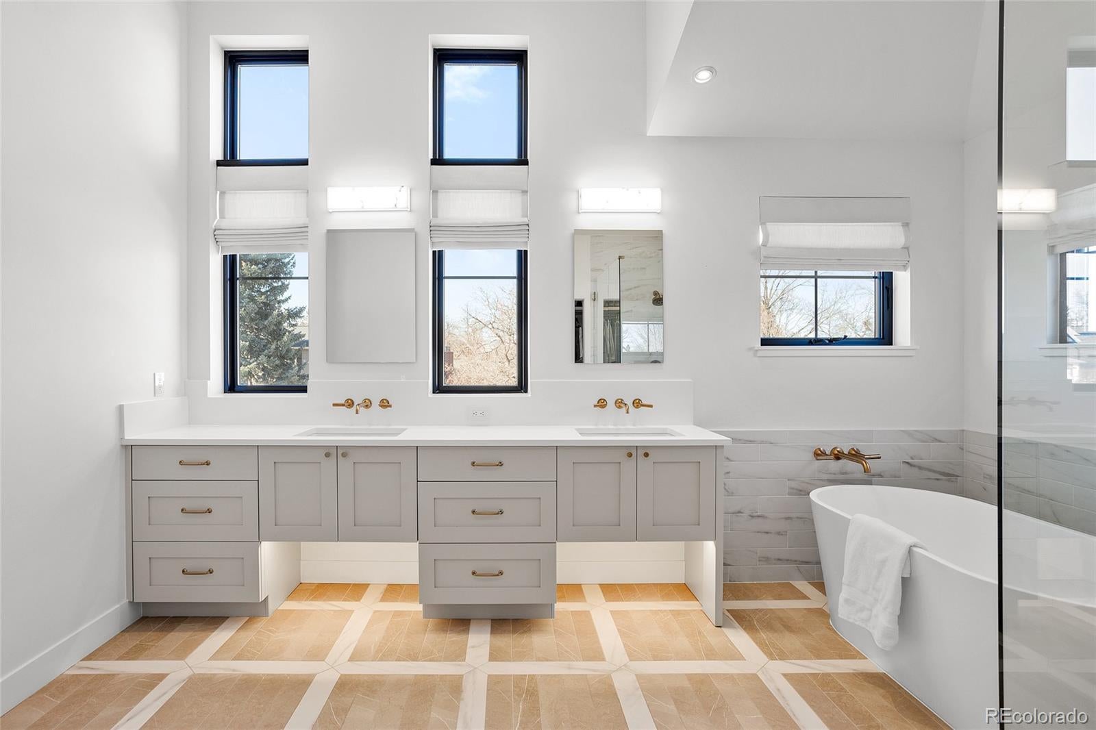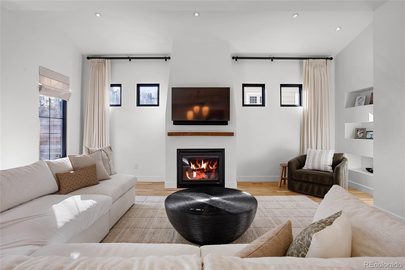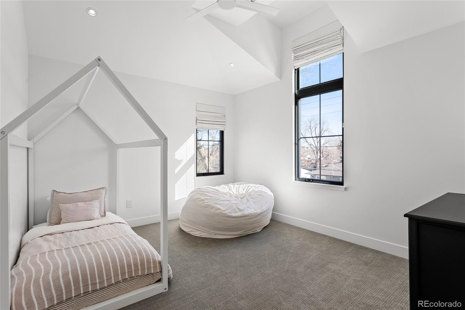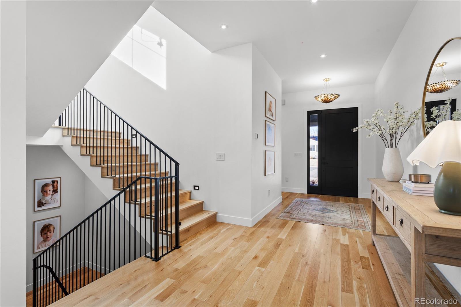 Stunning 2023-built home ideally positioned in the highly sought-after Wellshire neighborhood, offering close proximity to shopping, dining, parks, and more. This thoughtfully designed residence showcases meticulous attention to detail with a clean, modern design. The main level features a private office that can also function as a main-floor bedroom. The chef’s kitchen is a true centerpiece, complete with high-end appliances, a walk-in pantry, a large center island and a breakfast nook. Perfect for everyday living and entertaining. The spacious family room easily accommodates large gatherings. Folding glass doors lead you to the large, cantilevered covered patio, overlooking the immaculate, low maintenance turf back yard. Additional highlights include a generous mudroom with a built-in dog wash for both convenience and functionality. Upstairs, you’ll find three ensuite bedrooms, including the impressive Primary Suite with an elegant five-piece bath with heated floors and a large walk-in closet. At the center of the second floor there is a versatile flex space which offers the opportunity to add an additional bedroom or keep it as a study or play area. The finished lower level boasts an expansive recreation room with a wet bar, a large guest suite, a well-appointed full bathroom, and a playroom with attached kid sized fort. Plenty of storage for all of your gear. A rare blend of modern design, smart layout, and an unbeatable location—this home truly has it all.