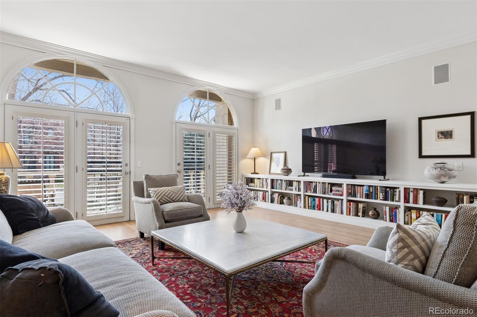 Experience effortless, single-level living in the heart of Cherry Creek North. This 2,709-square-foot condo combines timeless architecture with modern livability. One of only four residences in an all-brick and stone Georgian Revival building, it offers unmatched privacy, craftsmanship, and convenience just minutes from downtown Denver. The home’s transitional design features 10-foot ceilings, smooth-coat walls, crown moulding, and newly refinished hardwood floors (2022). Expansive south- and east-facing windows fill the open living and dining areas with natural light. Built-in bookcases, a gas fireplace, and seamless flow to the covered patio create an inviting space for both everyday living and entertaining. The patio includes a natural-gas hookup for grilling, a water line for plants, and ample room for dining and lounging. The well-appointed kitchen features granite counters, a Sub-Zero refrigerator, GE double ovens, and a spacious island with storage and seating. The primary suite opens to the patio and includes dual closets and a five-piece bath with large soaking tub, dual sinks, and custom linen cabinetry. A comfortable guest suite with ensuite bath offers privacy for visitors. A rare three parking spaces with a heated driveway into the garage, private to homeowners, and oversized private storage room distinguishes this property from most Cherry Creek condos. Professionally managed grounds, secured entry, and a quiet residential setting offer a lock-and-leave lifestyle within walking distance of Cherry Creek’s 300+ locally owned boutiques, 65 restaurants, wellness studios, and the 45-mile Cherry Creek Trail. This refined, move-in-ready residence combines the best of Denver’s most coveted urban neighborhood with the ease of true one-level living.
