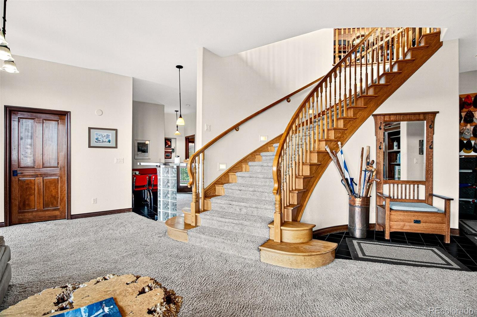 Experience Mountain Luxury in Crystal Park! Welcome to this exceptional custom-built mountain retreat, perfectly perched to capture breathtaking 360° views of the city skyline and surrounding peaks. This walk out Rancher offers 3 bedrooms, 3 bathrooms, and an oversized 3-car garage—plus over 2,000 sq. ft. of expansive decks designed to embrace the outdoors at every turn. Step inside through the wraparound covered deck, where a sun-filled living room awaits with rich wood flooring, a striking gas fireplace framed by a custom stone mantle, and soaring windows that flood the space with natural light. The main level is anchored by the luxurious primary suite, a true sanctuary featuring a private deck with a hot tub, a spacious walk-in closet, and a spa-inspired 5-piece with a soaking tub, dual sinks, and a custom-tiled shower. The opposite wing is designed for comfort and entertaining, offering a cozy family room with fireplace, a formal dining area, a kitchen with breakfast nook and pantry, plus a dedicated office with walkout access to the back patio and tranquil koi pond. On the lower level, discover an entertainer’s dream with a recreation room and wet bar, a game area, and a home theater—all seamlessly connected and opening to the covered lower deck. On this spacious deck, you’ll find a cedar sauna, the perfect place to relax while enjoying the spectacular mountain views. As well, Two additional bedrooms, including one with its own fireplace and private deck access, provide ample space for family or guests. Additional features include a full bath with standing shower and tub, abundant storage, and a whole-home GENERAC generator with dedicated propane tank for peace of mind. From the custom spiral staircase to the sprawling meadow below, this property blends luxury mountain living with warmth, comfort, and unmatched vistas. Owners would consider selling the home partially furnished. Come watch the aspens change and experience the beauty of Crystal Park for yourself!