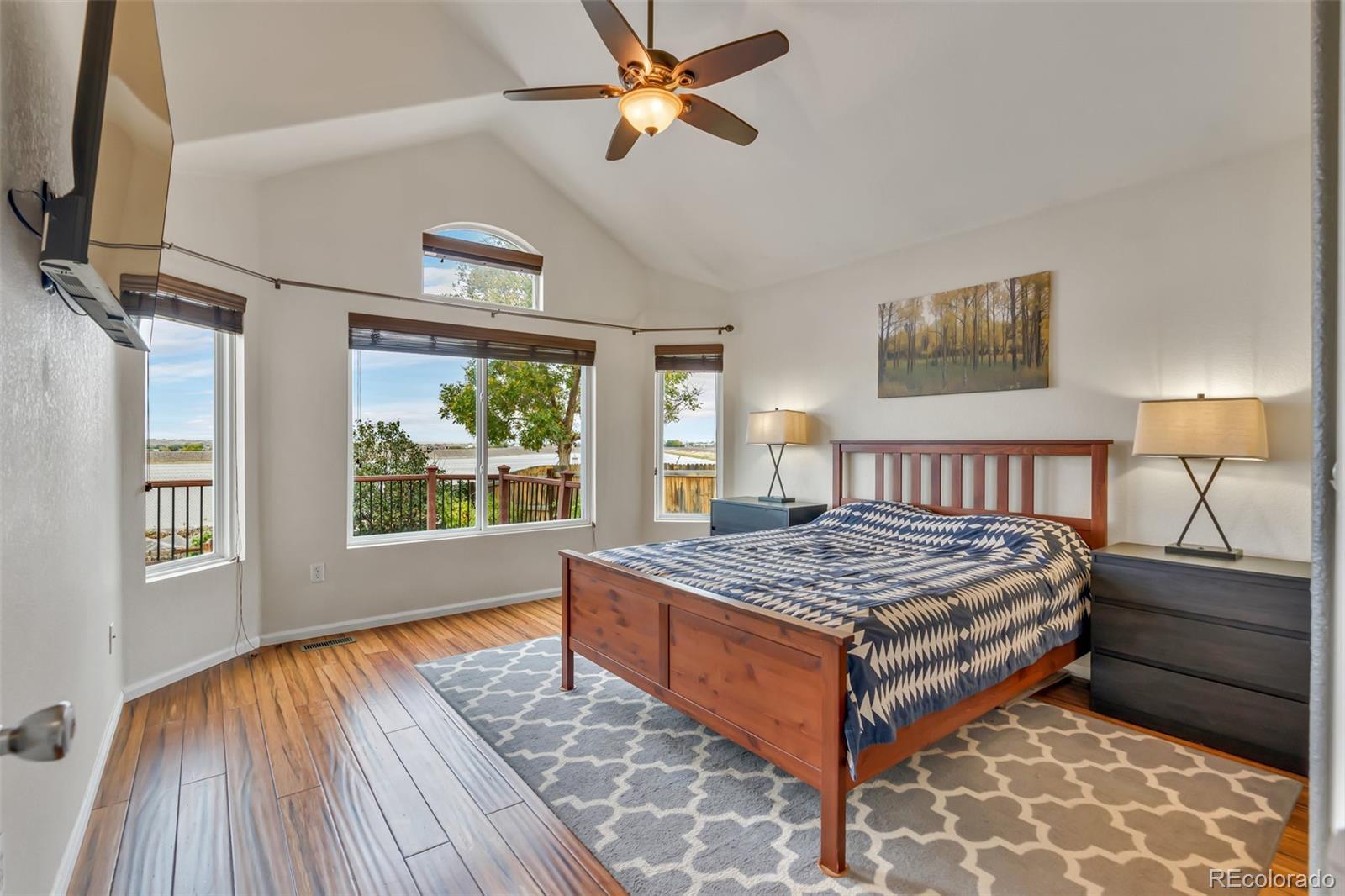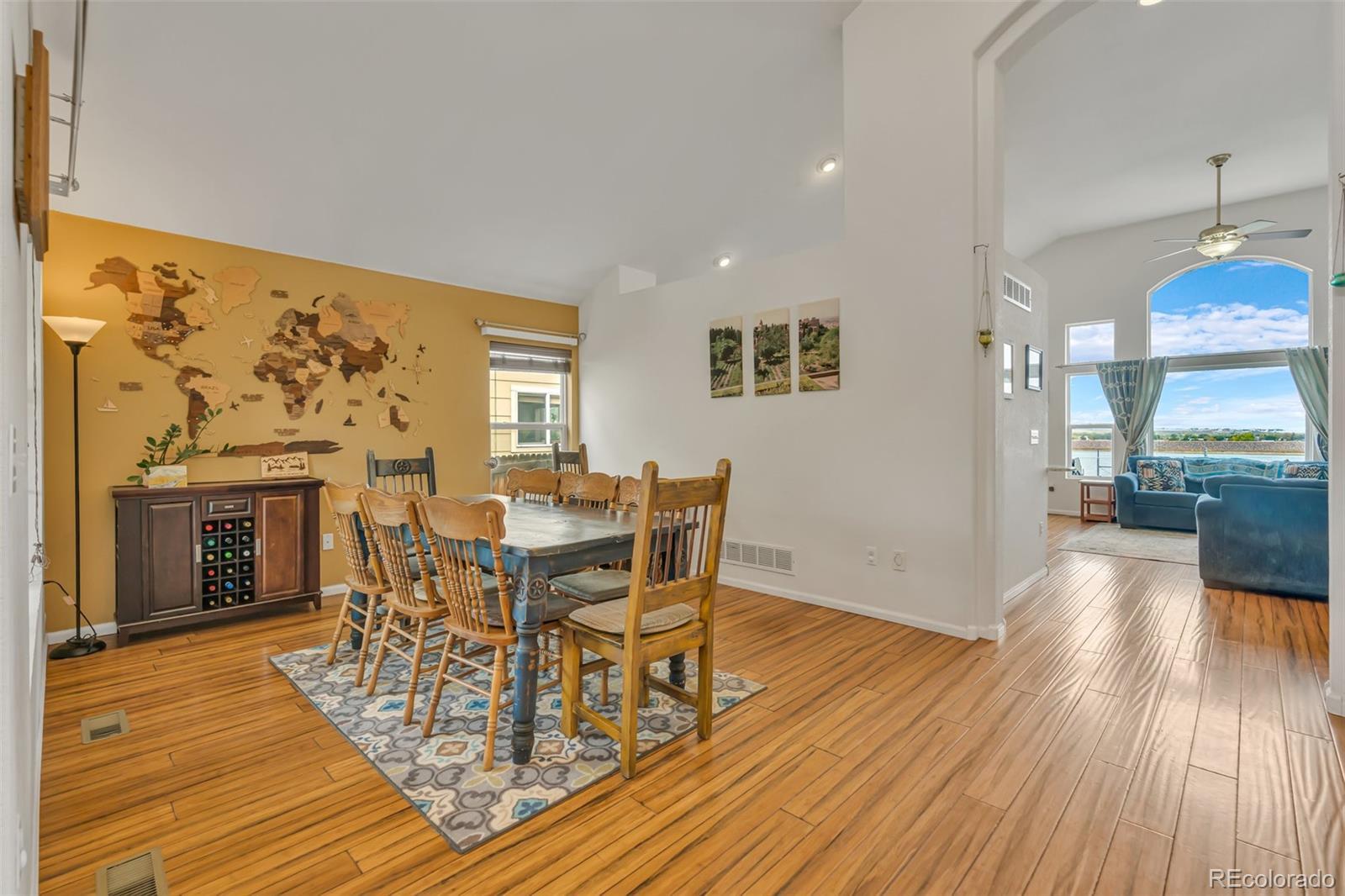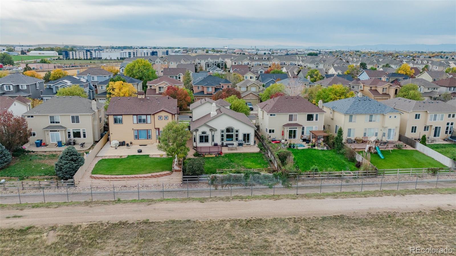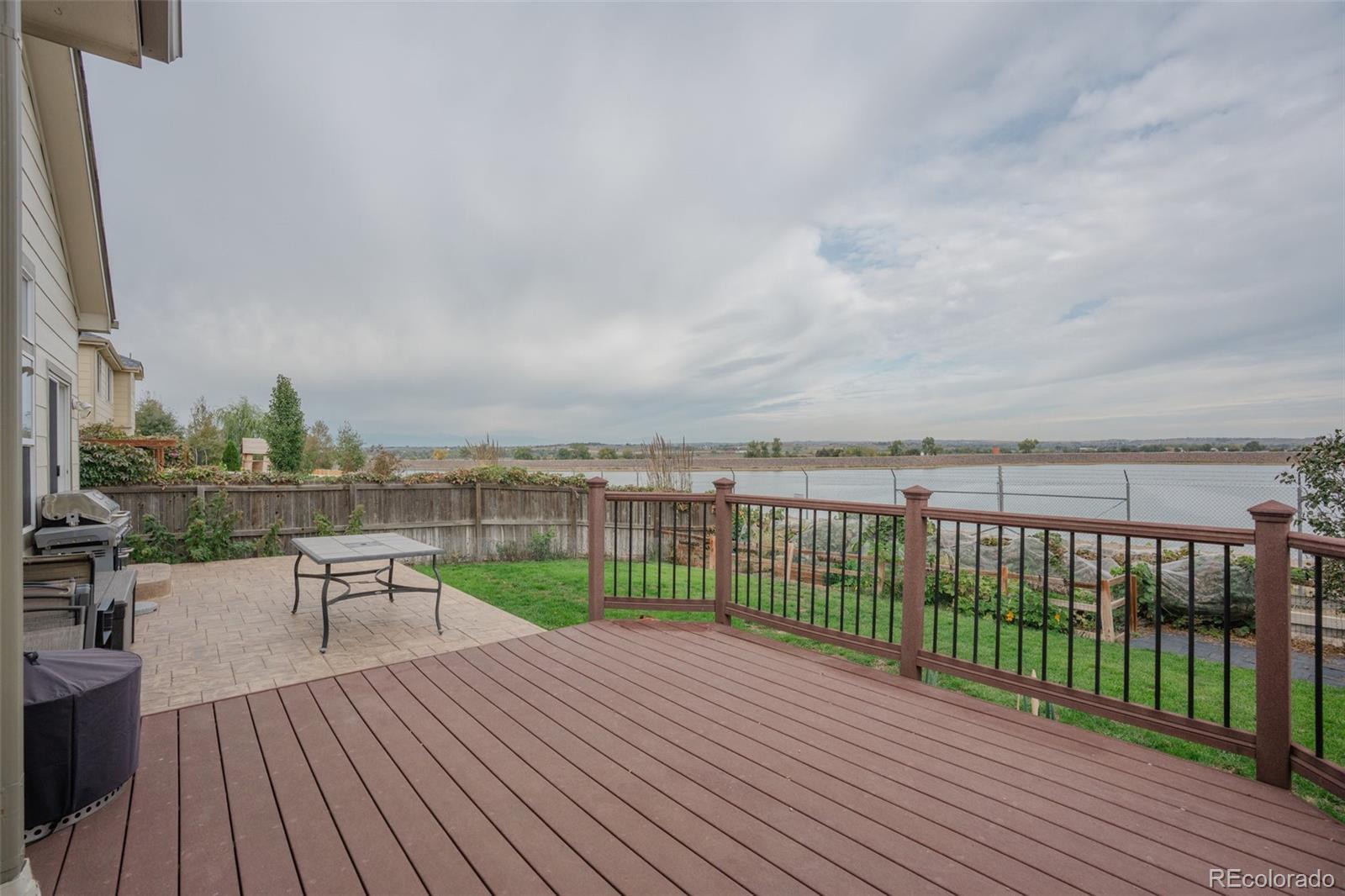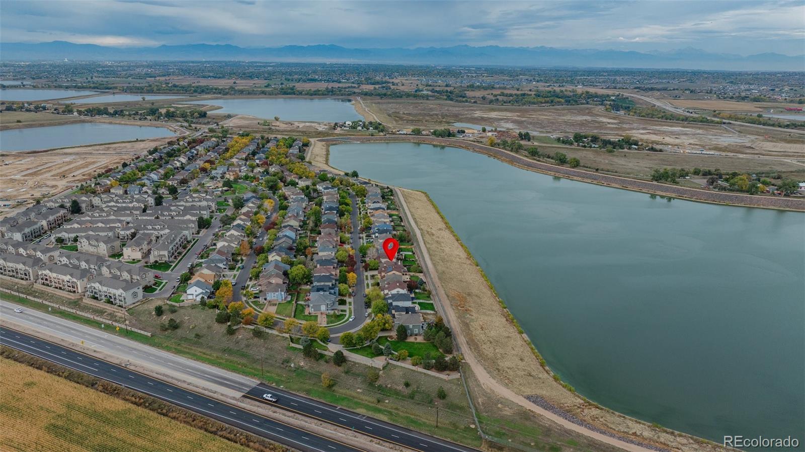 Beautiful 4-bedroom, 4-bath home in desirable Dunes Park backing to a serene retention pond with stunning mountain views. Open floorplan with main-level master suite featuring bamboo and natural stone floors. Updated kitchen with granite countertops, marble backsplash, and newer dishwasher. Finished basement includes a family room, full bath, and bedroom with walk-in closet—ideal for guests or multigenerational living. Enjoy outdoor living on the large backyard deck, covered front porch, and a garden with mature grapes and tomatoes. Two-car garage with extended bay for added utility. Recent updates include new exterior paint, AC, water heater, and windows. Neighborhood amenities include pool and park. Convenient location just 20 minutes from Downtown Denver with easy access to shopping, dining, and major routes.