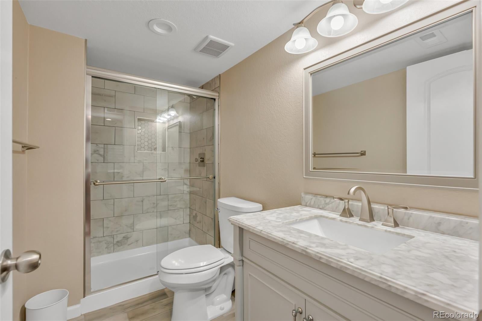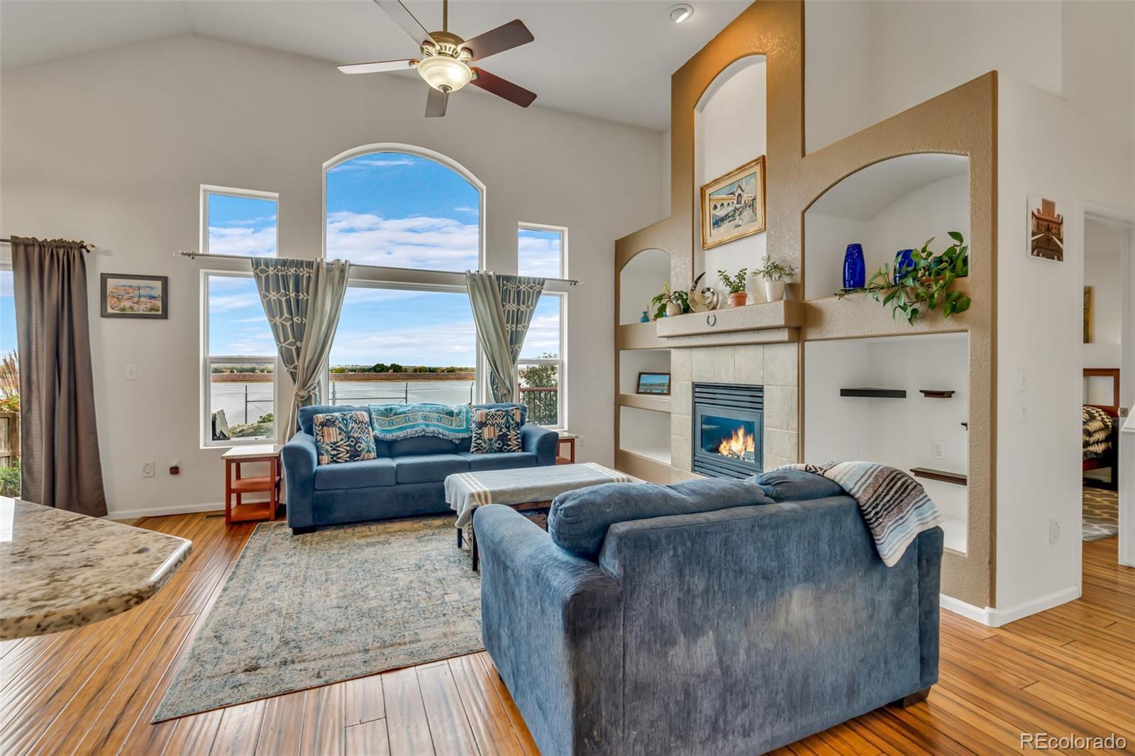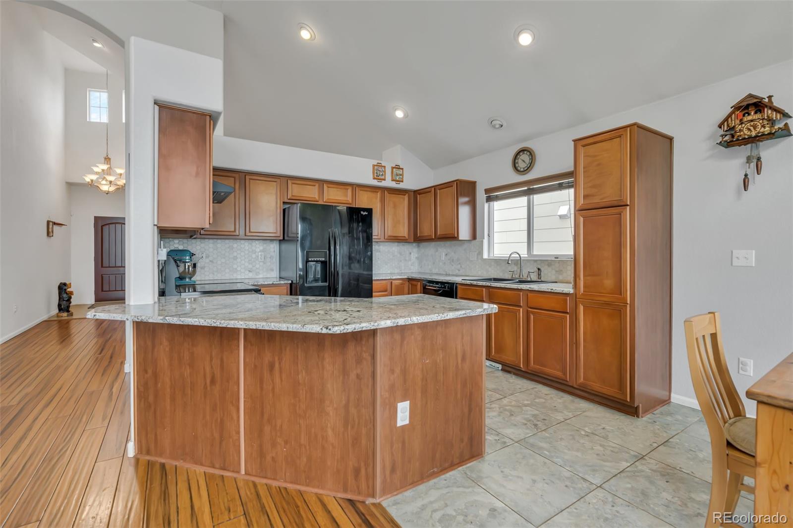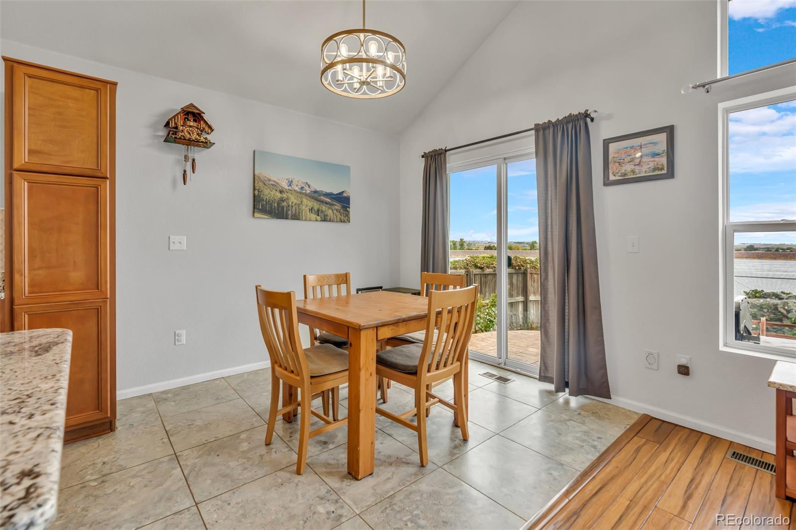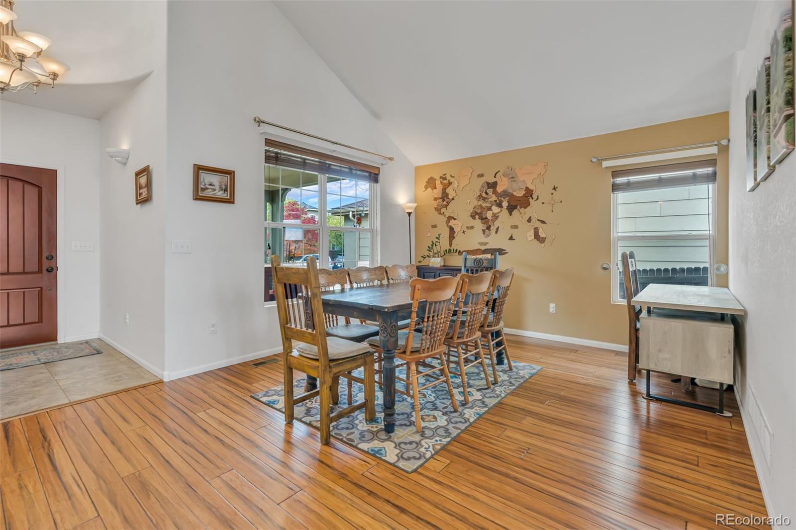Beautiful 4-bedroom, 4-bath home in desirable Dunes Park backing to a serene retention pond with stunning mountain views. Open floorplan with main-level master suite featuring bamboo and natural stone floors. Updated kitchen with granite countertops, marble backsplash, and newer dishwasher. Finished basement includes a family room, full bath, and bedroom with walk-in closet—ideal for guests or multigenerational living. Enjoy outdoor living on the large backyard deck, covered front porch, and a garden with mature grapes and tomatoes. Two-car garage with extended bay for added utility. Recent updates include new exterior paint, AC, water heater, and windows. Neighborhood amenities include pool and park. Convenient location just 20 minutes from Downtown Denver with easy access to shopping, dining, and major routes.
