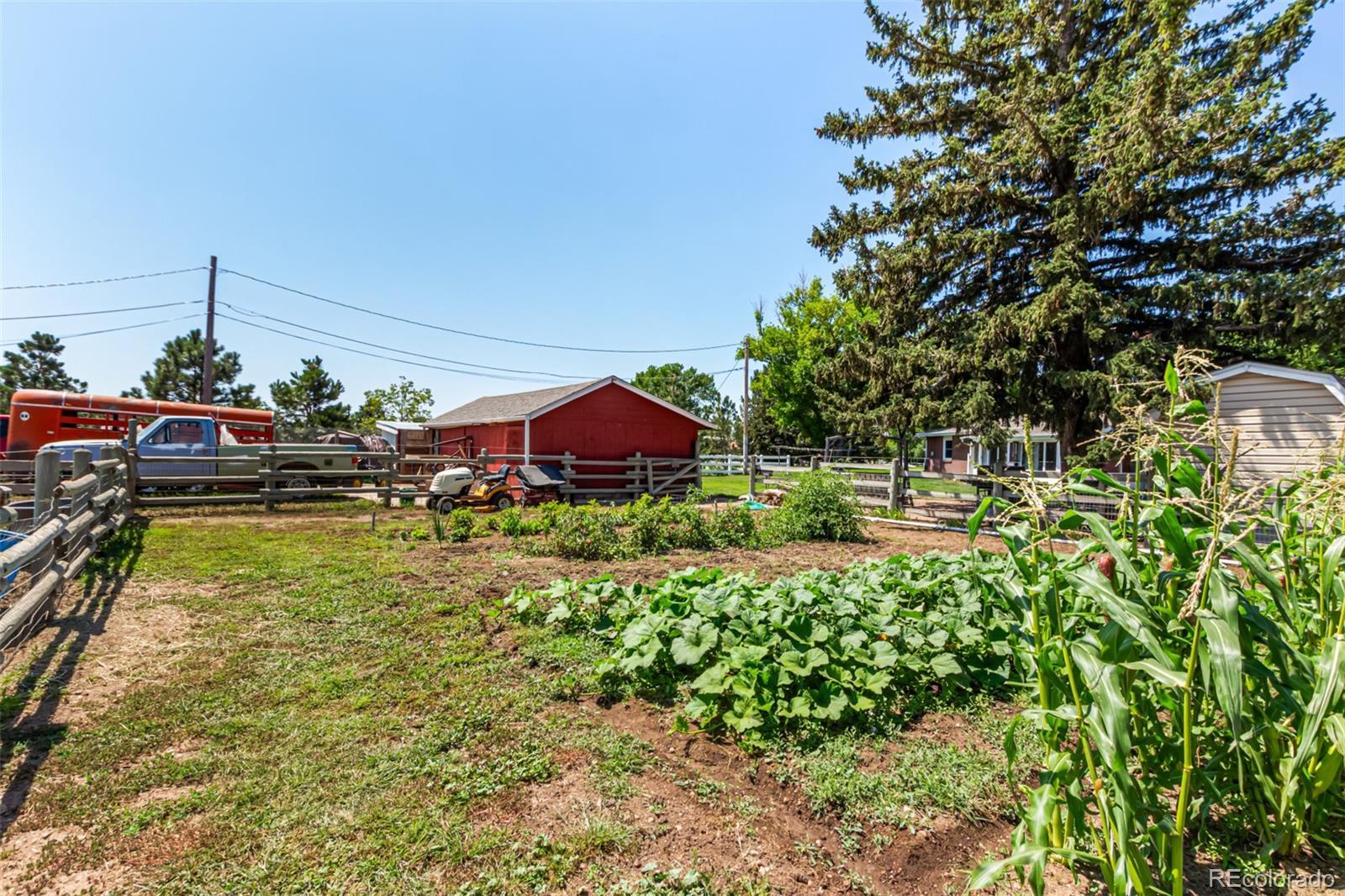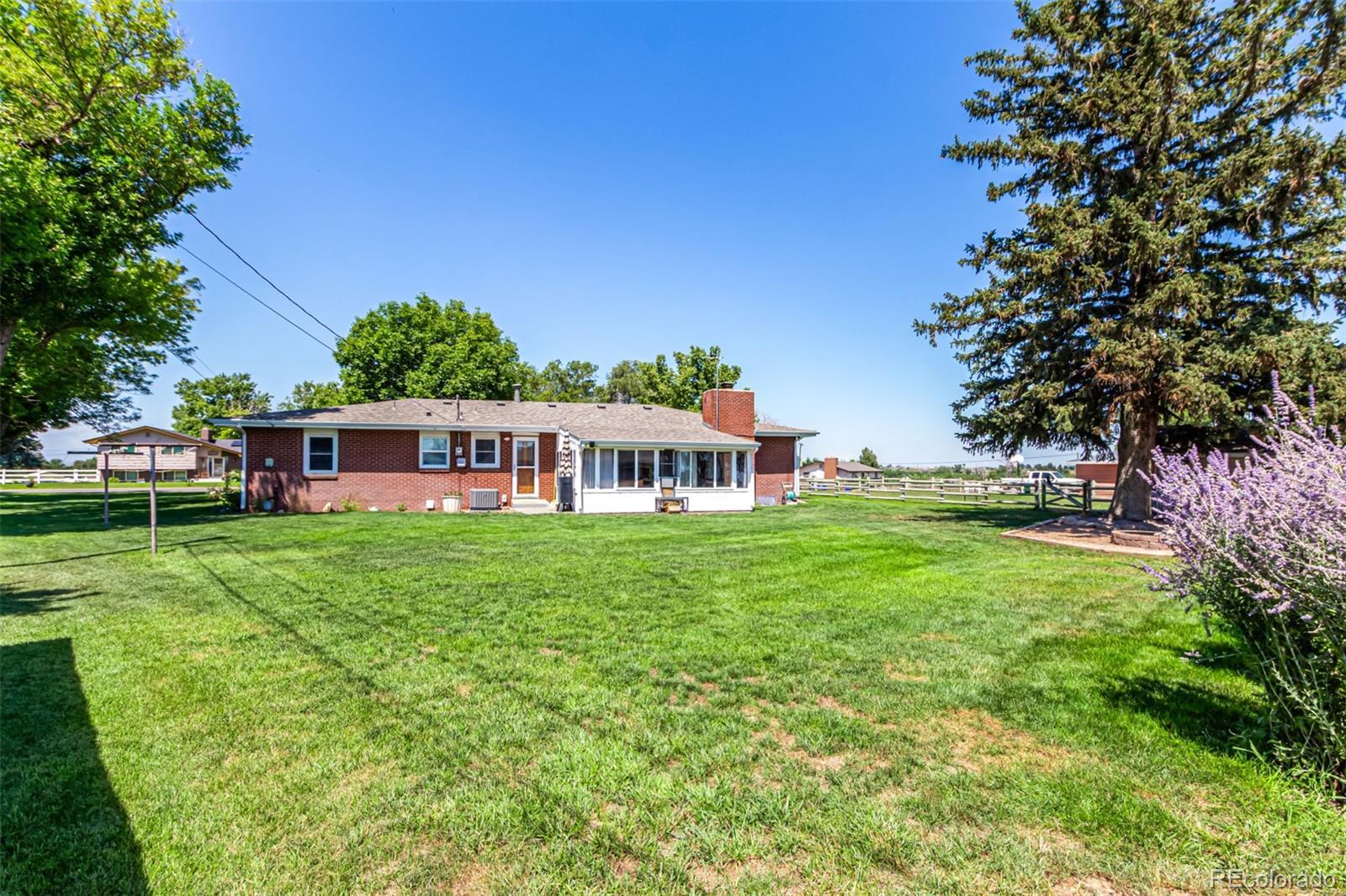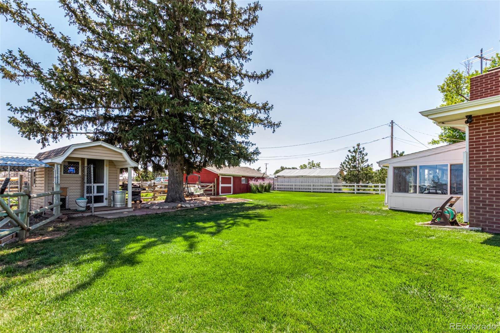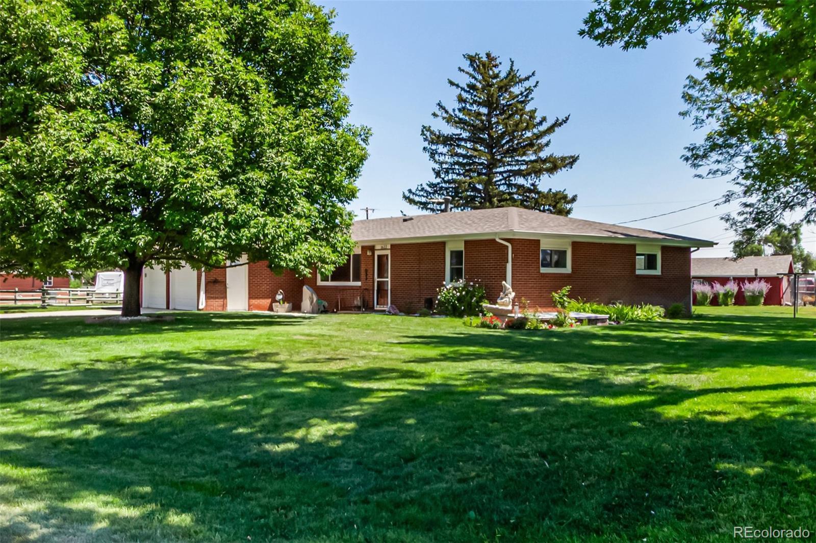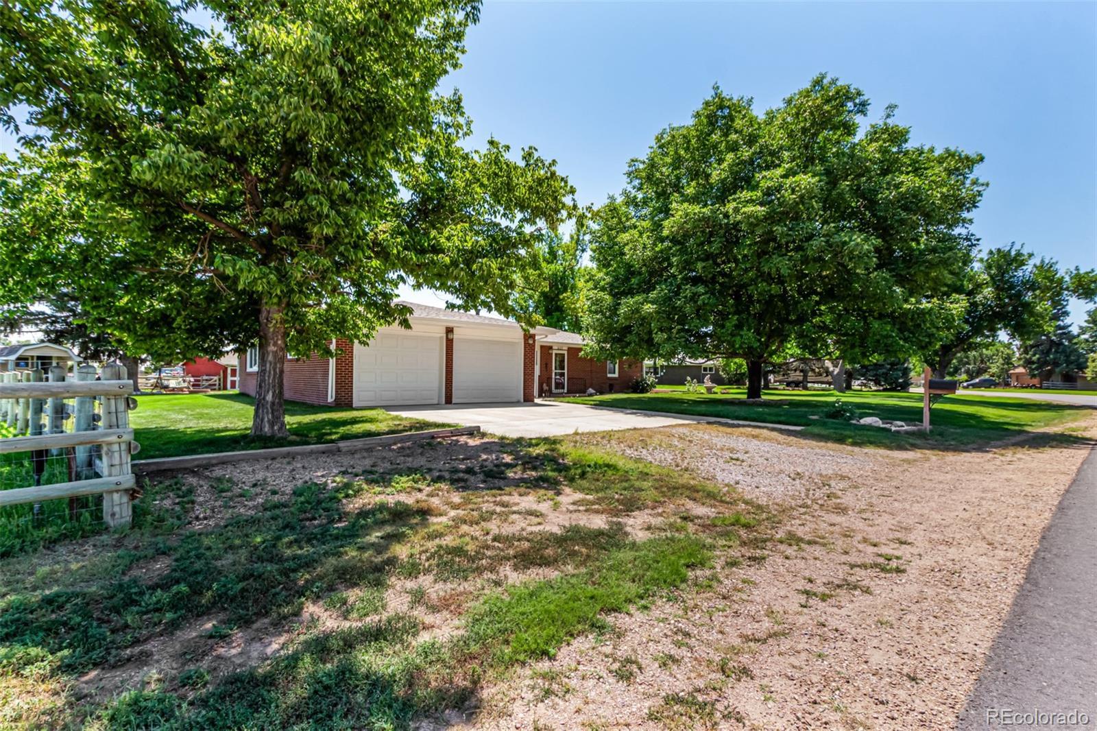 Become the proud owner of this sprawling 1-acre horse property, really a rare find at $600k. Get your picture-perfect curb appeal, lush natural grass, mature shade trees, and a classic white split-rail fence, plus a 2-car garage. Inside, a formal living room offers a soothing palette and soft carpeting, while the well-appointed family room features a cozy fireplace. The gourmet kitchen shines with quartz countertops, newer cabinetry, a tile backsplash, stainless steel appliances, and a peninsula for extra prep space. The main bedroom includes double built-in closets for easy storage, and the second main-level bedroom is good sized with great natural light. The shared main-level bathroom was recently remodeled with a large double vanity and a beautiful tile shower. Just down the hall is the main level laundry room and additional storage, plus the half bath. A bright sunroom with brand-new windows provides an ideal year-round spot for morning coffee or afternoon reading. The finished basement expands your living options with a large rec room, dedicated storage, and a third spacious, remodeled bedroom which is great for guests, an office, or hobbies. Outside, the property delivers true Colorado utility: horse barn space and tack room, a garden shed, corrals, nice perimeter fencing plus electric fencing, a well-loved producing vegetable garden, and extra back-alley access parking with trailer access/storage (including RV gate). Best of all, this home uniquely offers both city water and a private well—all outdoor water use runs off your own well for meaningful water-cost savings. Room to roam, thoughtful updates, and hard-to-find amenities—see it today!