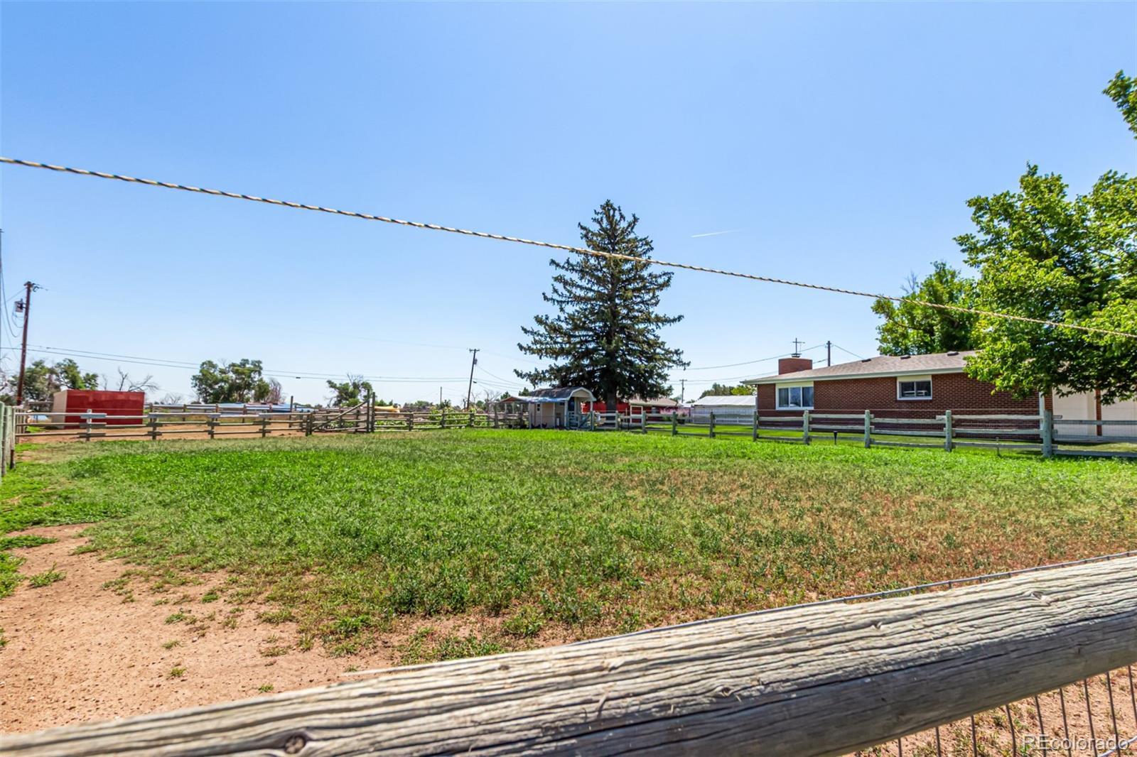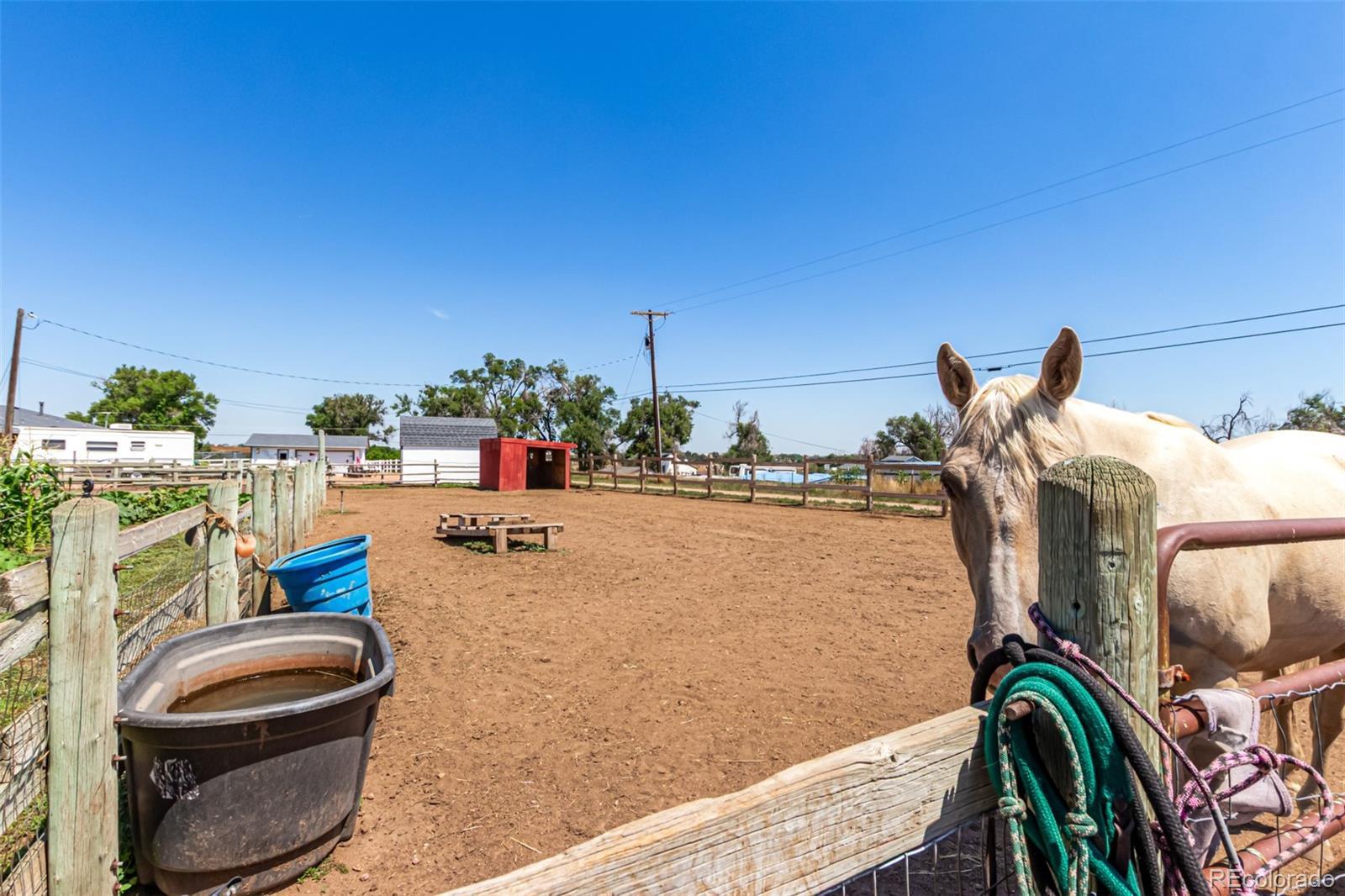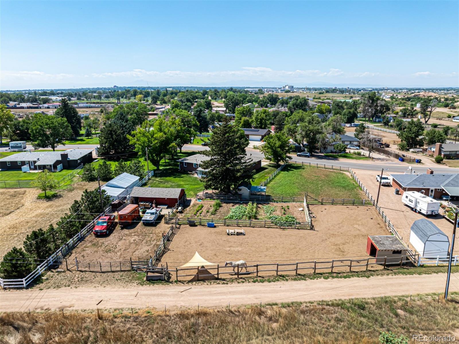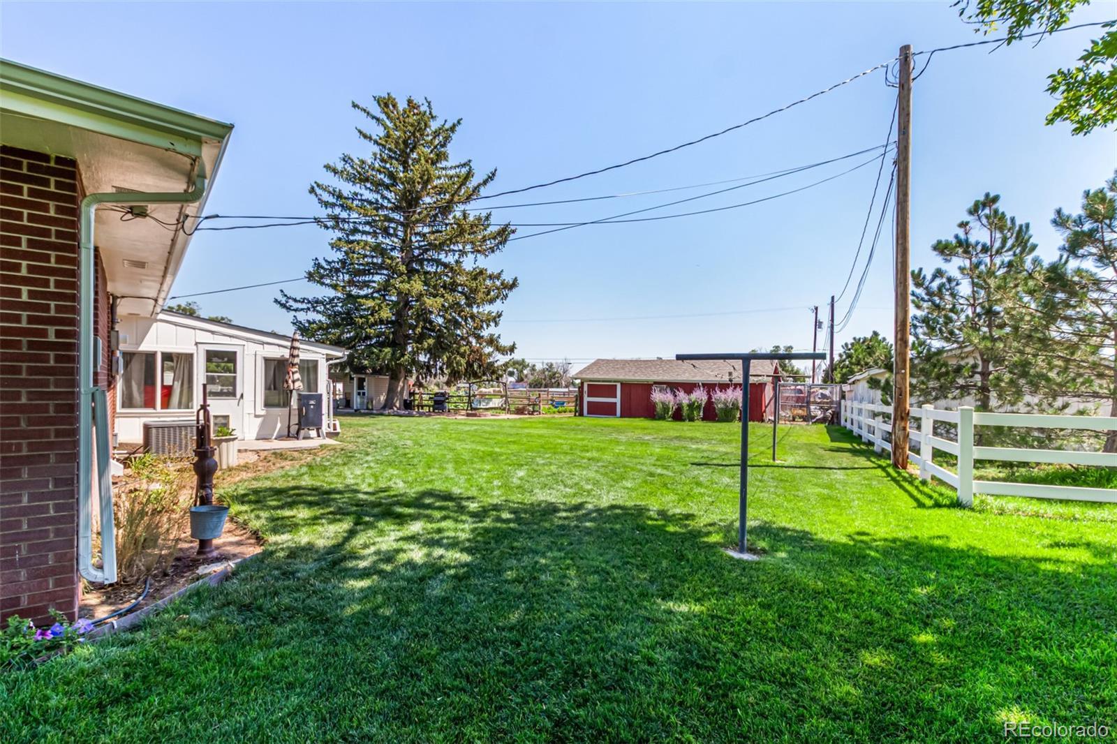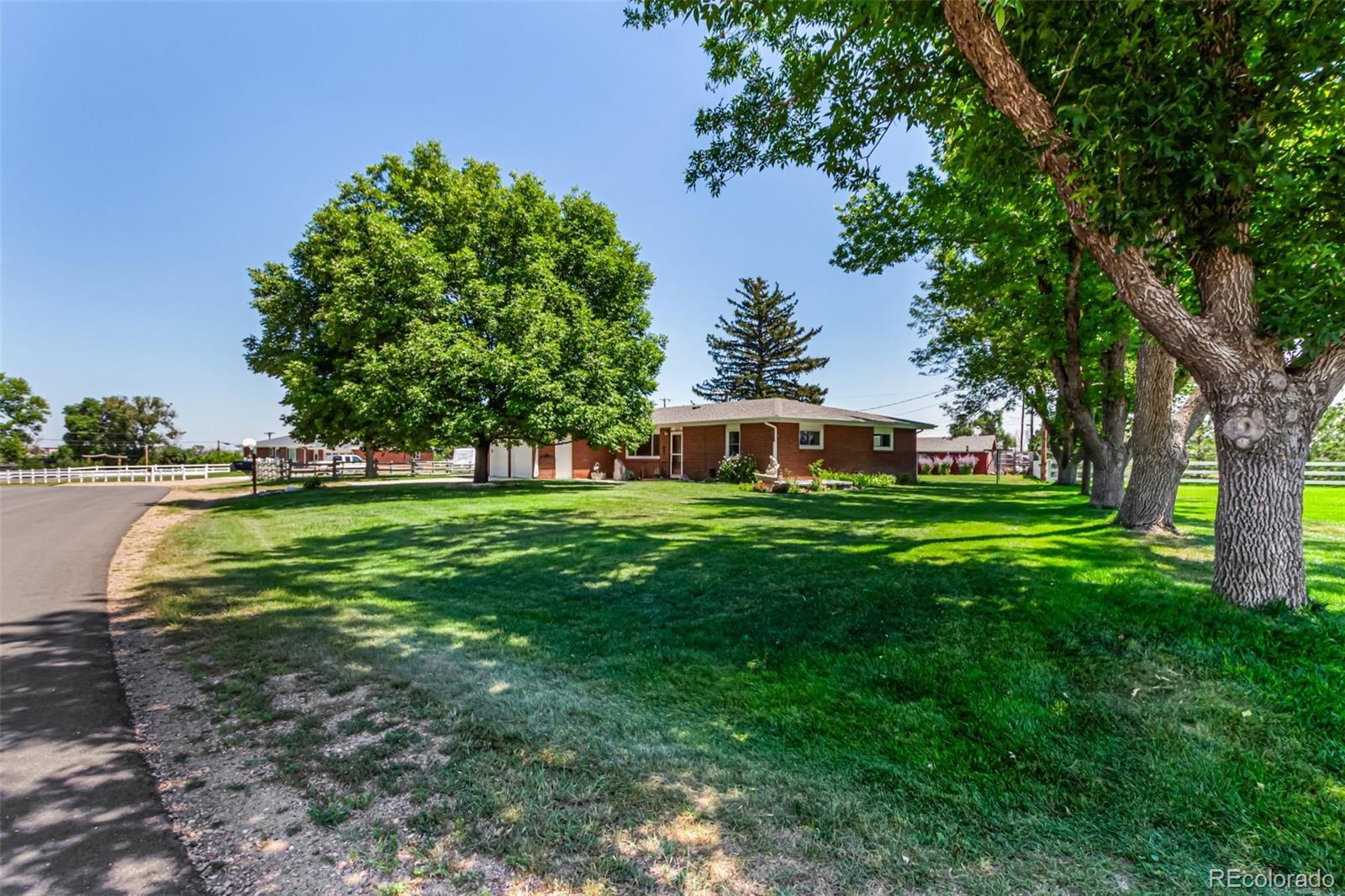 Become the proud owner of this sprawling 1-acre horse property, really a rare find at $600k. Get your picture-perfect curb appeal, lush natural grass, mature shade trees, and a classic white split-rail fence, plus a 2-car garage. Inside, a formal living room offers a soothing palette and soft carpeting, while the well-appointed family room features a cozy fireplace. The gourmet kitchen shines with quartz countertops, newer cabinetry, a tile backsplash, stainless steel appliances, and a peninsula for extra prep space. The main bedroom includes double built-in closets for easy storage, and the second main-level bedroom is good sized with great natural light. The shared main-level bathroom was recently remodeled with a large double vanity and a beautiful tile shower. Just down the hall is the main level laundry room and additional storage, plus the half bath. A bright sunroom with brand-new windows provides an ideal year-round spot for morning coffee or afternoon reading. The finished basement expands your living options with a large rec room, dedicated storage, and a third spacious, remodeled bedroom which is great for guests, an office, or hobbies. Outside, the property delivers true Colorado utility: horse barn space and tack room, a garden shed, corrals, nice perimeter fencing plus electric fencing, a well-loved producing vegetable garden, and extra back-alley access parking with trailer access/storage (including RV gate). Best of all, this home uniquely offers both city water and a private well—all outdoor water use runs off your own well for meaningful water-cost savings. Room to roam, thoughtful updates, and hard-to-find amenities—see it today!
