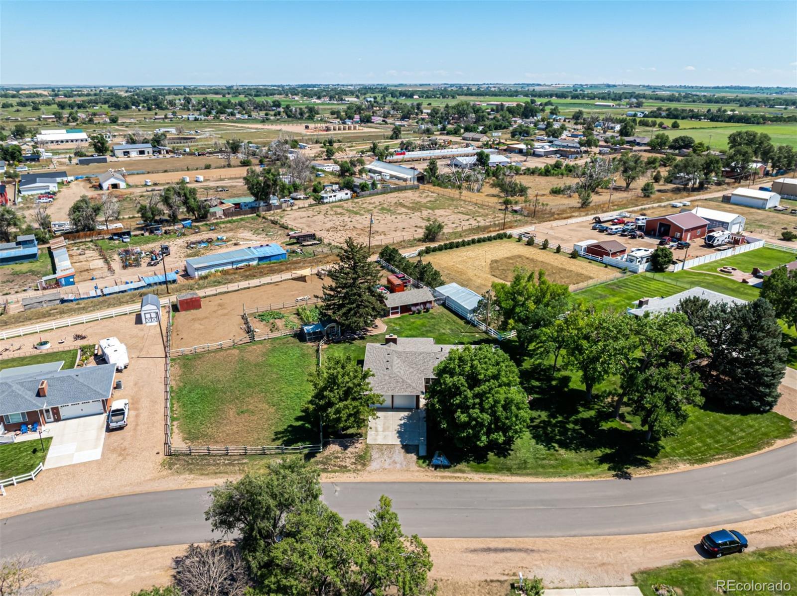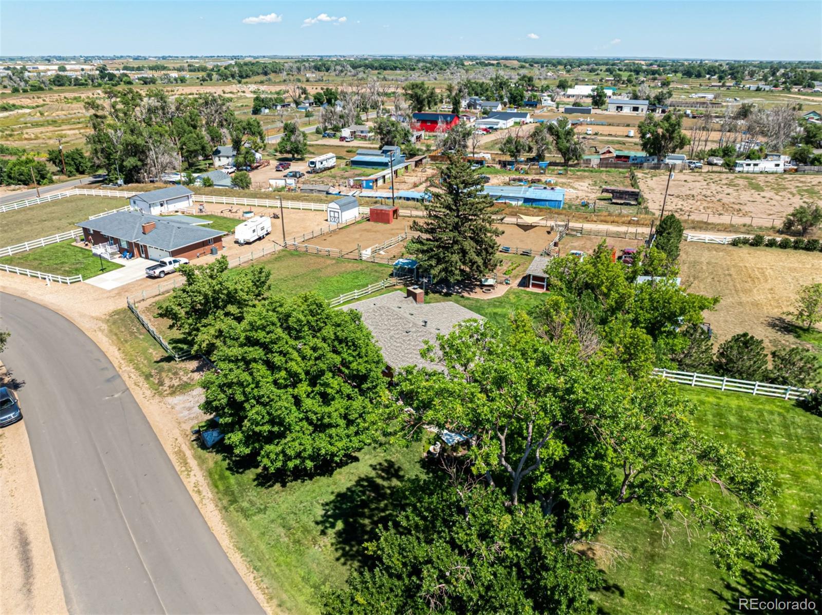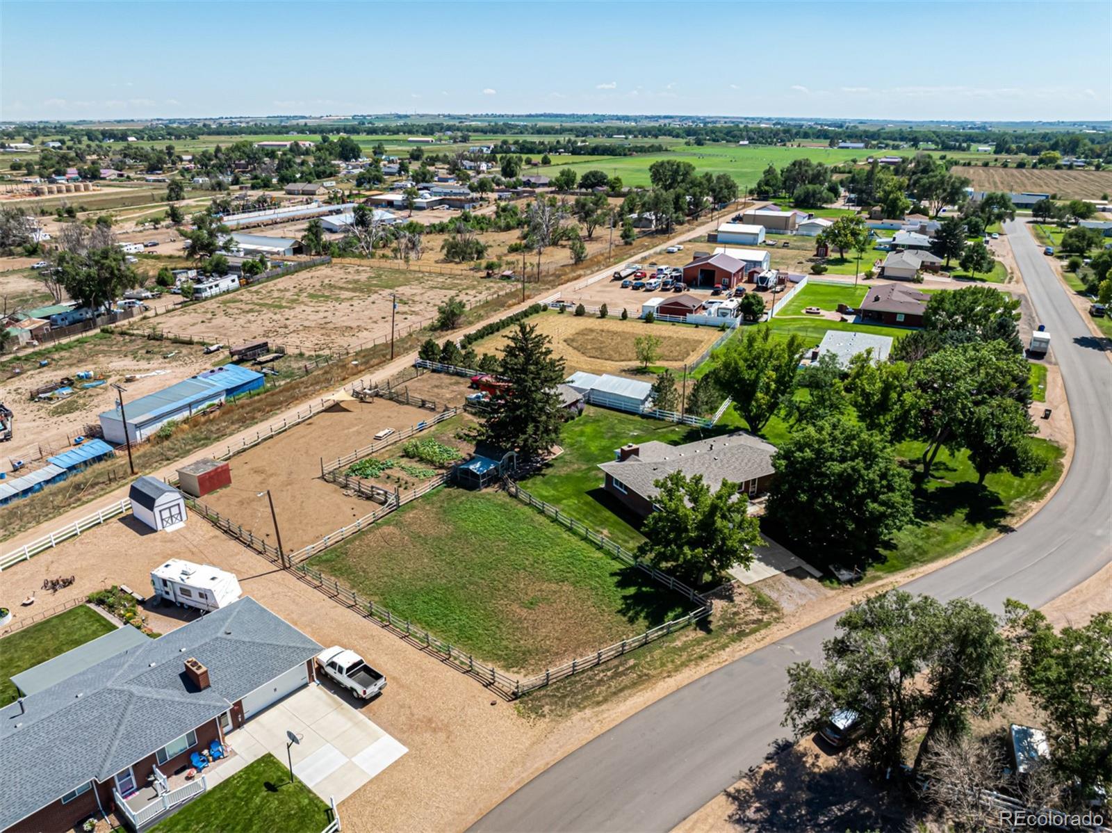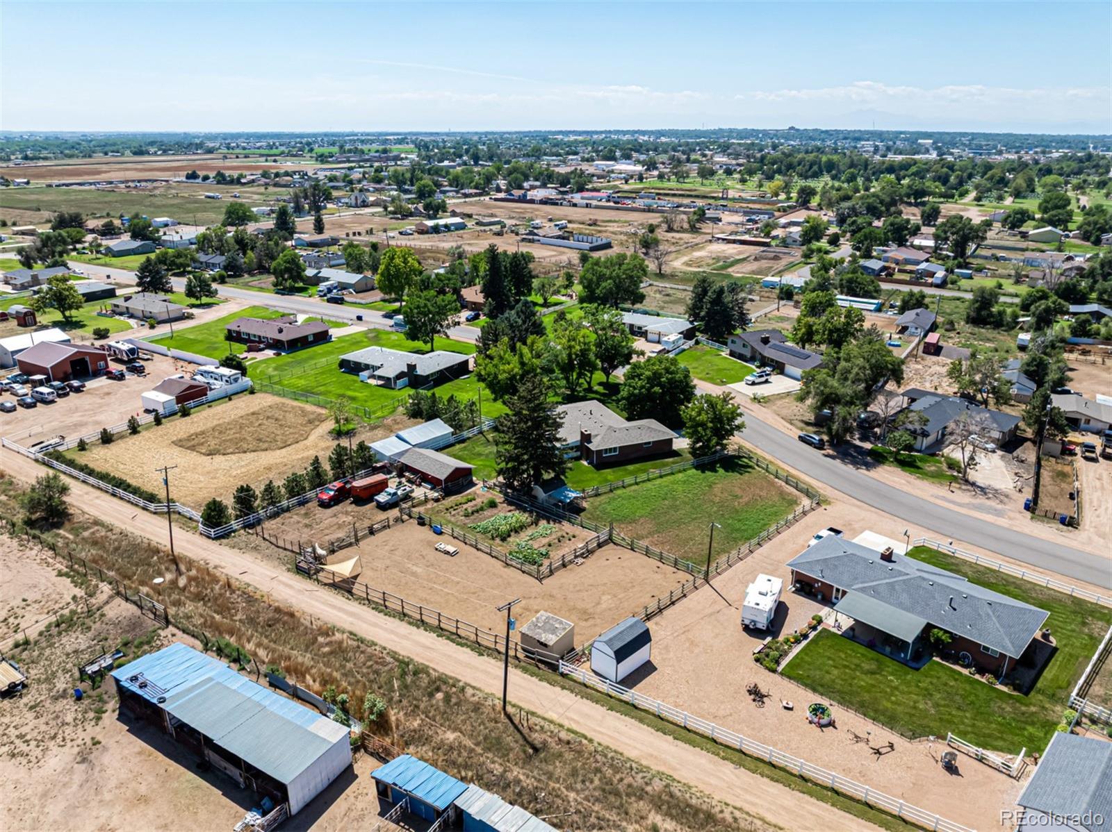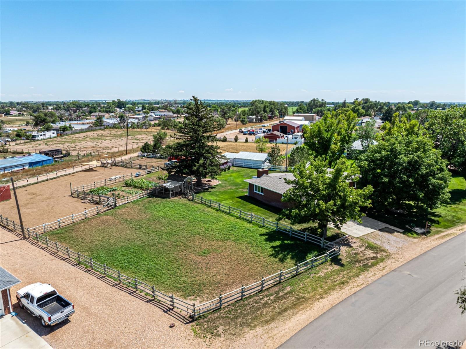 Become the proud owner of this sprawling 1-acre horse property, really a rare find at $600k. Get your picture-perfect curb appeal, lush natural grass, mature shade trees, and a classic white split-rail fence, plus a 2-car garage. Inside, a formal living room offers a soothing palette and soft carpeting, while the well-appointed family room features a cozy fireplace. The gourmet kitchen shines with quartz countertops, newer cabinetry, a tile backsplash, stainless steel appliances, and a peninsula for extra prep space. The main bedroom includes double built-in closets for easy storage, and the second main-level bedroom is good sized with great natural light. The shared main-level bathroom was recently remodeled with a large double vanity and a beautiful tile shower. Just down the hall is the main level laundry room and additional storage, plus the half bath. A bright sunroom with brand-new windows provides an ideal year-round spot for morning coffee or afternoon reading. The finished basement expands your living options with a large rec room, dedicated storage, and a third spacious, remodeled bedroom which is great for guests, an office, or hobbies. Outside, the property delivers true Colorado utility: horse barn space and tack room, a garden shed, corrals, nice perimeter fencing plus electric fencing, a well-loved producing vegetable garden, and extra back-alley access parking with trailer access/storage (including RV gate). Best of all, this home uniquely offers both city water and a private well—all outdoor water use runs off your own well for meaningful water-cost savings. Room to roam, thoughtful updates, and hard-to-find amenities—see it today!