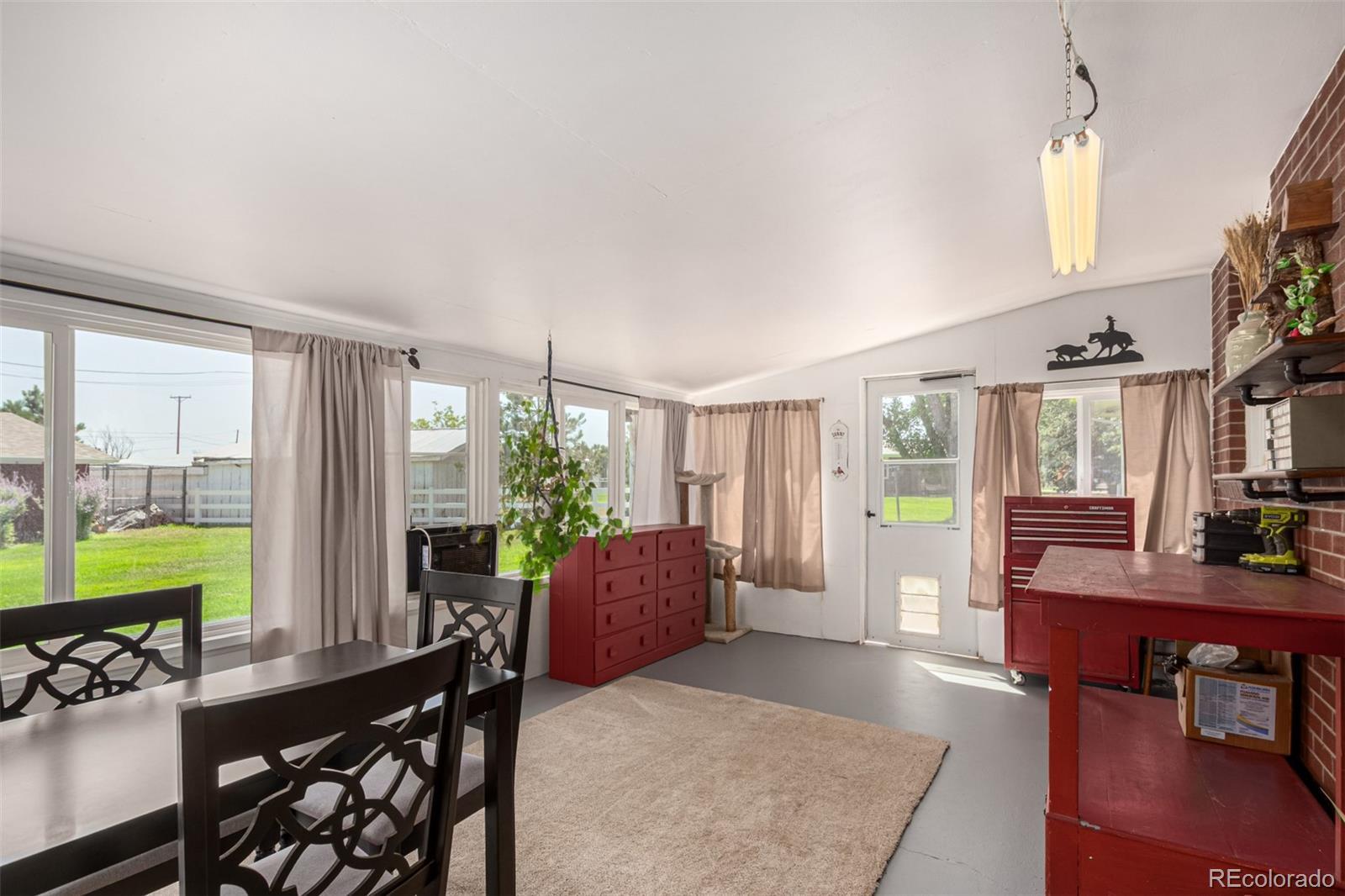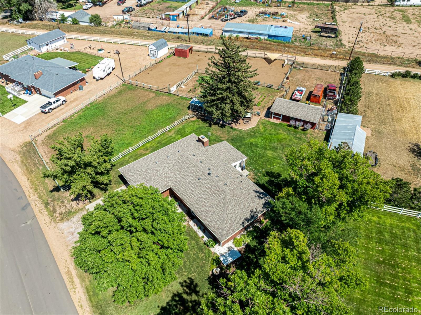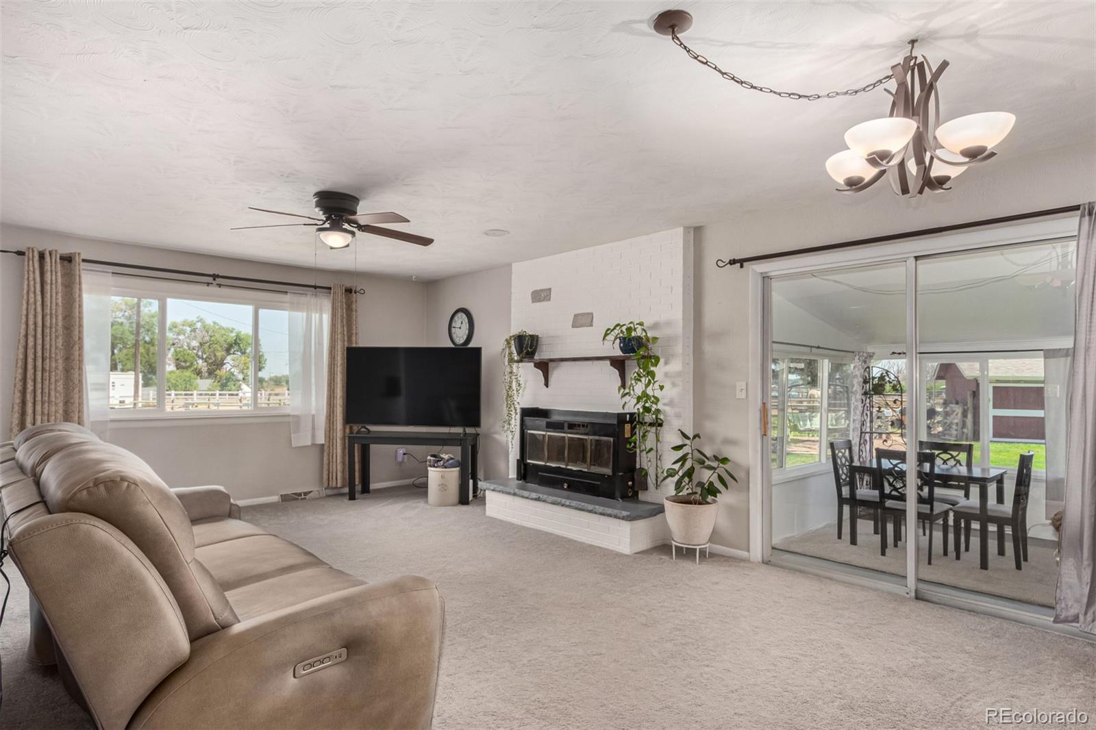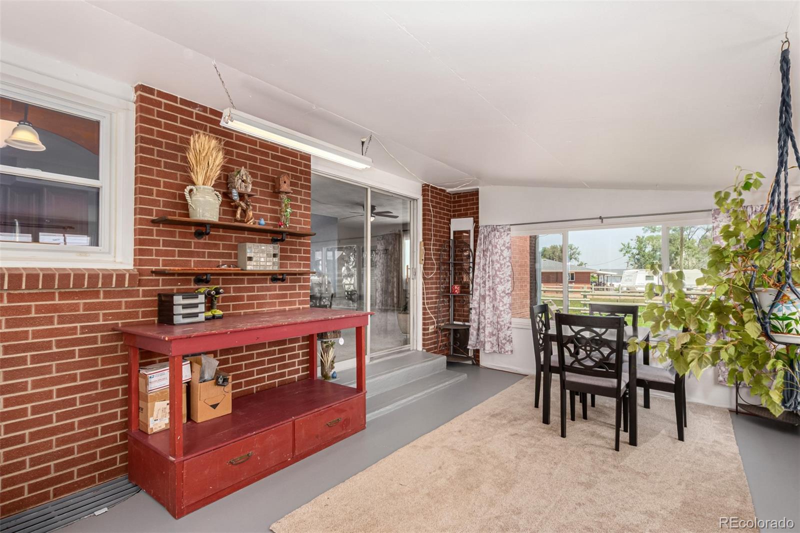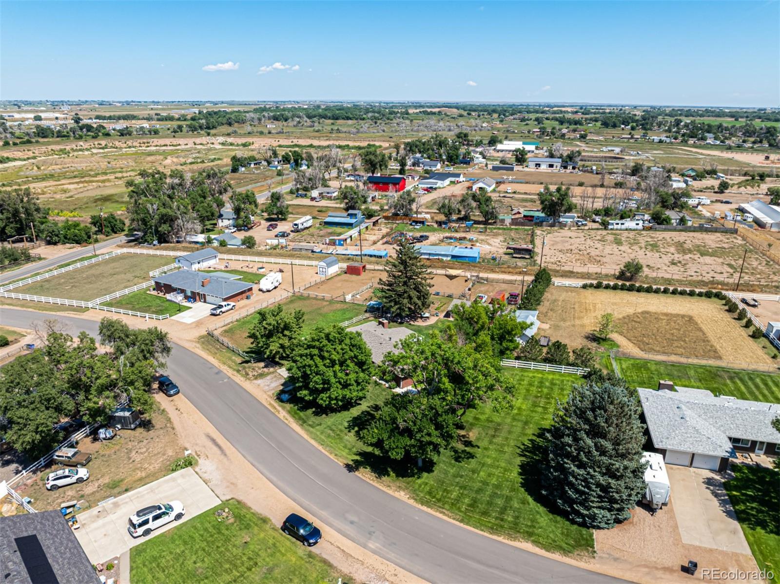Become the proud owner of this sprawling 1-acre horse property, really a rare find at $600k. Get your picture-perfect curb appeal, lush natural grass, mature shade trees, and a classic white split-rail fence, plus a 2-car garage. Inside, a formal living room offers a soothing palette and soft carpeting, while the well-appointed family room features a cozy fireplace. The gourmet kitchen shines with quartz countertops, newer cabinetry, a tile backsplash, stainless steel appliances, and a peninsula for extra prep space. The main bedroom includes double built-in closets for easy storage, and the second main-level bedroom is good sized with great natural light. The shared main-level bathroom was recently remodeled with a large double vanity and a beautiful tile shower. Just down the hall is the main level laundry room and additional storage, plus the half bath. A bright sunroom with brand-new windows provides an ideal year-round spot for morning coffee or afternoon reading. The finished basement expands your living options with a large rec room, dedicated storage, and a third spacious, remodeled bedroom which is great for guests, an office, or hobbies. Outside, the property delivers true Colorado utility: horse barn space and tack room, a garden shed, corrals, nice perimeter fencing plus electric fencing, a well-loved producing vegetable garden, and extra back-alley access parking with trailer access/storage (including RV gate). Best of all, this home uniquely offers both city water and a private well—all outdoor water use runs off your own well for meaningful water-cost savings. Room to roam, thoughtful updates, and hard-to-find amenities—see it today!