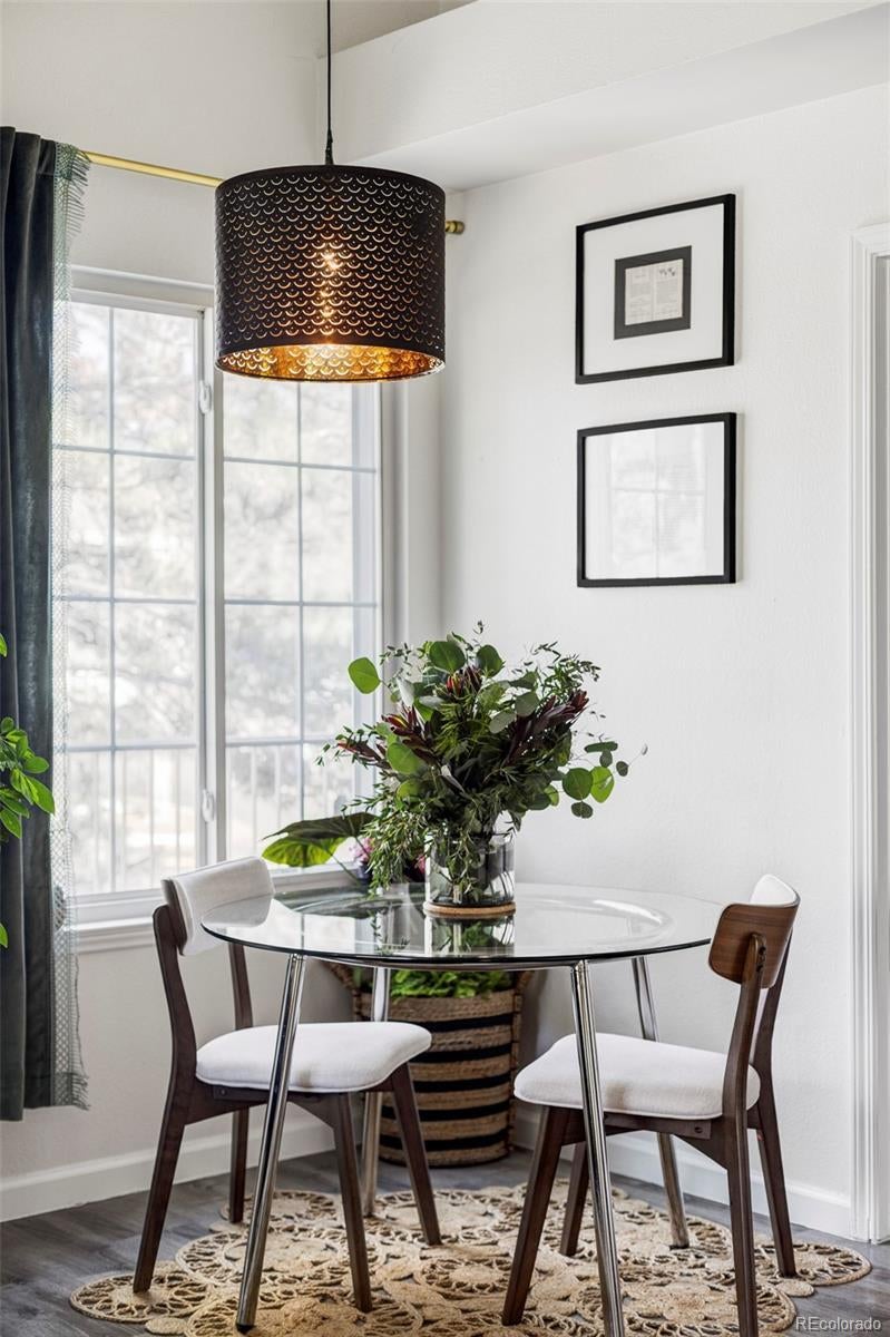 Elevated style meets turnkey ease in this beautifully updated Lakewood residence, where thoughtful design and modern comfort create an inviting retreat. A bright, open-concept layout unfolds beneath vaulted ceilings, anchored by a tiled fireplace and enhanced by abundant natural light. The kitchen impresses with all-white cabinetry, sleek countertops, a tiled backsplash, stainless steel appliances, a peninsula with seating and a professionally designed Container Store pantry. LVP flooring, fresh paint and shiplap accents add warmth and character throughout. The spacious primary bedroom boasts a custom walk-in closet, while a generous secondary bedroom provides flexibility for guests or a home office. A neutral full bath and in-unit laundry offer everyday convenience, and the private balcony features upgraded composite flooring for effortless outdoor enjoyment. With two off-street parking spaces, this turnkey residence delivers style, comfort and ease in a central Lakewood location. Please be sure to read the letter from the seller describing the most attractive features of this home and neighborhood.