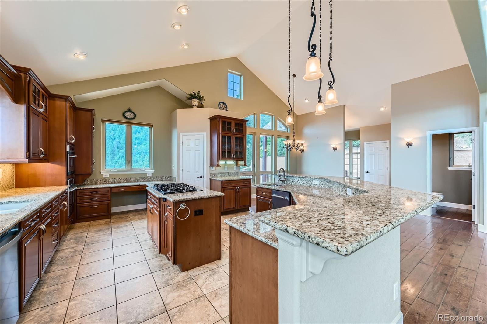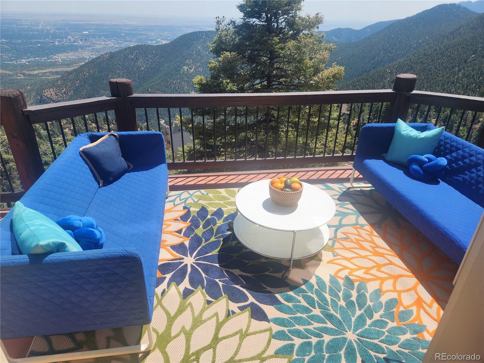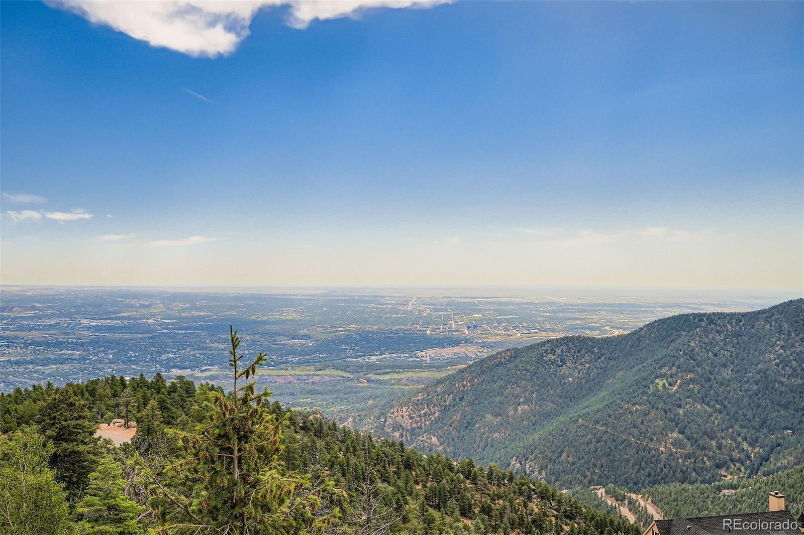 HUGE PRICE REDUCTION! Don't miss this Top Of The World listing! NEW ROOF AND SKYLIGHTS! Revel in expansive mountain and city views from every bedroom and living area! With all the charm and warmth of a true Colorado mountain home, notice the quality and craftsmanship of this two-story stucco gem. Upon entering, you'll notice the perfectly placed window seat and the custom wood entry door. This entry area opens to a huge great room, complete with the elegance of a custom overlook from the second story, two-story vaulted ceiling, custom floor to ceiling windows and skylights, wood plank floor, speakers, a two-story fireplace, and an exit through French doors to the custom deck which overlooks Colorado Springs and the Plains through valley and the mountains below. The kitchen will delight the chef with upgrades and quality appointments, including stainless steel appliances throughout: gas cooktop, wall oven and microwave, dishwasher, refrigerator, and ice machine. Granite counters, breakfast bar, brushed bronze fixtures, including a touch-faucet, a counter bar, two kitchen sinks, a garden window, a built-in desk area and pendant lighting complete the elegant feel of the kitchen area. The master bedroom is generous in space and luxury, featuring floor to ceiling windows and a custom door that exits to the deck. The fireplace in the master bedroom is perfect for cozy Colorado nights. The ensuite 5-piece master bath includes a picture window that looks out to the city of Colorado Springs and further out to the Colorado Plains. The large walk-in master closet allows for lots of storage. Upstairs, the two bedrooms and the loft have views unmatched. A charming bathroom is shared by these spaces, complete with a custom vanity. The basement includes a family room area with doors that open to a covered porch. Don't forget the massive storage room with radiant floor heat! Come see this one today!