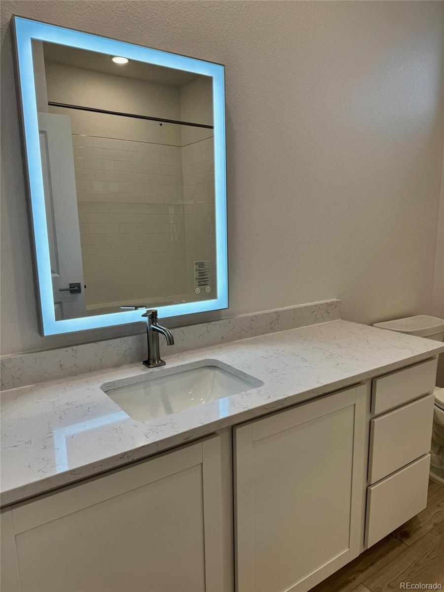 QUICK MOVE-IN! RARE OPPORTUNITY - GROUND FLOOR UNIT WITH NO STAIRS & MOUNTAIN VIEWS! BRAND-NEW Vyktorea I plan faces south for ample natural light and includes an extra-deep, attached 1-car garage with driveway parking! This unit features our sleek Colorado Complete package including beautiful quartz countertops, white soft-close cabinets, stainless steel appliances (including refrigerator), full sized front-loading washer and dryer, and high quality, waterproof LVP flooring throughout. Large kitchen island seats 4-5 and features oversized stainless steel sink and semi-professional Kohler faucet. Brushed nickel hardware and fixtures add to the contemporary feel. Oversized subway tile in both baths, lighted mirror and large soaking tub in the primary bath. This unit is move-in ready and includes window blinds, air conditioning, Navien tankless water hearter, Kwikset Smartcode deadbolt and more. Enjoy easy access to light rail with Pena station less than a mile away. We're also close to GVR Recreation Center and GVR Golf Club, as well as new restaurants, new brew pub, new K-8 school, and so much more! Easy access to E-470, I-70 and DIA. Ask about our amazing incentives and loan options today! Visit www.lokalhomes.com for more information. Buyer shall be responsible for verifying property taxes as there is currently no available tax information for the units at the assessor's website.