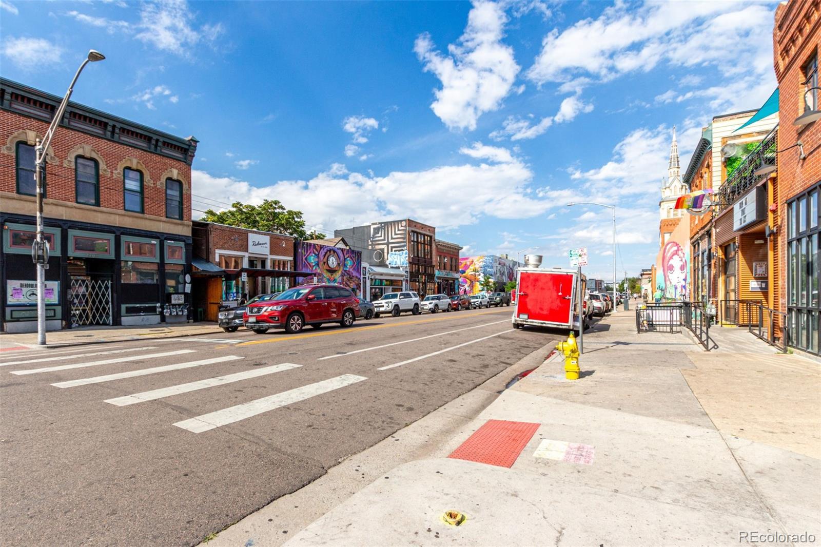 Fantastic unit at the 24th Street Townhomes- one of the 11 in this development. Located on a small pocket park, which provides a rare green urban buffer on a quiet block. Situated on the edge of downtown, RiNo, and Curtis Park this townhome offers a prime location to an urban lifestyle. The ground floor is perfect for a 3rd bedroom, office or home gym space complete with en-suite full bath. The 2nd living level provides an open floorplanwith two sides of windows, living & dining rooms, kitchen with white cabinets, stainless appliances, breakfast seating and slab granite counters. Additionally, there is a half bath and balcony facing the greenbelt with a natural gas line for a grill. The third level is the primary bedroom en-suite with a 4 piece bath, walk-in closet. Second bedroom with en-suite full bathroom as well. Make your way to the rooftop deck with views of downtown, and privacy perfect for sunny afternoon naps or evening cocktails. A 2 car garage with bib finishes off this beautiful residence.