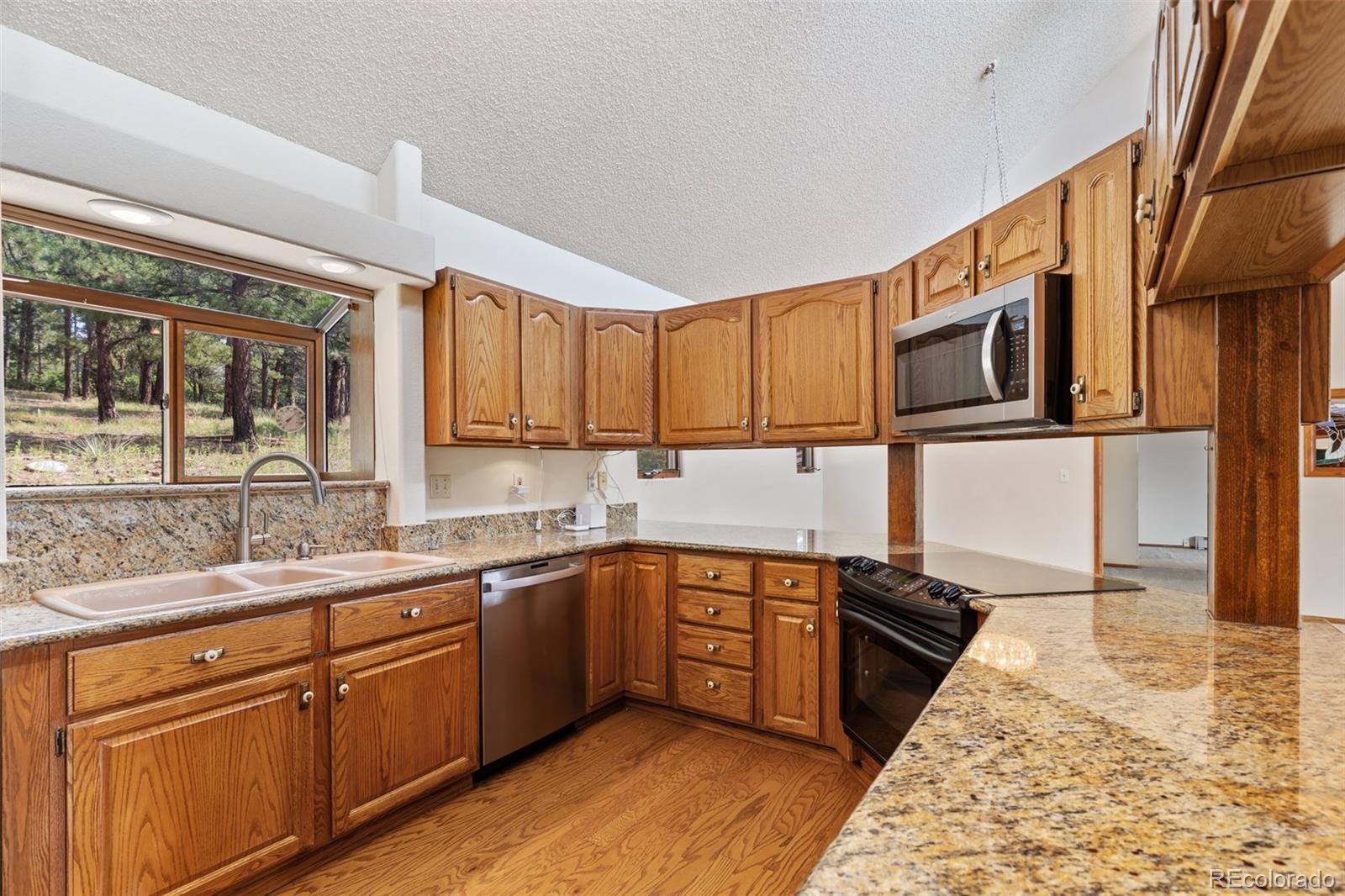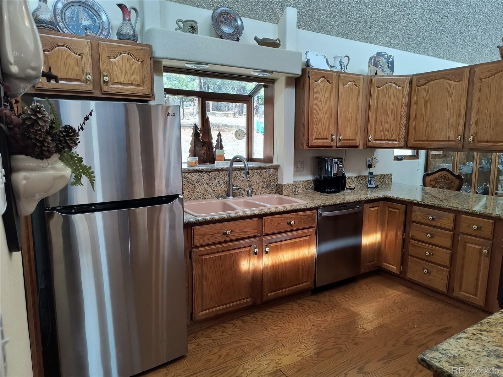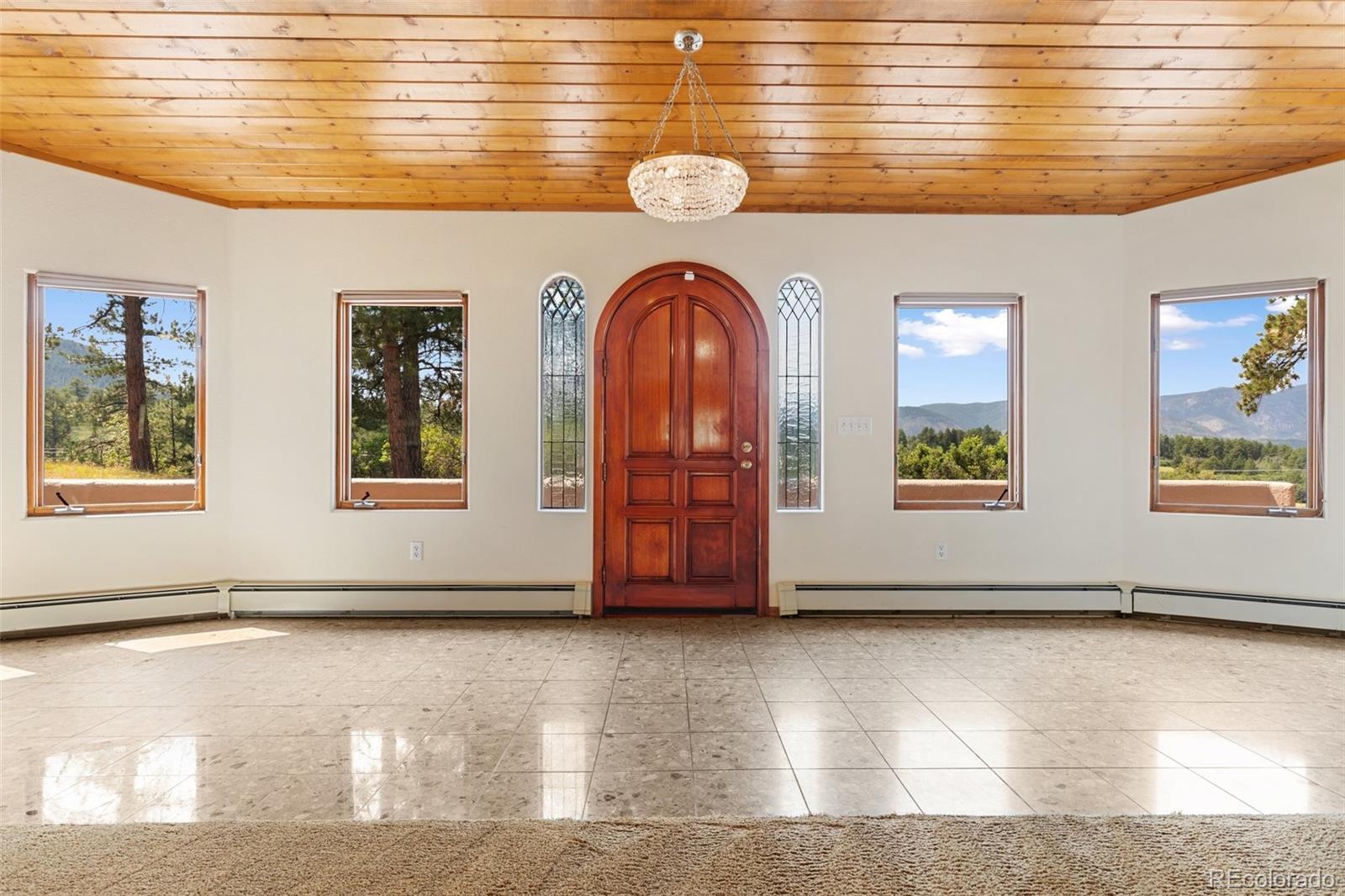 EXPERIENCE THIS BEAUTIFUL 5 ACRE WOODED SETTING NEAR PERRY PARK IN LARKSPUR, COLORADO!!! SUPER VIEWS OF THE NEARBY MOUNTAINS AND PEACEFUL VALLEYS, WATCH THE HORSES BELOW AND SURROUNDING WILDLIFE VISIT YOU! THIS PROPERTY IS NESTLED UP ABOVE THE ROAD BEHIND THE SCRUB OAK, WHERE IT'S QUIETLY TUCKED IN FOR PRIVACY. A LUSH GREEN MEADOW BELOW, SEE THE BIG BUCKS, WILD TURKEY ROAM. MATURE PINE TREES SURROUND THE REST OF THE 5 ACRES. THIS QUALITY CUSTOM HOME HAS A SOUTHWEST STYLE WITH 3 BEDROOMS, 2 BATHS AND A 2 CAR OVERSIZED GARAGE. AS YOU ENTER INTO THIS HOME WITH IT'S STUNNING 11' WIDE SOUTHWEST STYLE FIREPLACE WITH A CABINET ON EACH SIDE AND LIGHTED NOOKS. IT'S A MASTERPIECE THAT CATCHES YOUR EYE. IT FILLS THE HOME WITH WARMTH AND SO GREAT FOR GATHERINGS. MASTER SUITE IS SITUATED ON THE FAR SIDE FOR IT'S OWN PRIVACY, ATTACHED 5 PIECE BATH. YOU CAN WALKOUT TO A LARGE SIZE PATIO, THE OTHER 2 BEDROOMS ARE ON THE OPPOSITE SIDE OF THE HOME. YOU FIND BEAUTIFUL GLASS CHANDELIER'S, DECORATIVE LIGHTED STAIN GLASS WINDOWS. KITCHEN AND DINING ROOM ARE ALL OPEN TO THE GREATROOM. ENJOY THE WINDOWS ALL ALONG THE FRONT TO ENJOY THOSE VIEWS. 2 PATIO SITES IN FRONT OF THE HOME. LIGHTED ENTRY POSTS AT THE BOTTOM OF THE DRIVEWAY. SOMEONE IS GOING TO LOVE THIS SPECIAL SETTING AND GORGEOUS HOME! IF YOU LOVE GOLF, THE AMAZING PERRY PARK COUNTRY CLUB IS ONE OF A KIND GOLF COURSE. BREATHTAKING ACTUALLY! BEAR DANCE GOLF COURSE IS NOT FAR EITHER. THE TOWN OF LARKSPUR HAS RESTAURANTS, FARMERS MARKET, MUSIC IN THE SUMMERS. CLOSE TO CASTLE ROCK, MONUMENT, PALMER LAKE & COLORADO SPRINGS, LOTS OF CHOICES! THE BEST OF EVERYTHING!