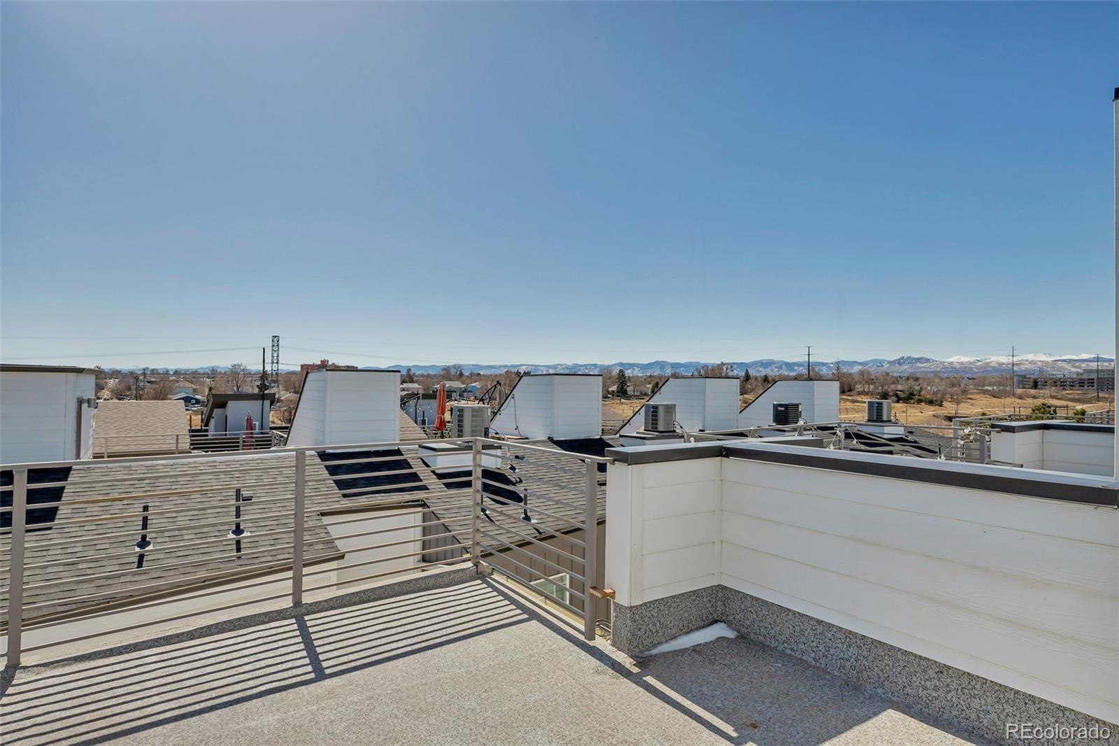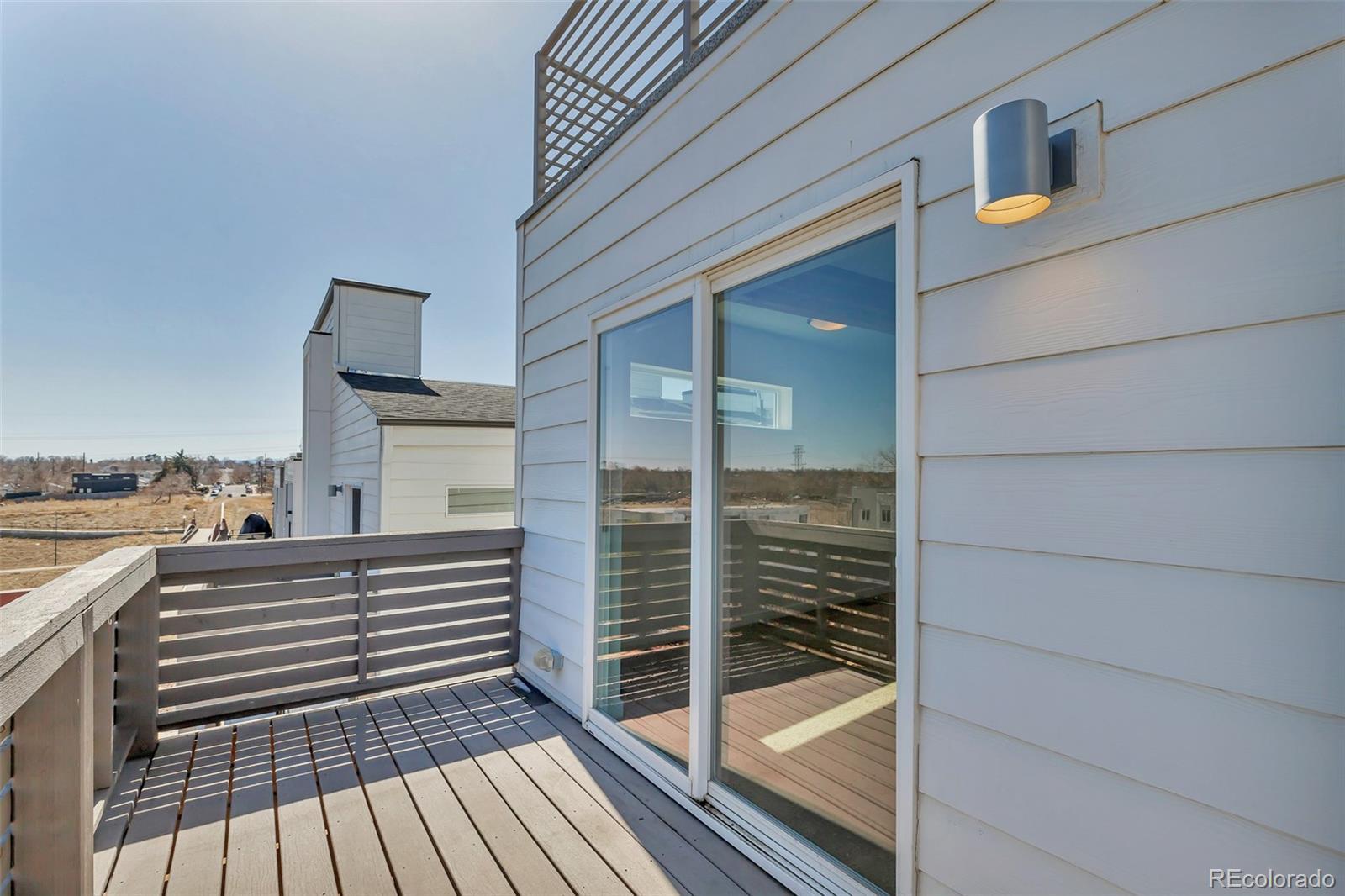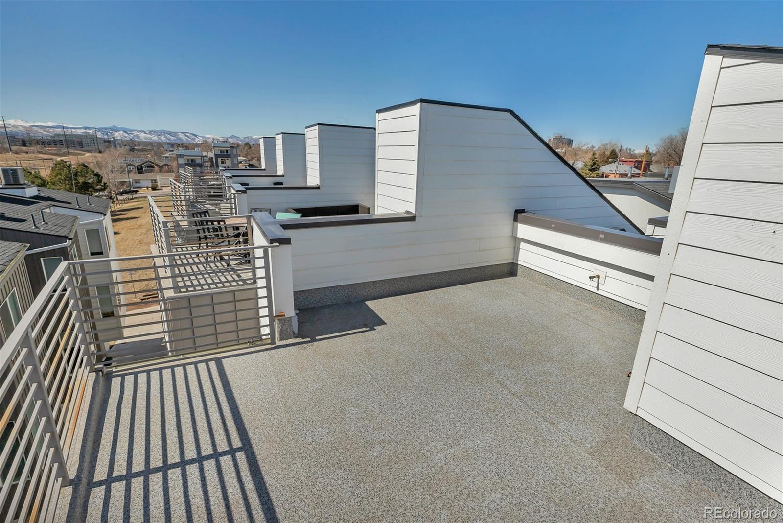 Welcome to your street-facing, contemporary townhome, a must-see! This is 2 bed / 2.5 bath end home that lives like a single family! Extensive, private outdoor space, including two balconies and a rooftop to enjoy the mountain views. Entertain in your open-plan kitchen, living, and dining room space. The great eat-in kitchen features Corian countertops and stainless steel appliances. Retreat to the third floor to relax in your primary bedroom with a full bathroom plus a walk-in closet. This level also has a second bedroom/home office with its own private full bathroom. On the main floor, you have the laundry closet with your in-unit washer and dryer. One-car garage with enough storage space for all your gear. Tankless water heater for an endless supply. Entertainment is within walking distance to Alamo Drafthouse Theater, Little Man Ice Cream, Sloan's Lake Tap and Burger, Odell Brewery, The Patio and endless options. One block to Perry Light rail station for an easy commute downtown or into the mountains. Dry Gulch Park open space is right next door and a few blocks to Sloans Lake!