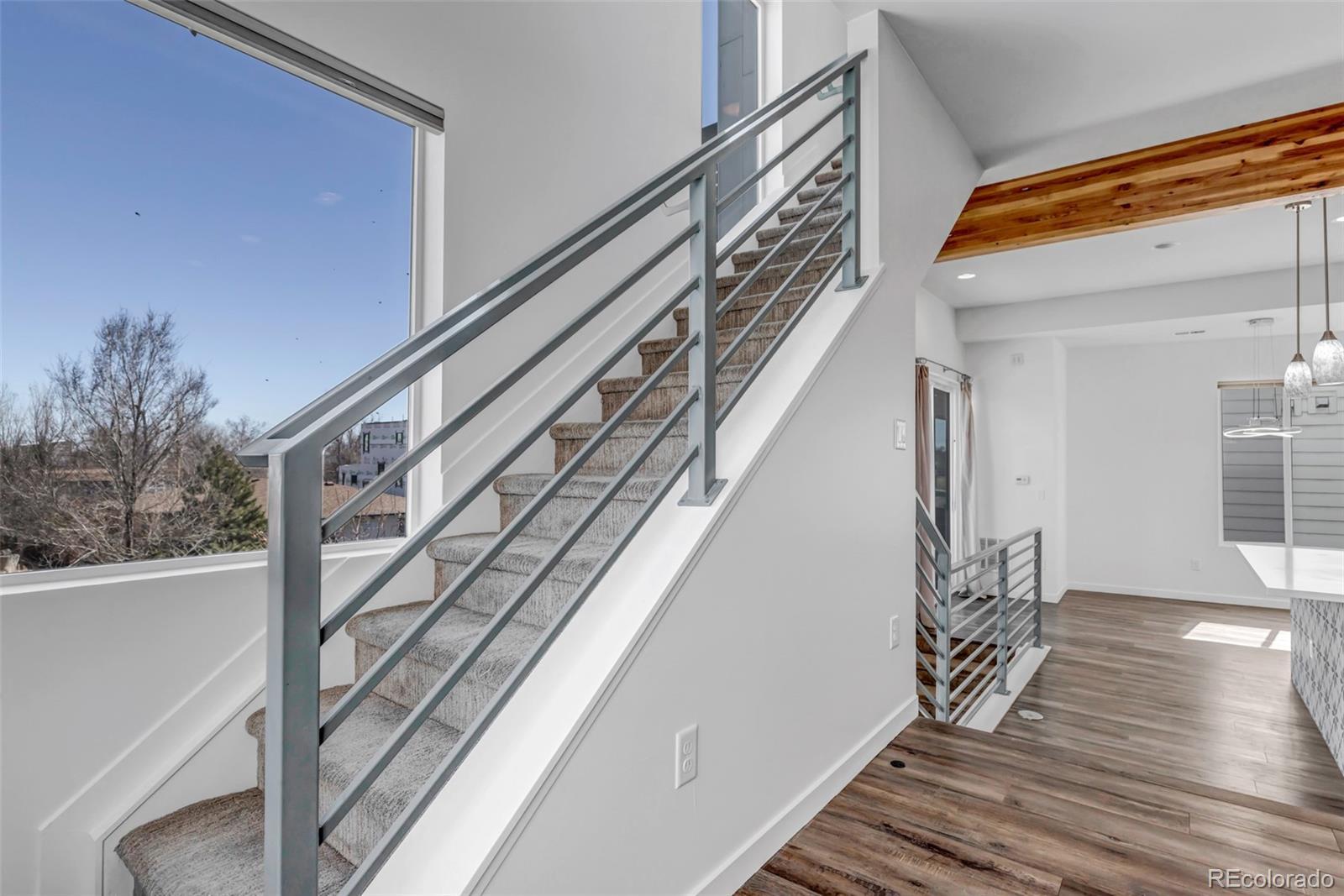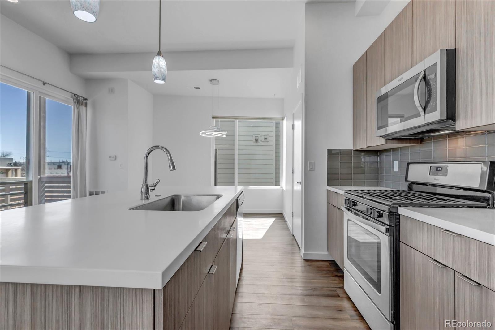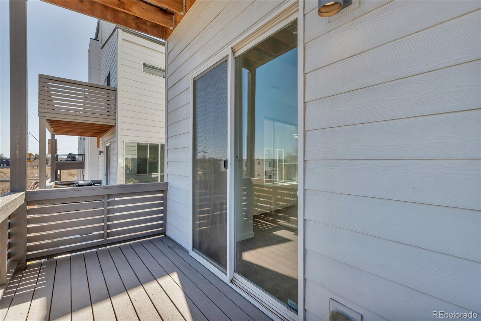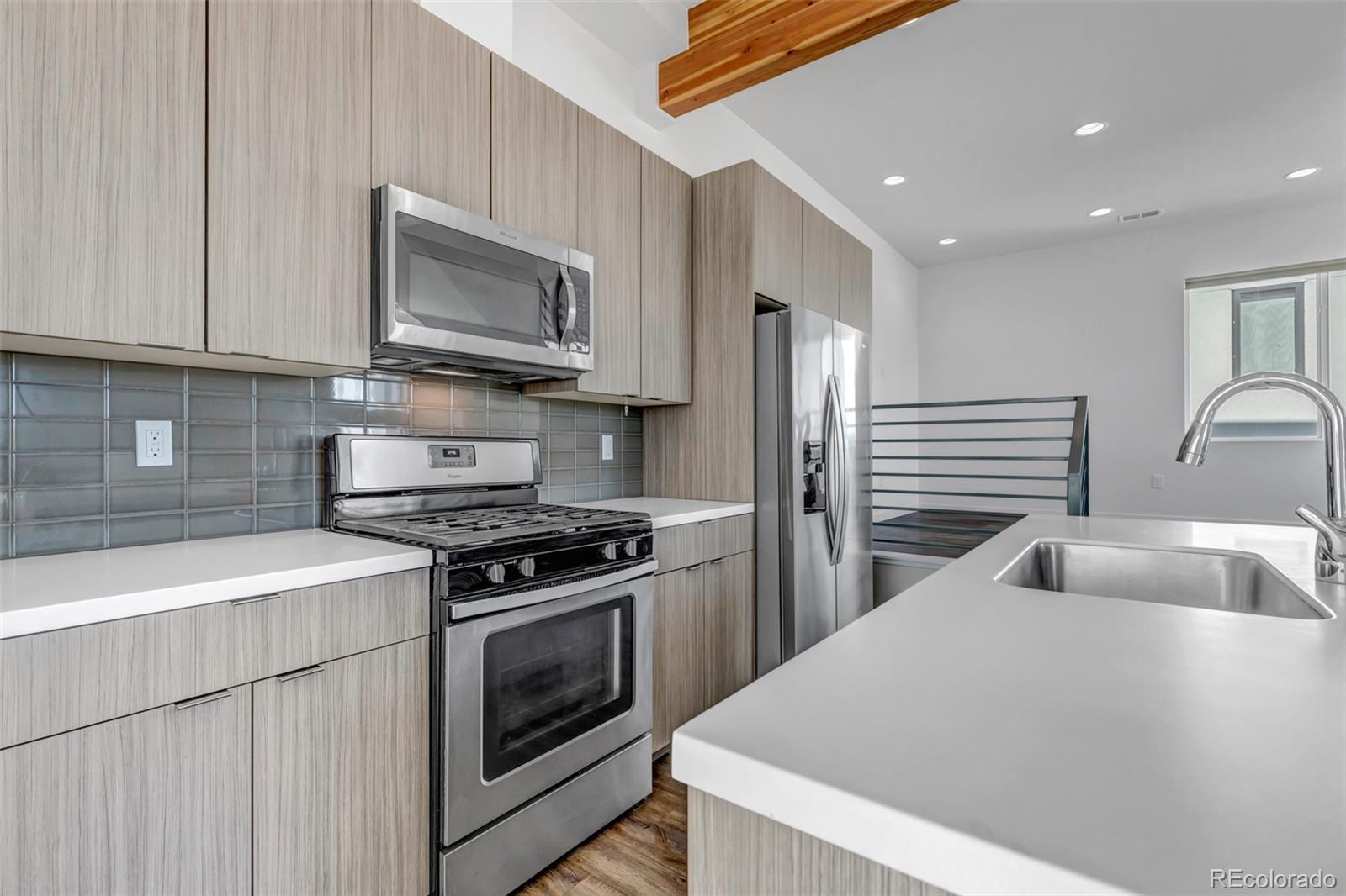 Welcome to your street-facing, contemporary townhome, a must-see! This is 2 bed / 2.5 bath end home that lives like a single family! Extensive, private outdoor space, including two balconies and a rooftop to enjoy the mountain views. Entertain in your open-plan kitchen, living, and dining room space. The great eat-in kitchen features Corian countertops and stainless steel appliances. Retreat to the third floor to relax in your primary bedroom with a full bathroom plus a walk-in closet. This level also has a second bedroom/home office with its own private full bathroom. On the main floor, you have the laundry closet with your in-unit washer and dryer. One-car garage with enough storage space for all your gear. Tankless water heater for an endless supply. Entertainment is within walking distance to Alamo Drafthouse Theater, Little Man Ice Cream, Sloan's Lake Tap and Burger, Odell Brewery, The Patio and endless options. One block to Perry Light rail station for an easy commute downtown or into the mountains. Dry Gulch Park open space is right next door and a few blocks to Sloans Lake!
