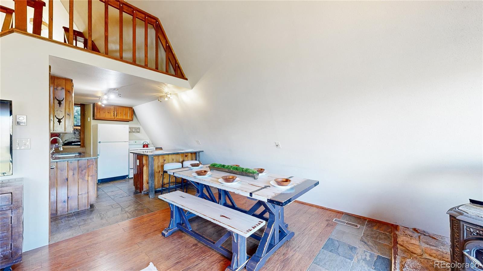 Charming 3 bedroom, 3 bathroom mountain retreat in Columbine Lake Country Club. Situated on a quiet cul-de-sac, this A-Frame offers a blend of rustic character and comfortable living. Property includes a second lot-ideal for building a garage, guest cabin or second home. Main floor features vaulted ceilings, cozy wood-burning fireplace, warm wood accents and large windows. Open kitchen, separate dining space, two spacious bedrooms (each with its own sink) and full bathroom. Upstairs loft for additional sleeping space or bonus room. Step outside to the spacious composite deck with panoramic mountain views. Finished walk-out basement with third bedroom, 2 bathrooms, laundry room and additional living room. Freshly painted exterior. Enjoy private access to Columbine Lake for fishing, kayaking or paddleboarding plus community amenities like a pool, sauna and gym. Bordering Rocky Mountain National Park and minutes from historic Grand Lake, this property offers year-round recreation, breathtaking views and a quiet mountain sanctuary.