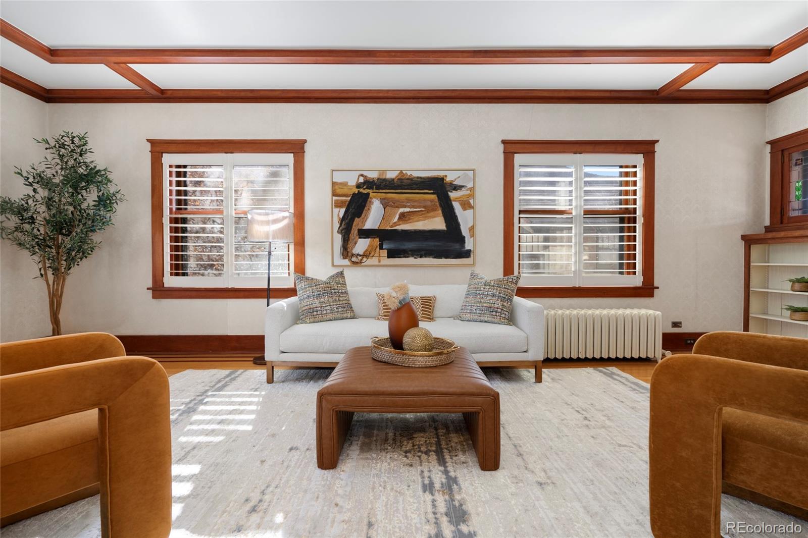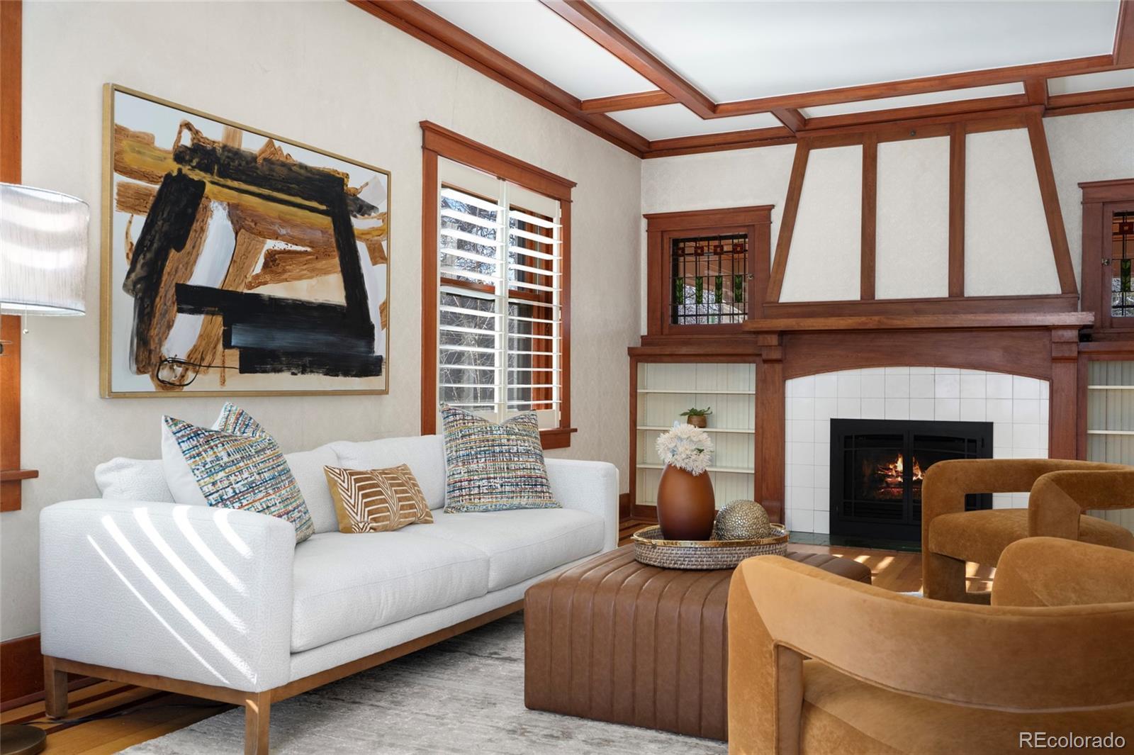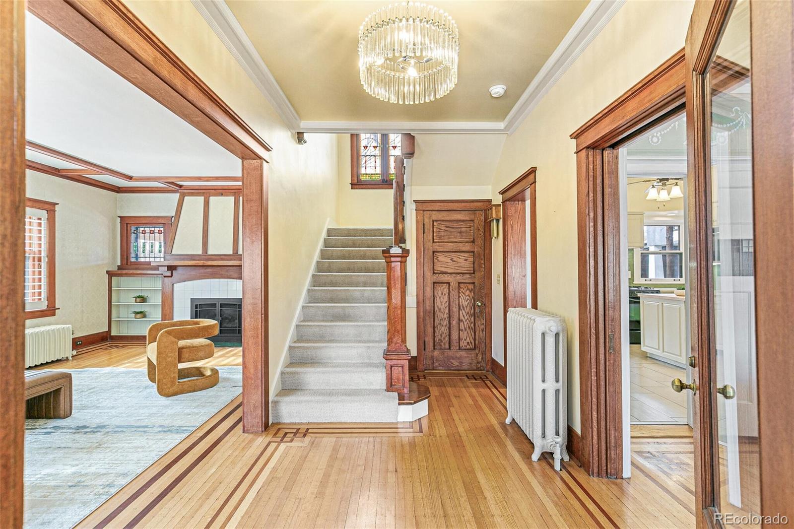 Welcome to this exquisite Park Hill Craftsman home, where timeless elegance meets contemporary luxury. This property showcases stunning stained glass and original woodwork throughout, seamlessly enhanced by modern updates. As you enter the grand foyer, you'll be drawn to the living room, featuring a prominent fireplace that perfectly marries classic design with modern comfort. The dining room retains its original frieze, while the updated kitchen boasts a cozy nook ideal for casual meals. Step outside to the garden patio, a lush retreat perfect for entertaining. Upstairs, the primary suite offers a luxurious five-piece bath and a decorative antique fireplace, blending old-world charm with modern convenience. Four additional bedrooms provide ample space for family and guests. The versatile basement family room is perfect for relaxation or a home office. Located in a vibrant neighborhood, this home is just moments away from restaurants, shops, and City Park, offering a unique blend of history and modern living. Ready for its next chapter, this property is a true masterpiece.