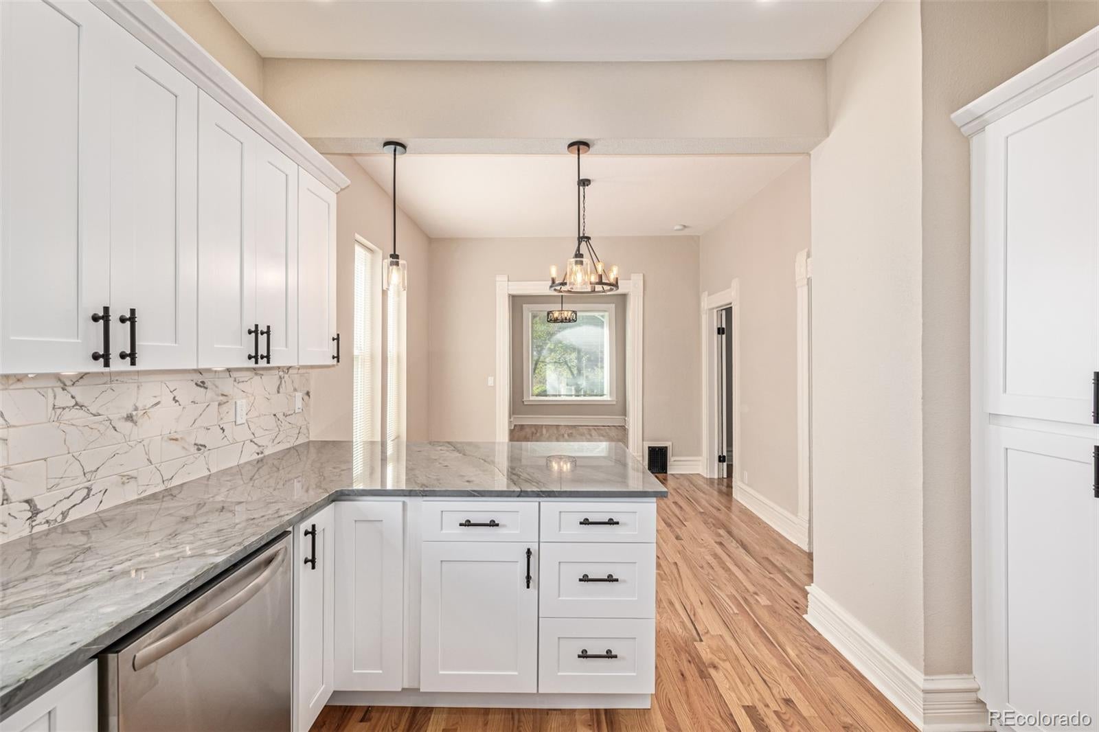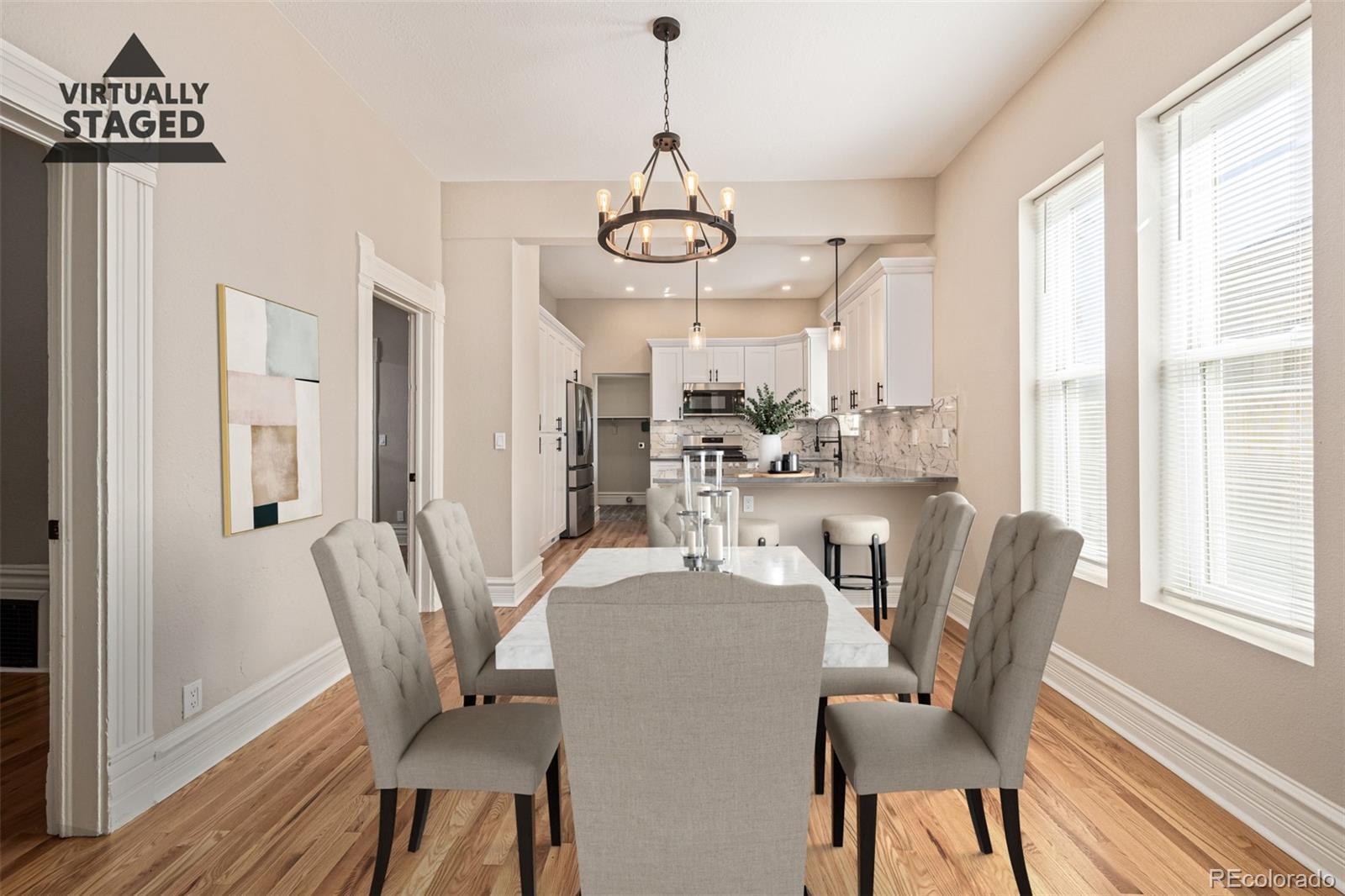 Be the proud owner of this adorable 2-story Victorian era charmer where timeless charm meets modern Denver living! Refreshed landscaping & all new fencing plus a new full exterior paint job. Blend of historic character with contemporary modern design, featuring high ceilings, abundant natural light, a designer kitchen with quartz countertops & stainless-steel appliances, stylish tile backsplash, crisp white cabinetry, recessed lighting, and a convenient breakfast bar for casual dining. Every detail has been thoughtfully restored & updated to preserve its period elegance while offering today’s comforts. Warm & inviting living room adorned with beautiful wood floors. Upstairs, the main bedroom offers a peaceful retreat featuring vaulted ceilings, soft carpeting, & a spacious walk-in closet complete with a bonus storage area. Lots of additional storage spaces on the upper level as well as two walk in closets! Ideal setup for two offices & a guest room or nursery. Original trim throughout. Much more kitchen cabinet space compared to anything else for sale! Out back there is a new lush green lawn. The detached 2-car garage, plus two off alley parking spaces, provides added convenience and ample parking. From its thoughtful design to its inviting layout, this home captures the perfect balance of modern comfort and timeless style. Whether you’re hosting lively get-togethers or savoring quiet moments, this gem delivers it all. Don’t miss the chance to make this charming retreat your own. It’s ready to welcome you home! Located just steps from York Street Yards, you’ll enjoy easy access to local coffee shops, art spaces, and breweries, making this home a perfect balance of classic craftsmanship and urban convenience. Only half a mile to the A Line which serves DIA and Union Station!