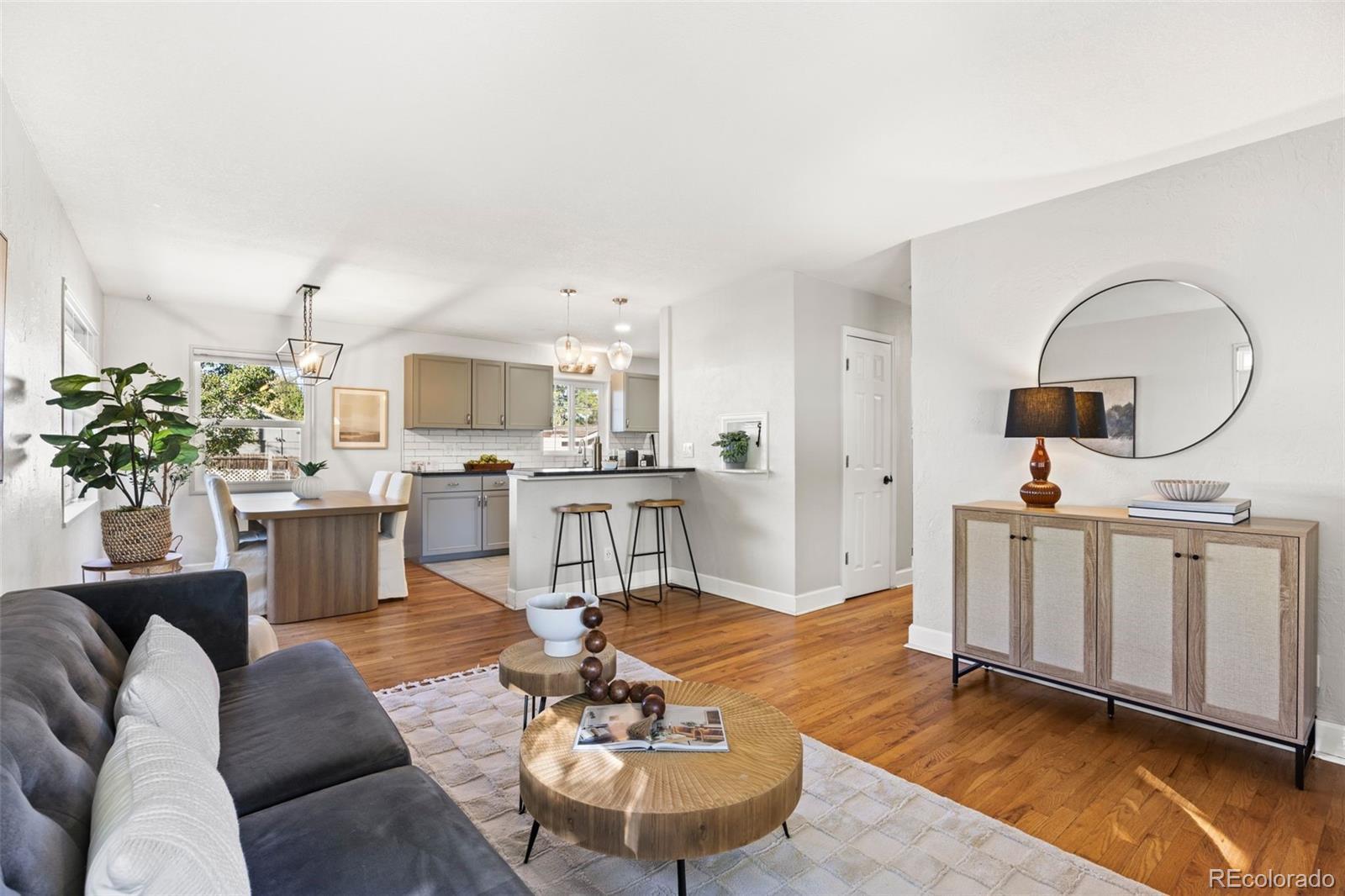 Welcome to 4893 S Sherman St, a rare 6-bedroom home situated in the heart of Englewood. // Both the main floor and basement offer a balance of common areas and private space, each floor offering a family room, three bedrooms and a full bathroom. The main floor offers real hardwood floors leading to a beautifully updated kitchen with newer appliances and modern finishes. Big windows provide an abundance of natural light to seal the deal. // The basement offers a large family room, a remodeled full bathroom, and 3 bedrooms - one conforming and two non-conforming (each is sizeable and functional). The washer and dryer are newer and included with the sale. // Outside, enjoy a fully fenced backyard — ideal for outdoor entertaining, pets, or a secure play area. The oversized two-car garage is accessed via the alley, and a separate shed is available for additional personal storage. // Location is a true asset here. You’ll be 6 minutes from Swedish Medical Center, 7 minutes from downtown Littleton, and a short 11-minute commute to the Denver Tech Center. The vibrant South Broadway corridor is just around the corner, with shops, eateries, and light rail access within easy reach.