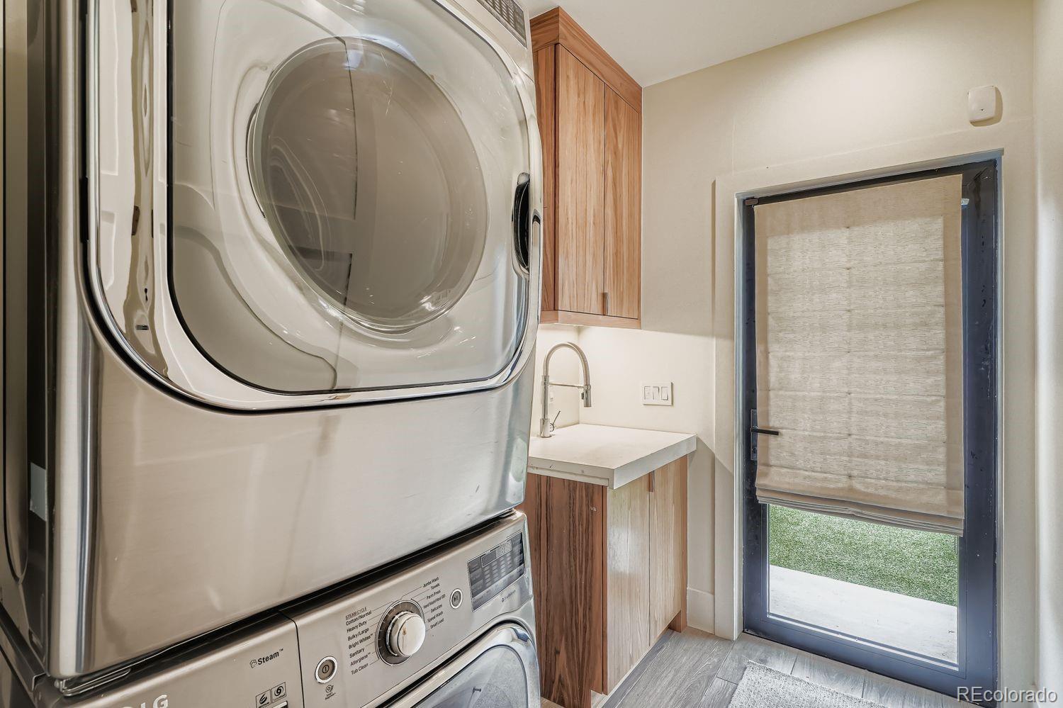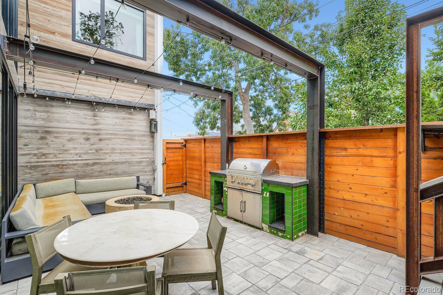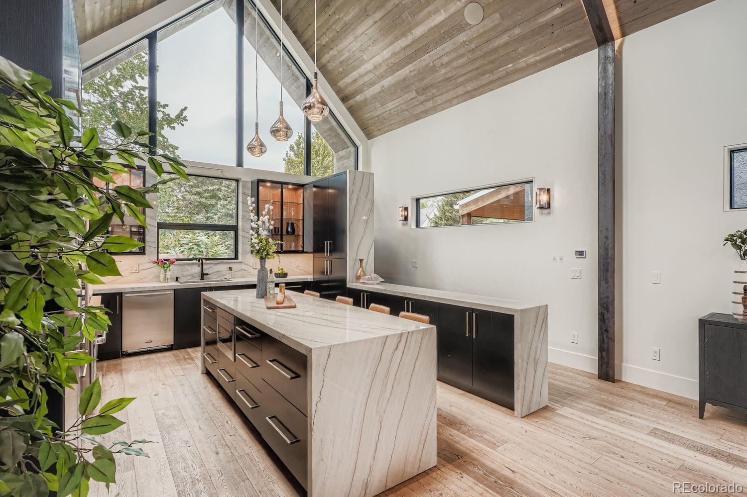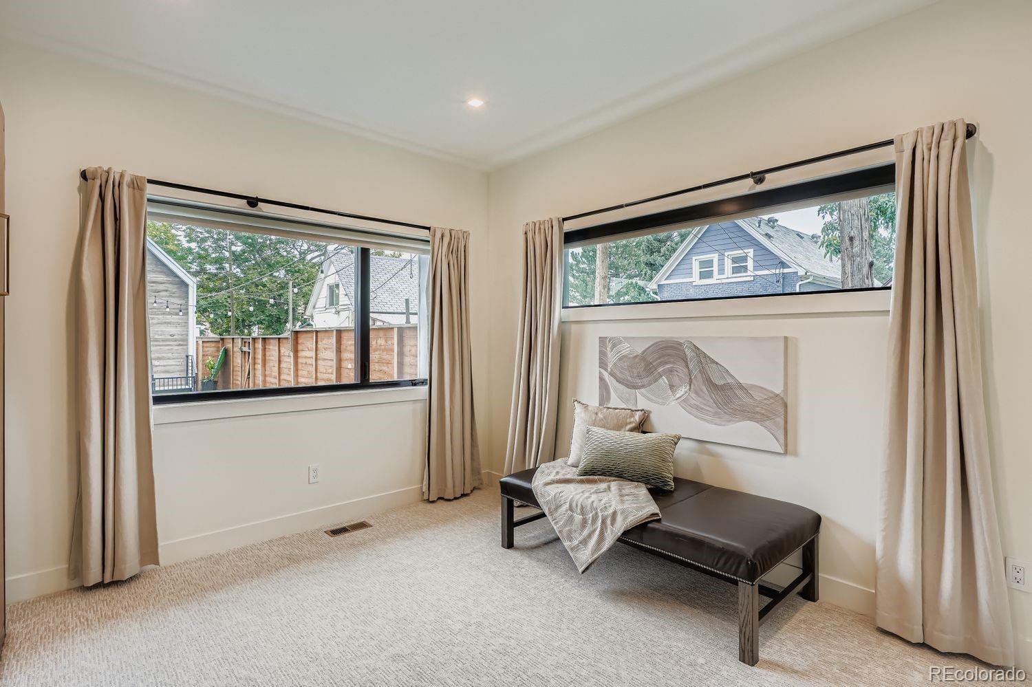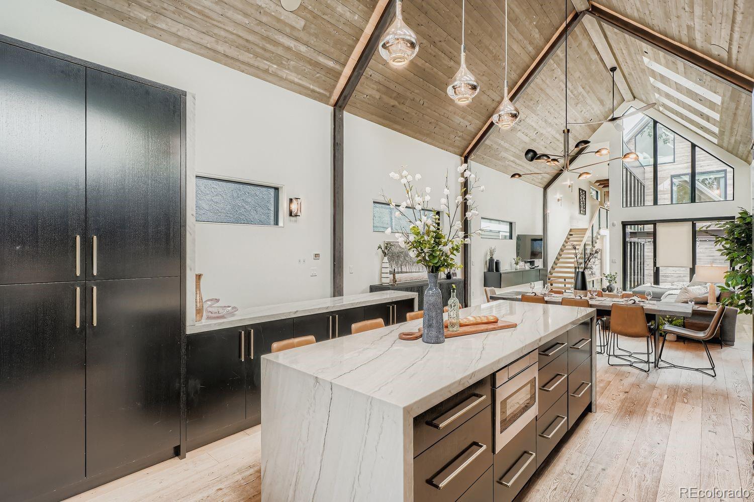 Architectural style meets everyday comfort in this custom modern home in Denver’s coveted LoHi. A bold mix of cedar, glass, and clean lines sets the tone, while vaulted ceilings, exposed beams, skylights, and walls of glass fill the open living area with light. Wide-plank hardwoods connect the living room with floating media console, dining area, and the striking designer kitchen with black cabinetry, high-end appliances, and dramatic lighting. Upstairs, the vaulted primary suite feels like a retreat with built-ins, a spa-style bath with dual vanities, bold tile, a glass walk-in shower, and a custom closet with ladder-access loft. A nearby office or nursery completes the level. The main floor offers two bedrooms, a full bath, half bath, and a large mudroom/laundry with dual washer/dryer hookups. The finished lower level features a bright living space and a combined two-bedroom layout currently used as a fitness room—easily converted back. The private yard with low-maintenance turf is ideal for gatherings. The oversized garage includes 220v wiring, and the well-finished ADU above is perfect for guests, in-laws, or rental income. Oversized windows throughout create a seamless indoor-outdoor feel. Set on a quiet street yet steps to LoHi’s best dining, coffee, and culture, this home delivers refined, stylish, modern Denver living. Seller offering a rate buy down with acceptable offer. Ask listing agent for details.