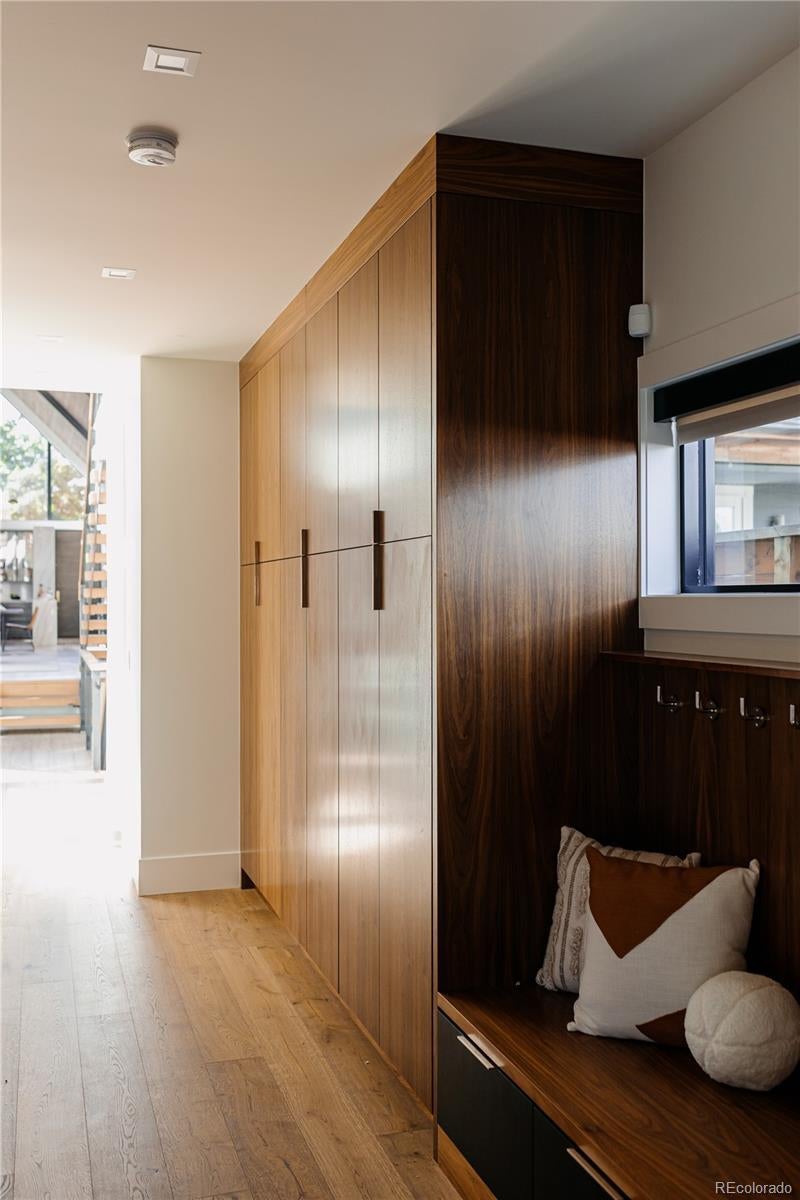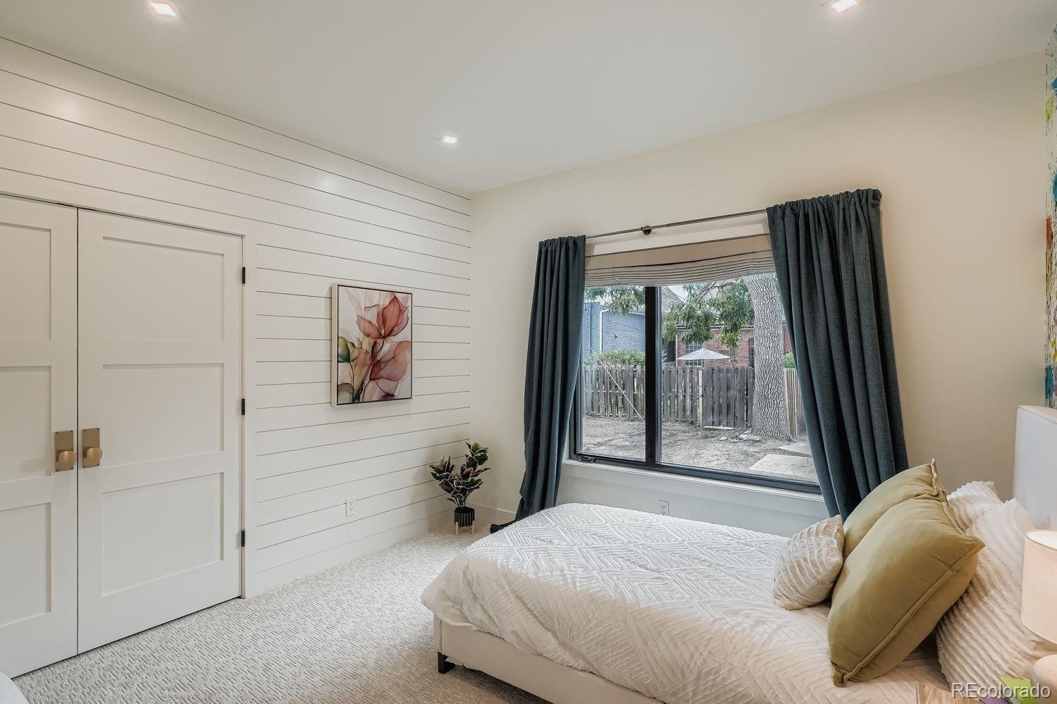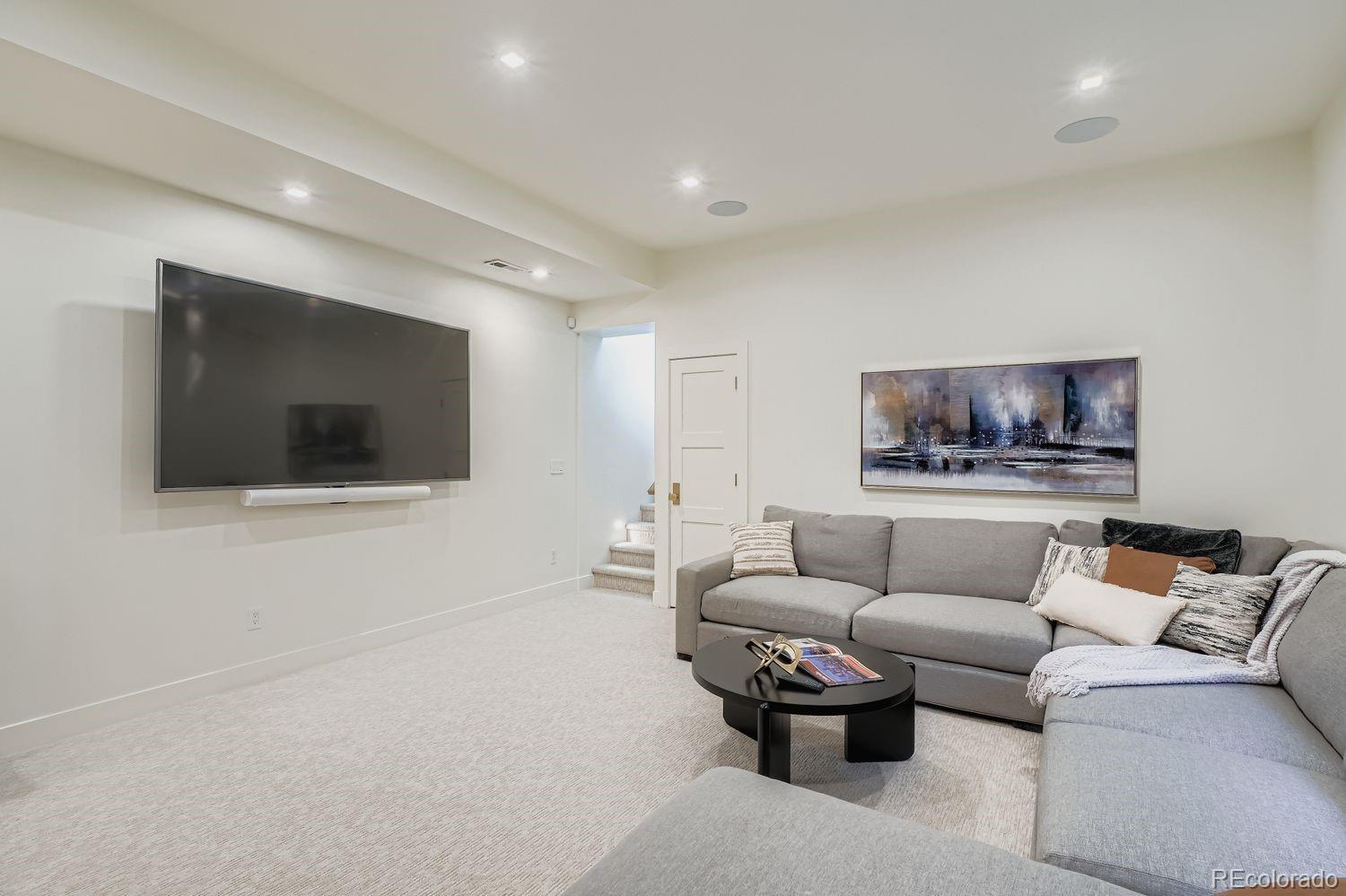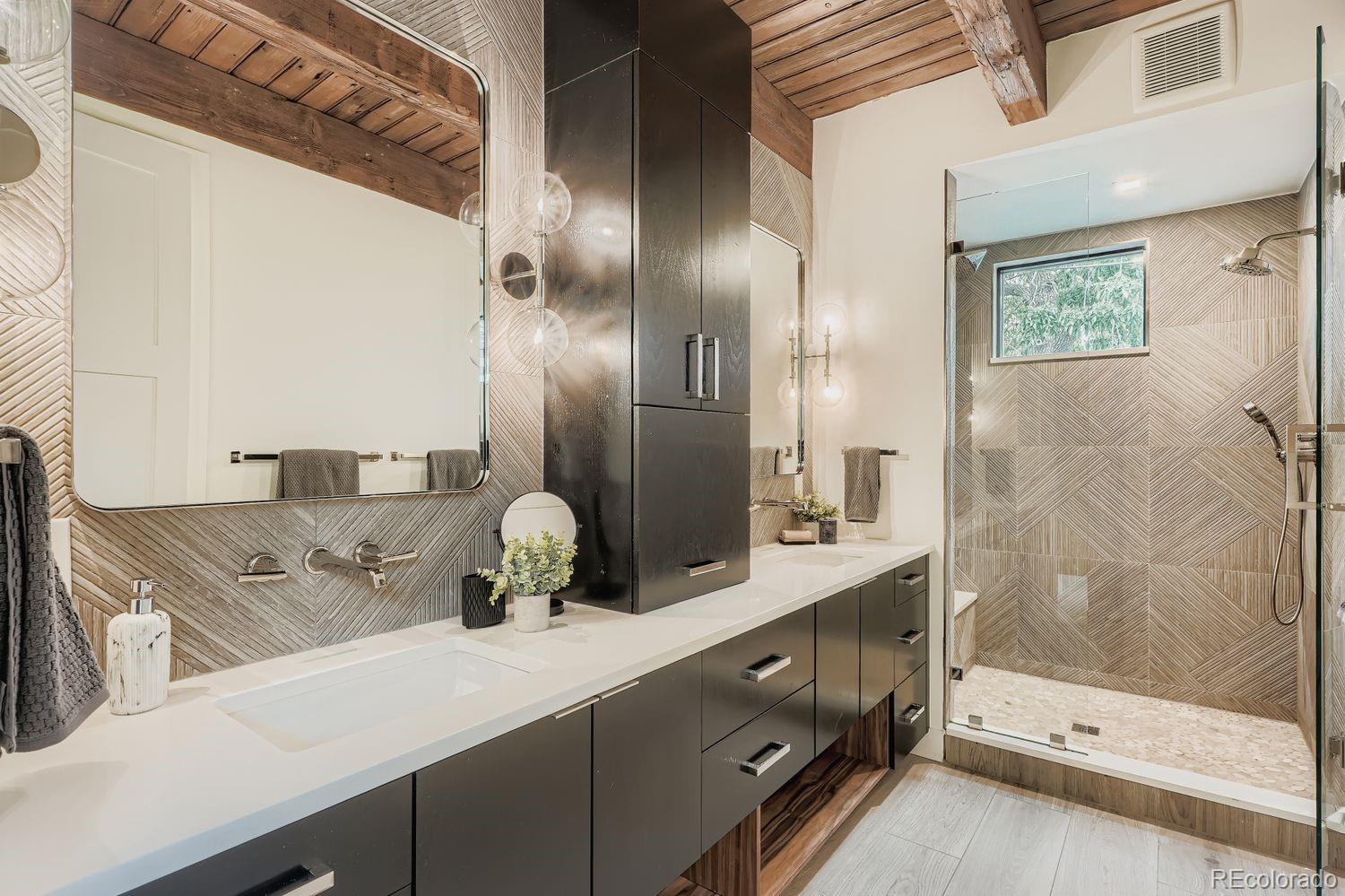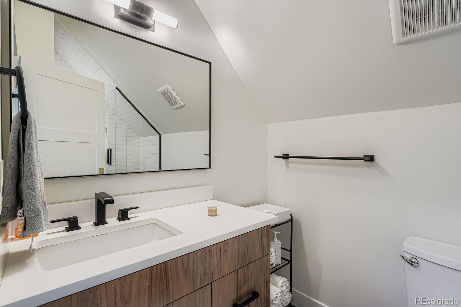 Architectural style meets everyday comfort in this custom modern home in Denver’s coveted LoHi. A bold mix of cedar, glass, and clean lines sets the tone, while vaulted ceilings, exposed beams, skylights, and walls of glass fill the open living area with light. Wide-plank hardwoods connect the living room with floating media console, dining area, and the striking designer kitchen with black cabinetry, high-end appliances, and dramatic lighting. Upstairs, the vaulted primary suite feels like a retreat with built-ins, a spa-style bath with dual vanities, bold tile, a glass walk-in shower, and a custom closet with ladder-access loft. A nearby office or nursery completes the level. The main floor offers two bedrooms, a full bath, half bath, and a large mudroom/laundry with dual washer/dryer hookups. The finished lower level features a bright living space and a combined two-bedroom layout currently used as a fitness room—easily converted back. The private yard with low-maintenance turf is ideal for gatherings. The oversized garage includes 220v wiring, and the well-finished ADU above is perfect for guests, in-laws, or rental income. Oversized windows throughout create a seamless indoor-outdoor feel. Set on a quiet street yet steps to LoHi’s best dining, coffee, and culture, this home delivers refined, stylish, modern Denver living. Seller offering a rate buy down with acceptable offer. Ask listing agent for details.